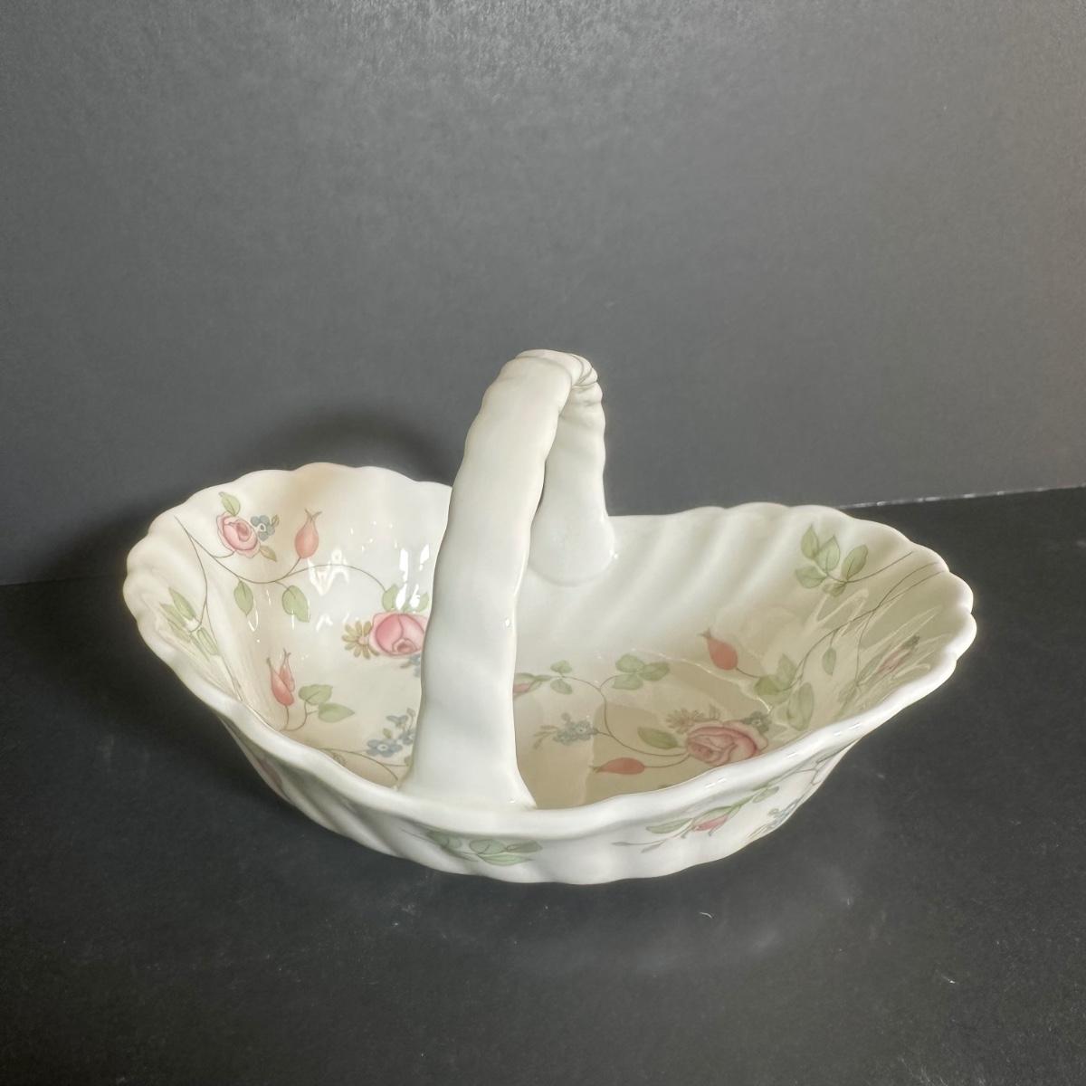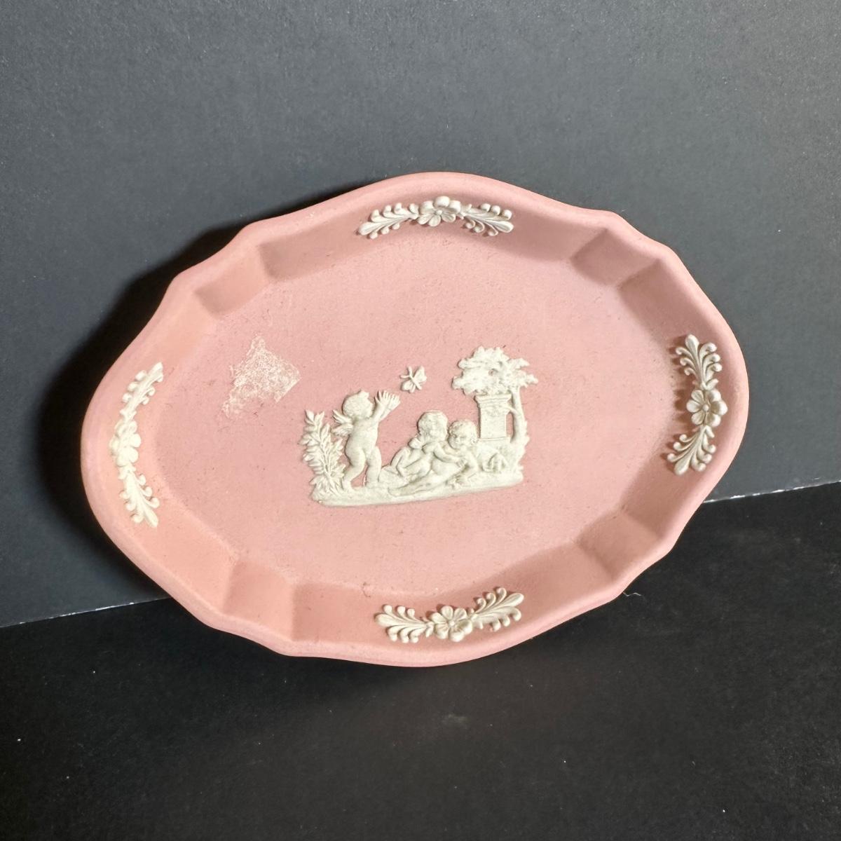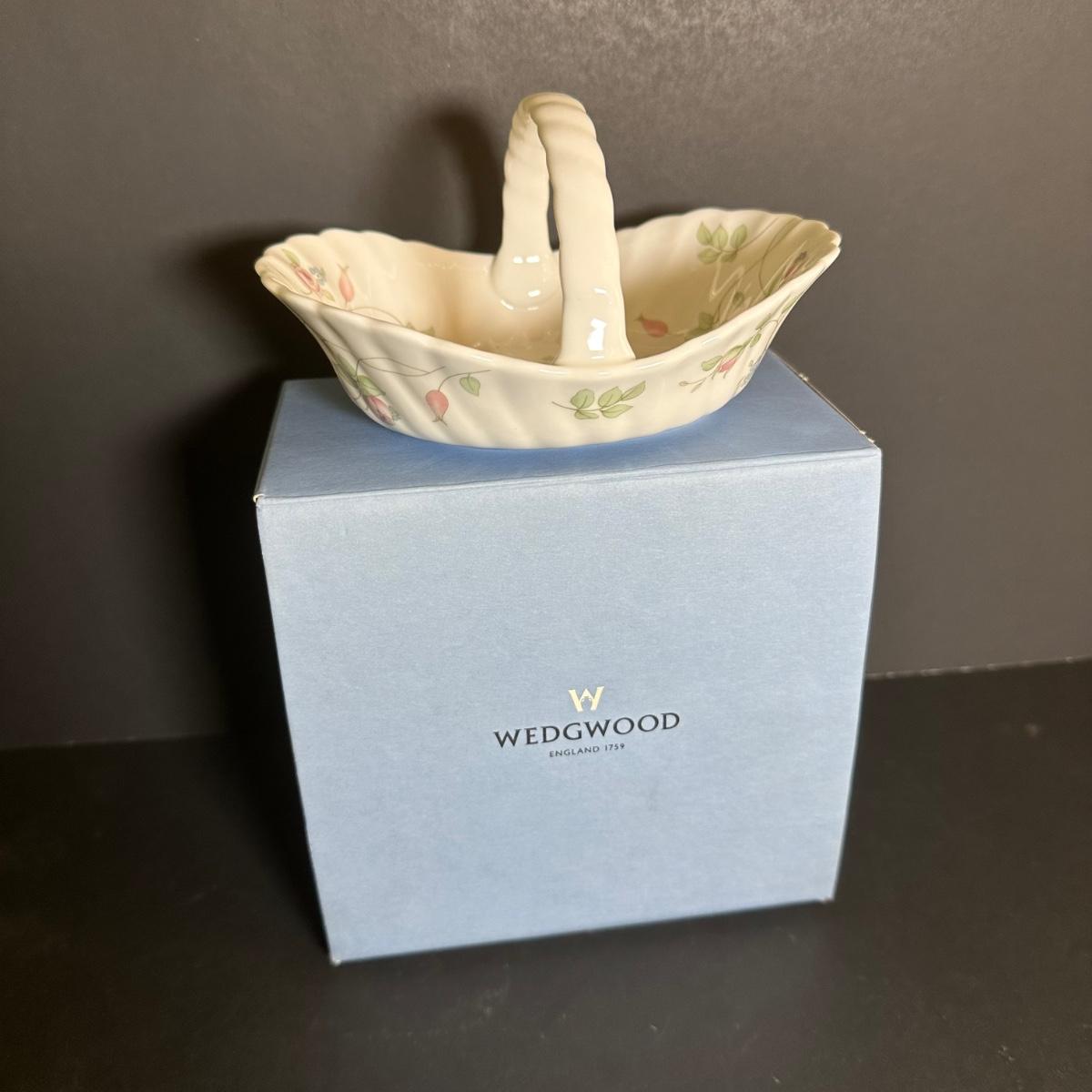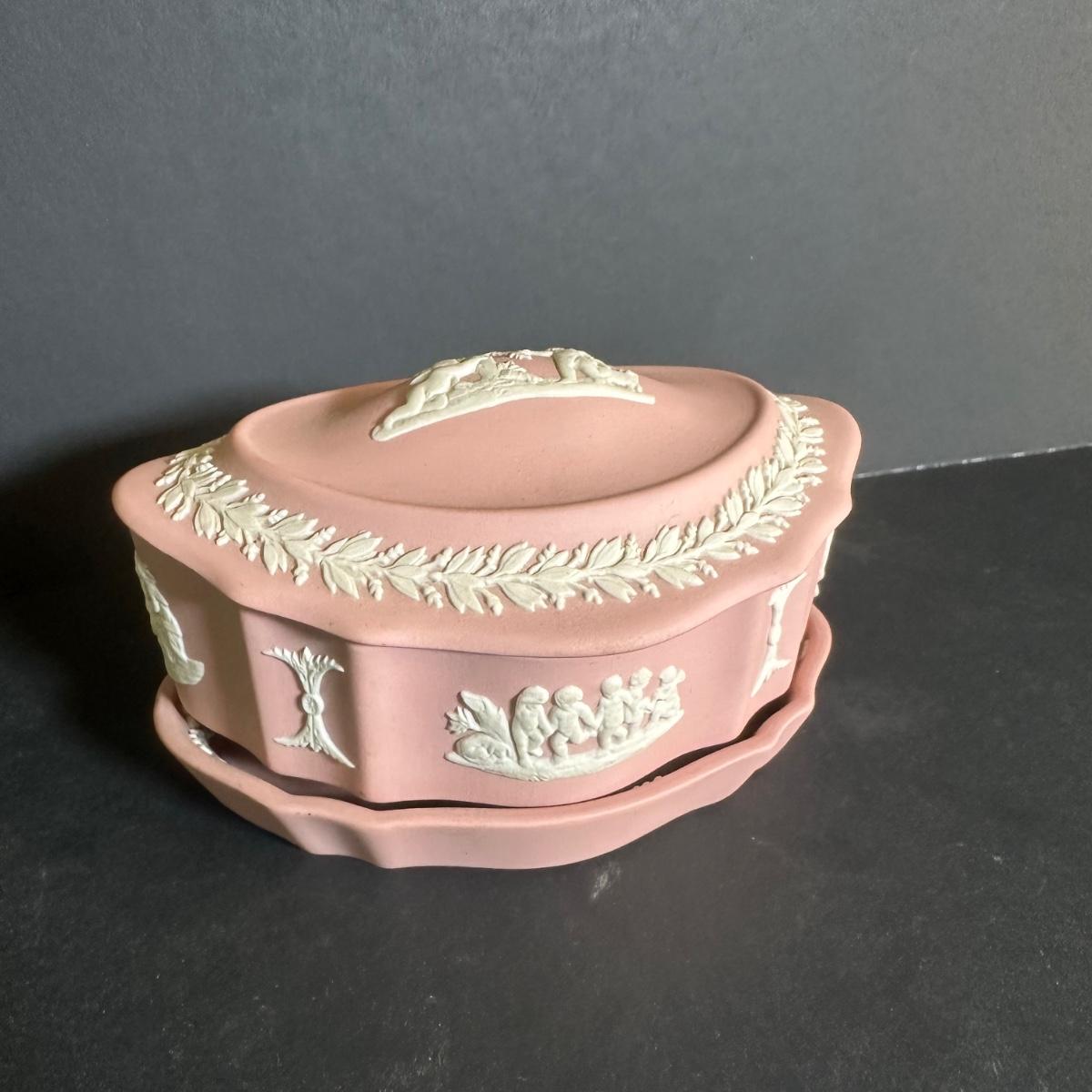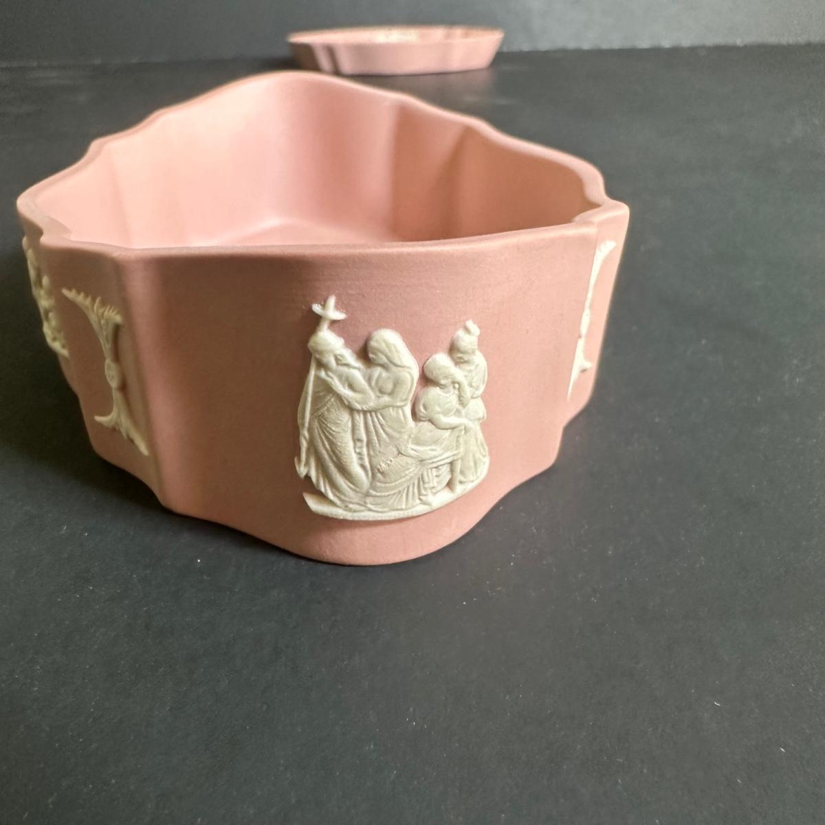 LOT 131S: Wedgwood Rosehip Bone China Canterbury Basket w/ Pink Jasperware Oval Trinket Box