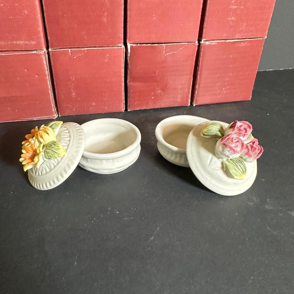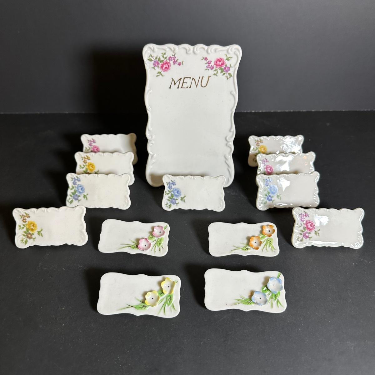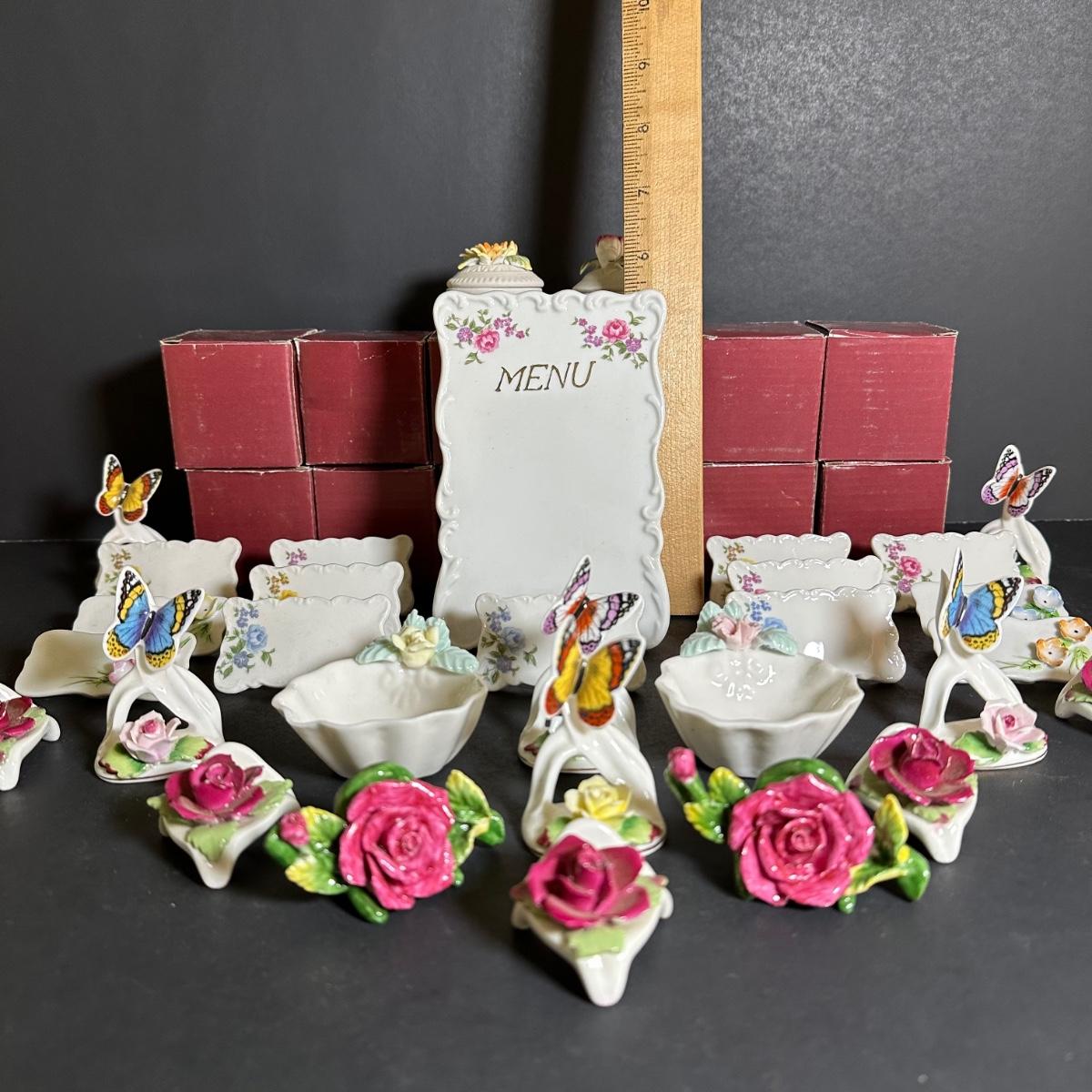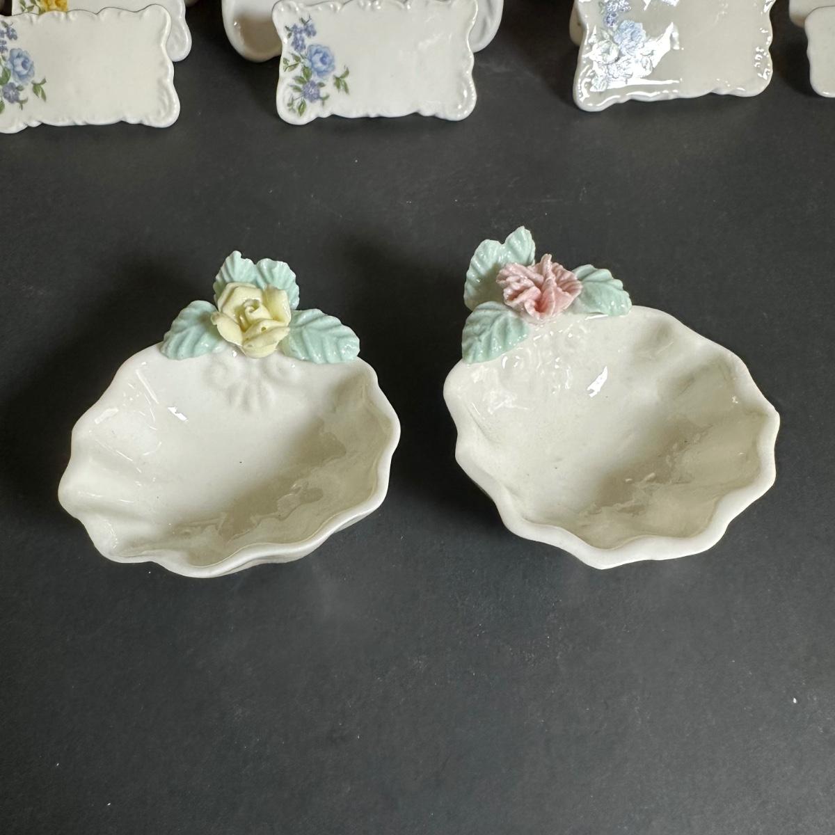 LOT 132S: Vintage Porcelain Floral Name Place Cards w/ Vintage Porcelain Trinket Boxes & More