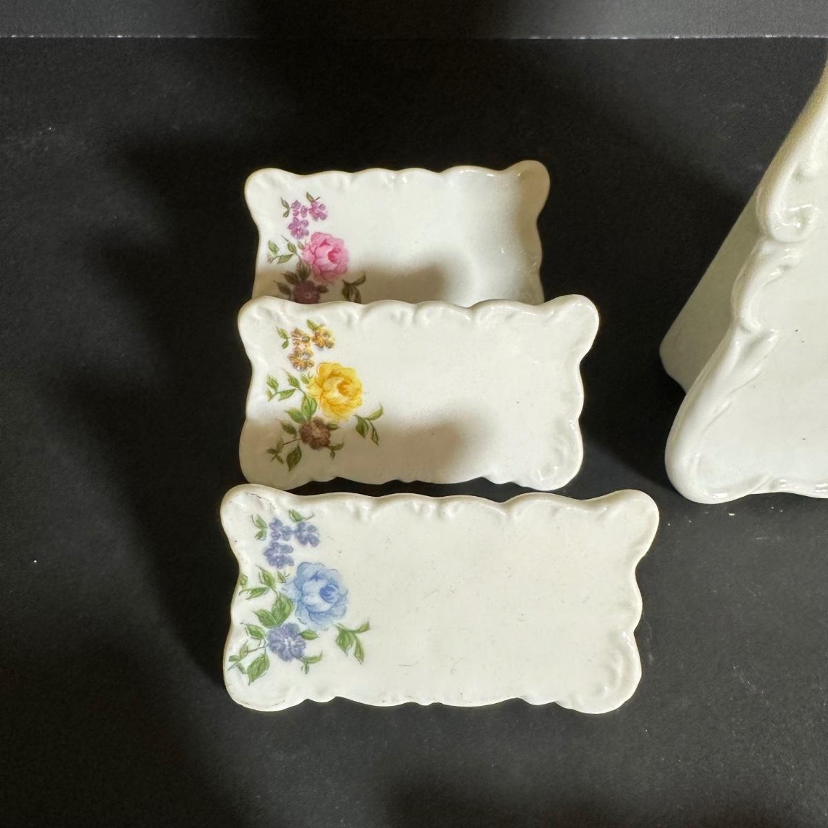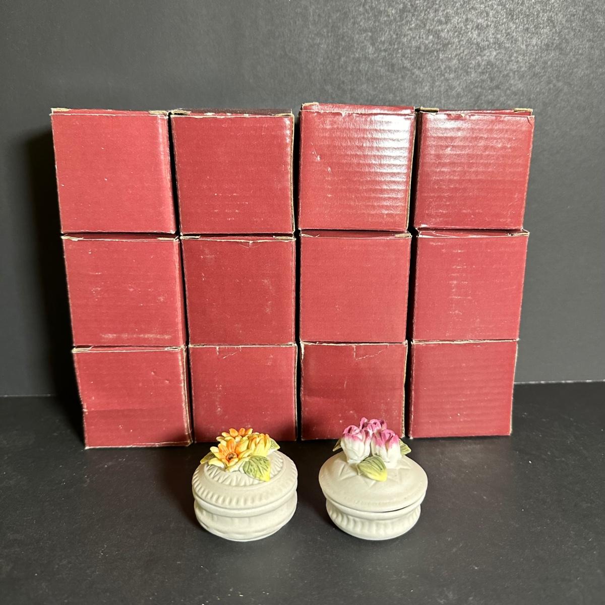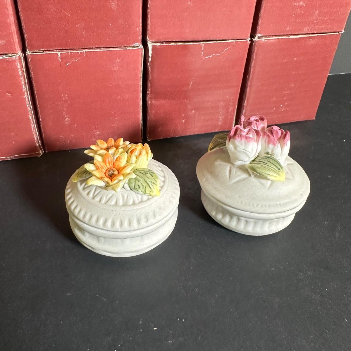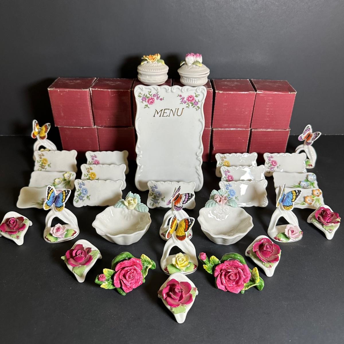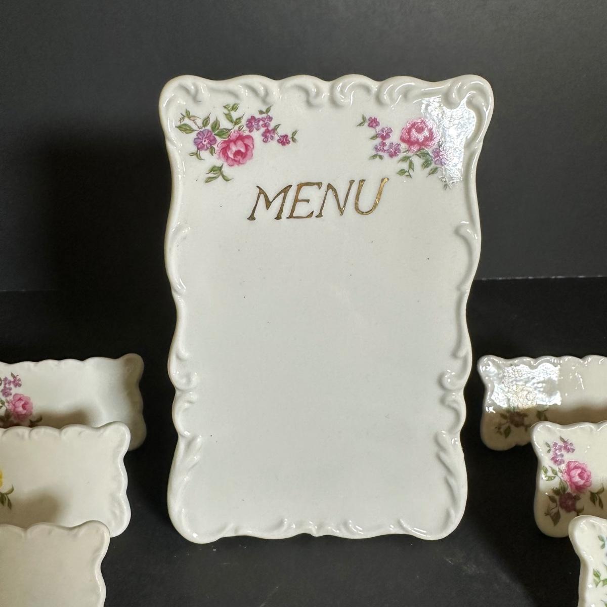 LOT 132S: Vintage Porcelain Floral Name Place Cards w/ Vintage Porcelain Trinket Boxes & More
