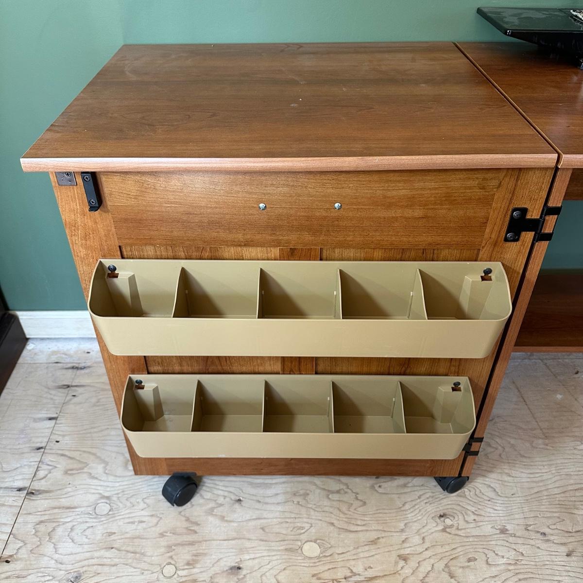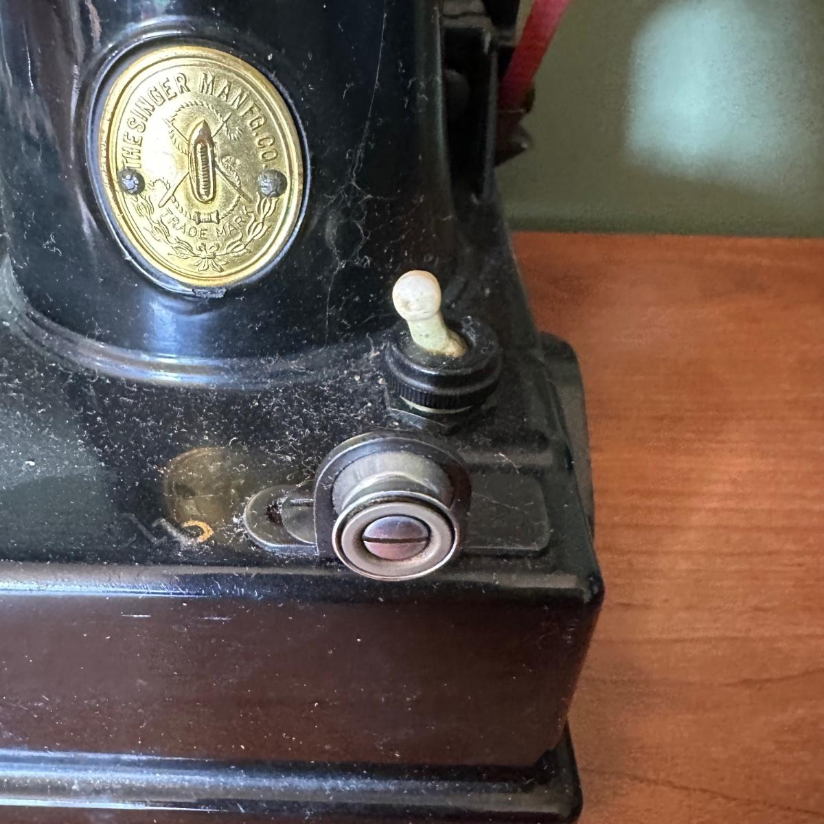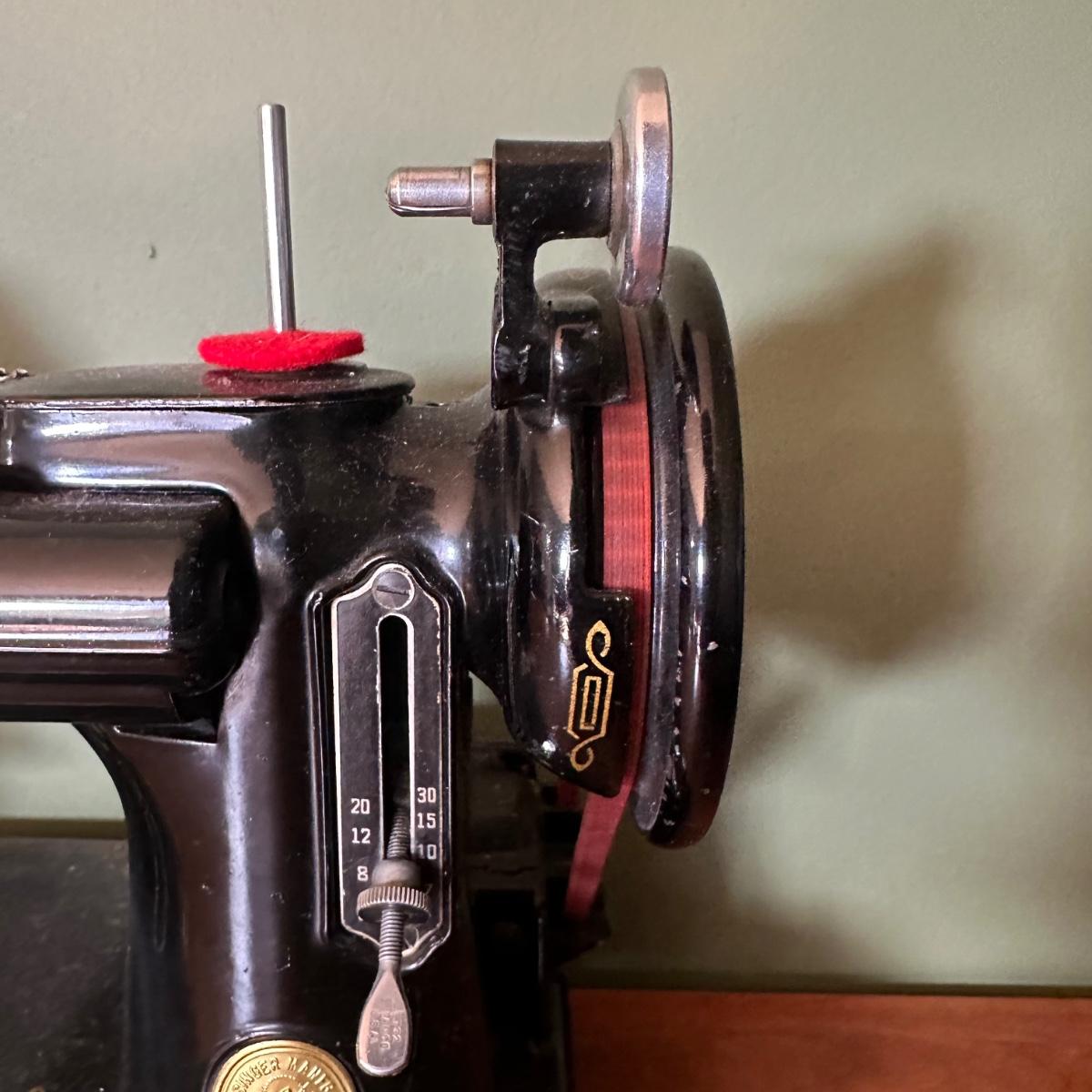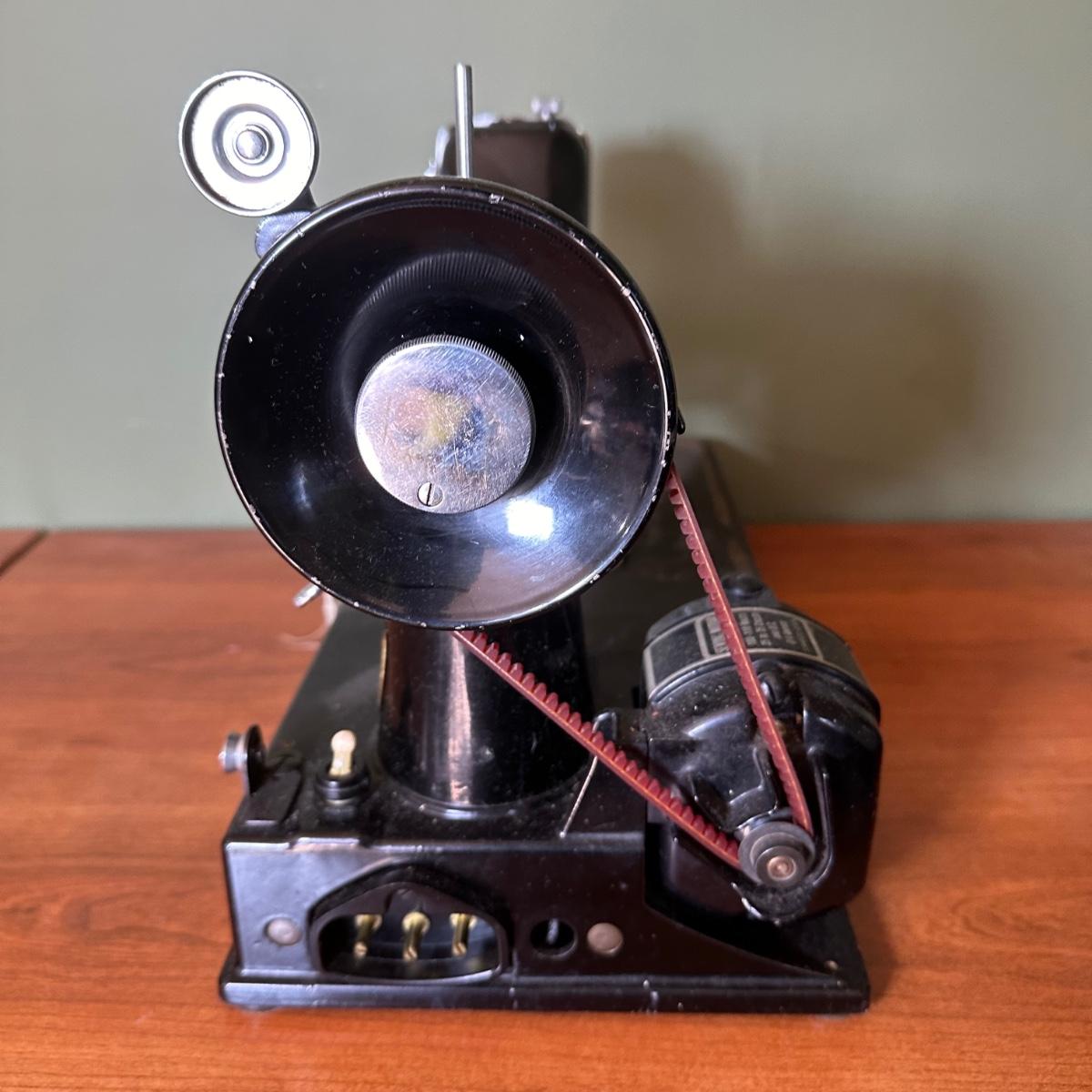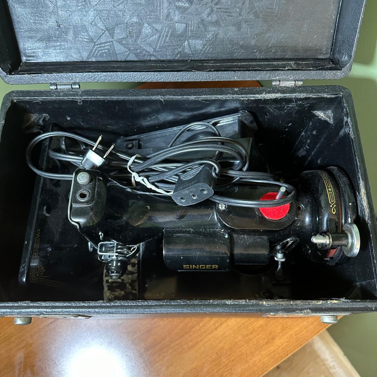 LOT 153S: Collapsing Wooden Sewing Table w/ Vintage Singer Sewing Machine & Chair