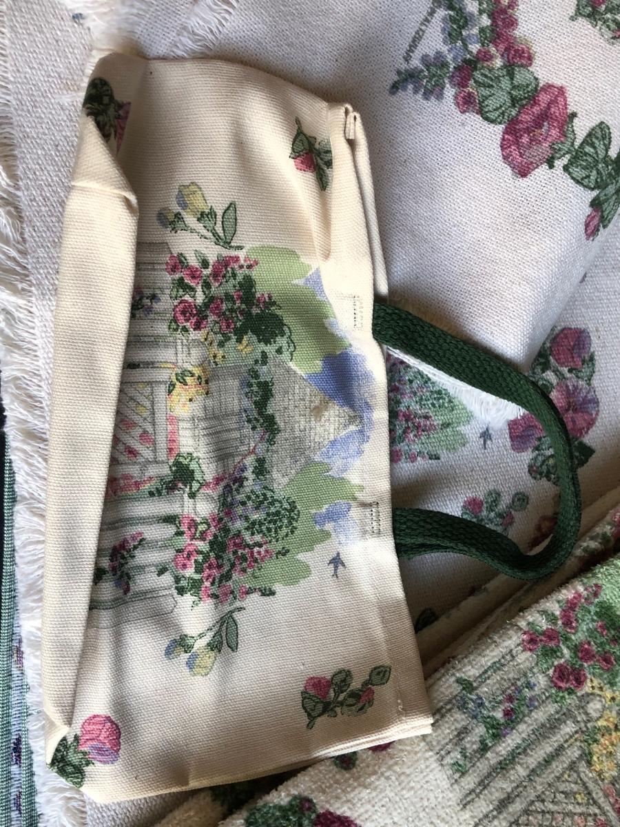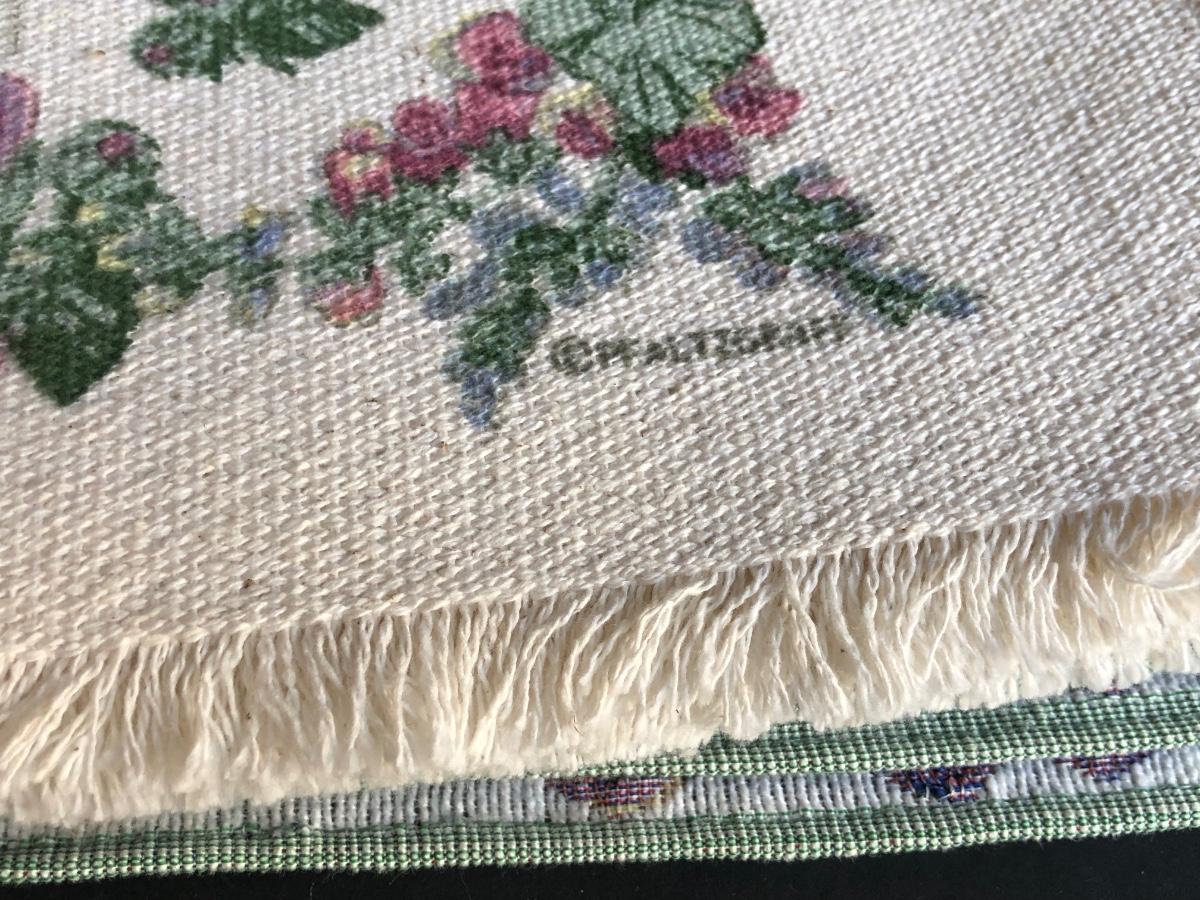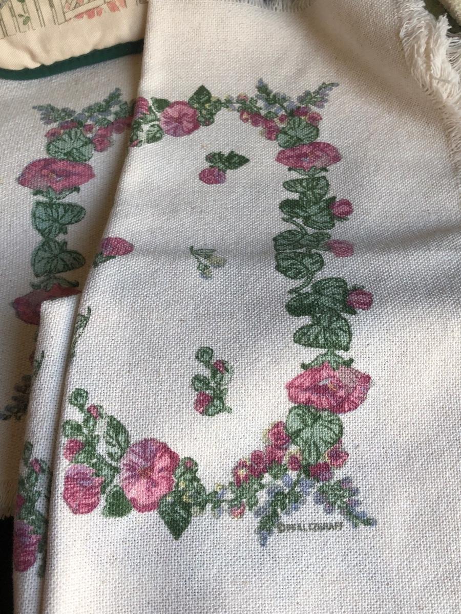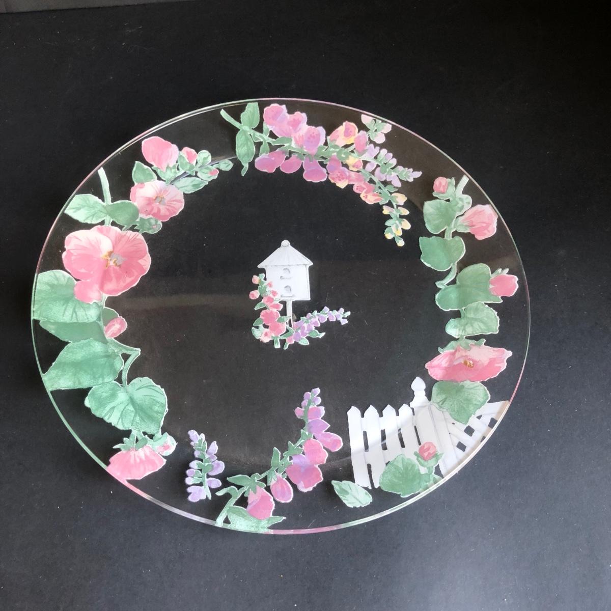 LOT 162K: Pfaltzgraff Cape May Bird House / Garden Gate Collection - Glass Plate, Pot Holder, Tea Towels, Small Bag & Placemats