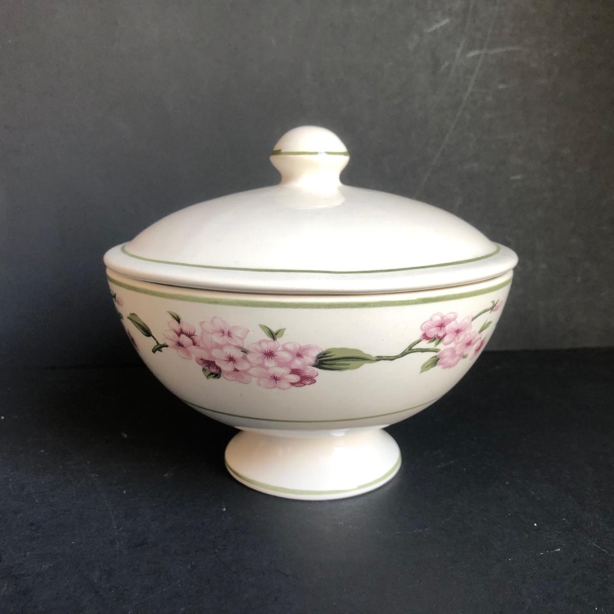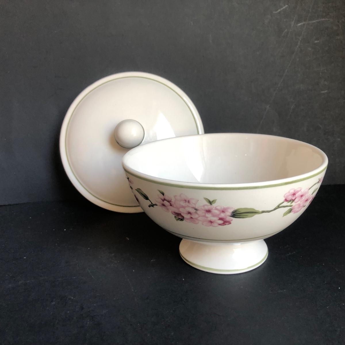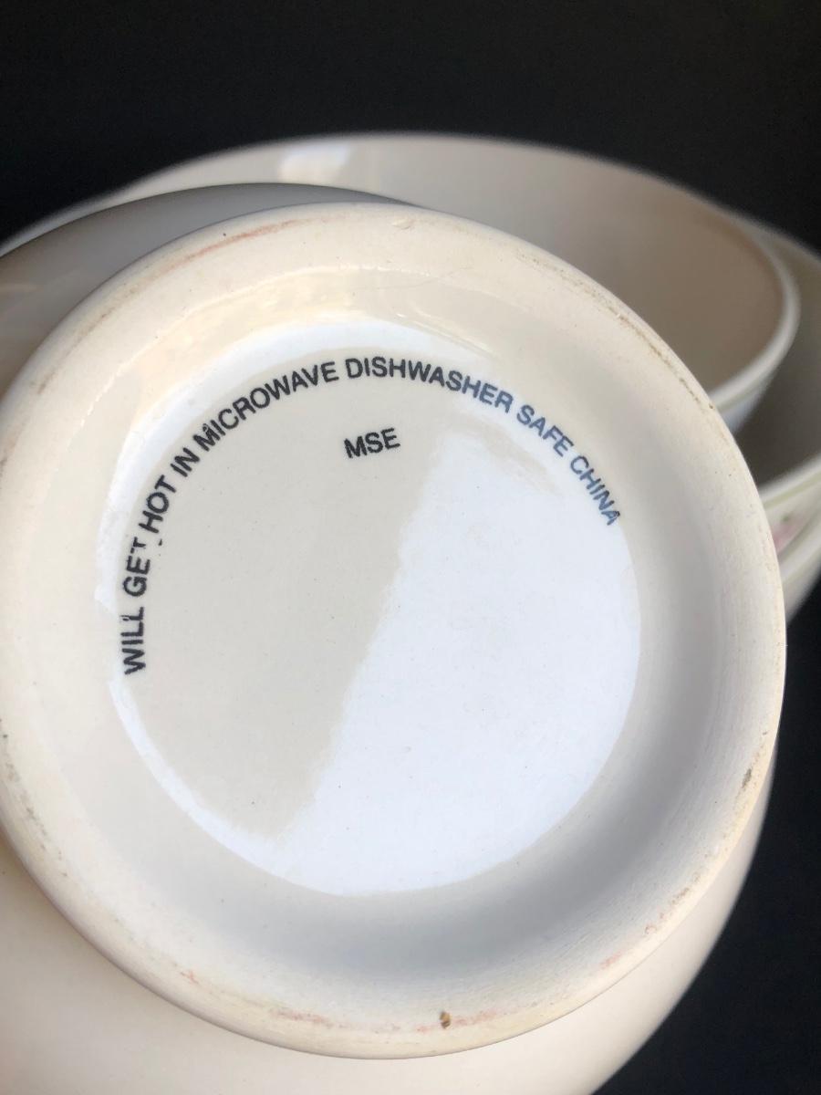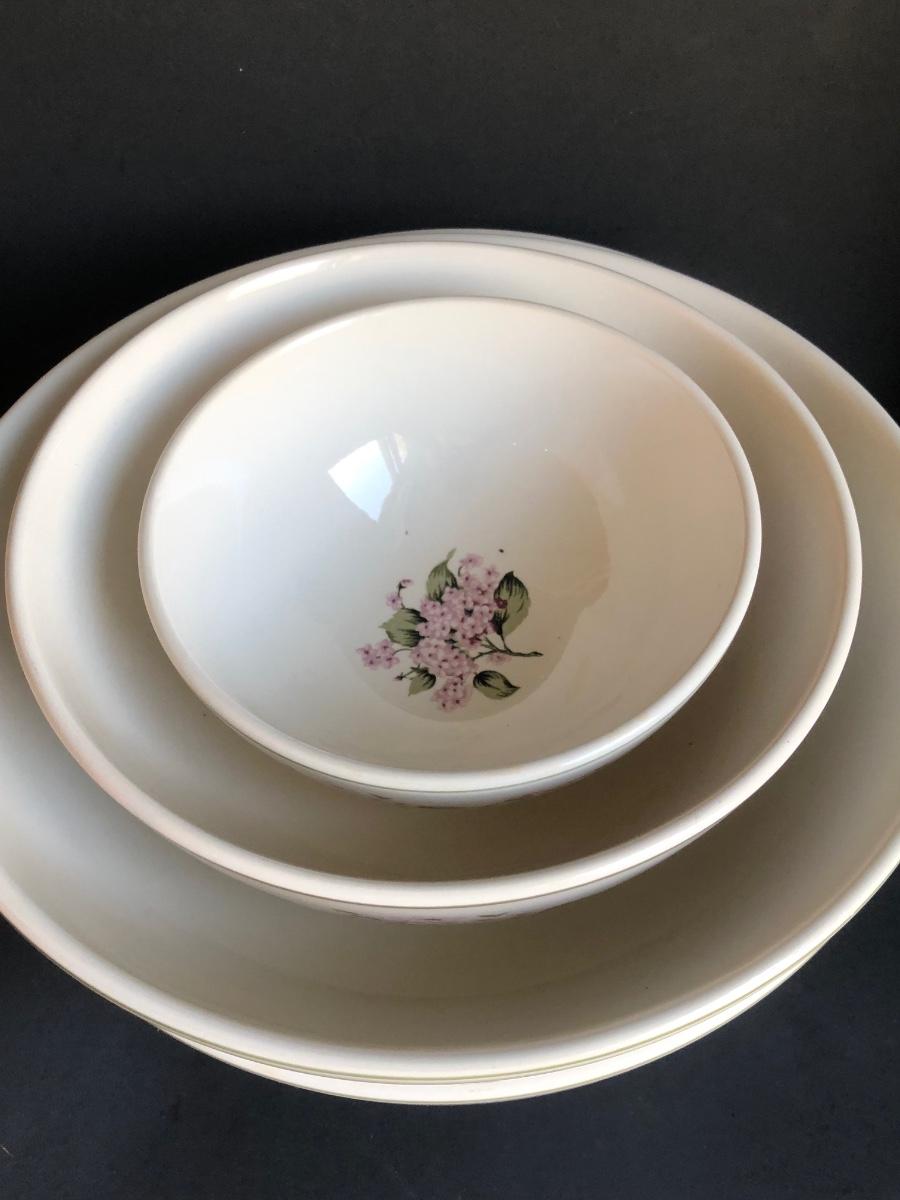 LOT 167K: Martha Steward Hydrangea Pattern China - Pitcher, Sugar Bowl, Creamer & Mixing Bowls