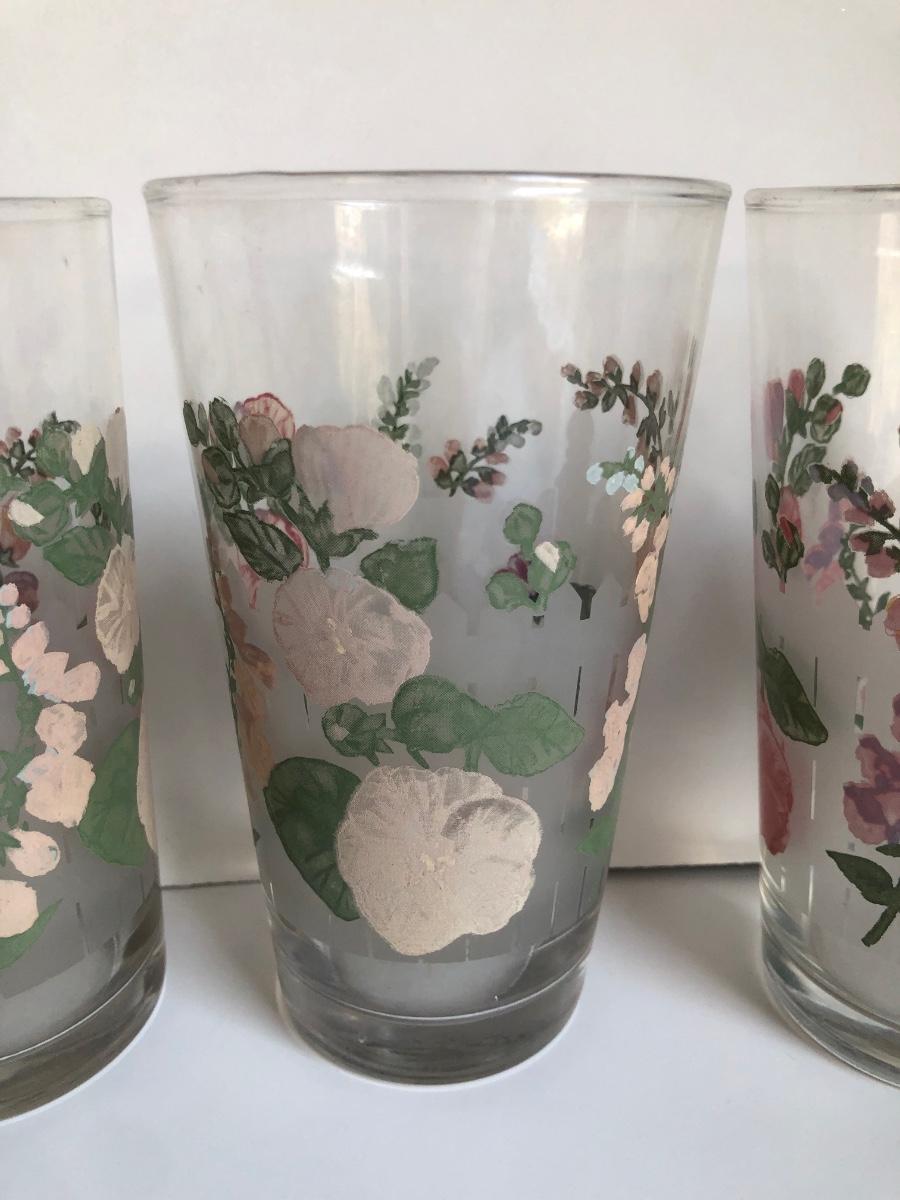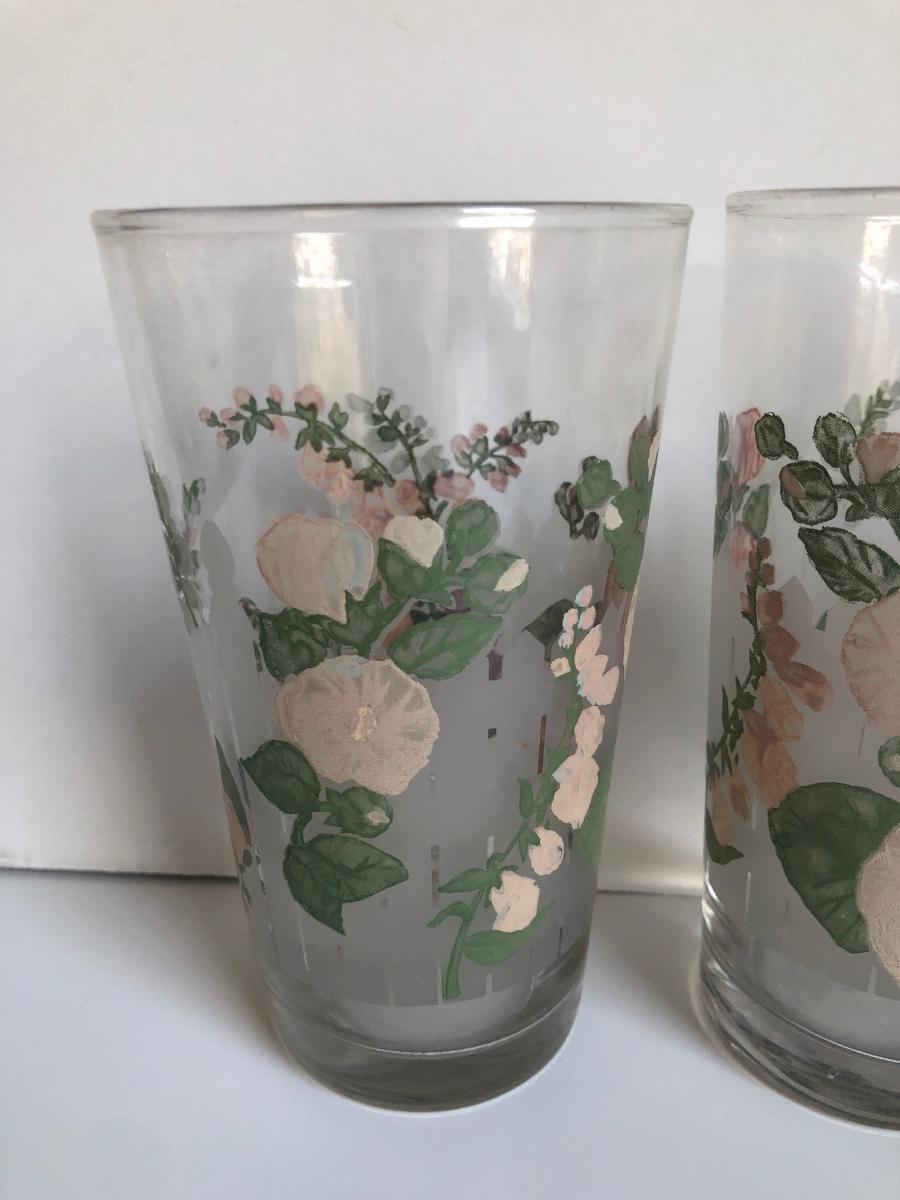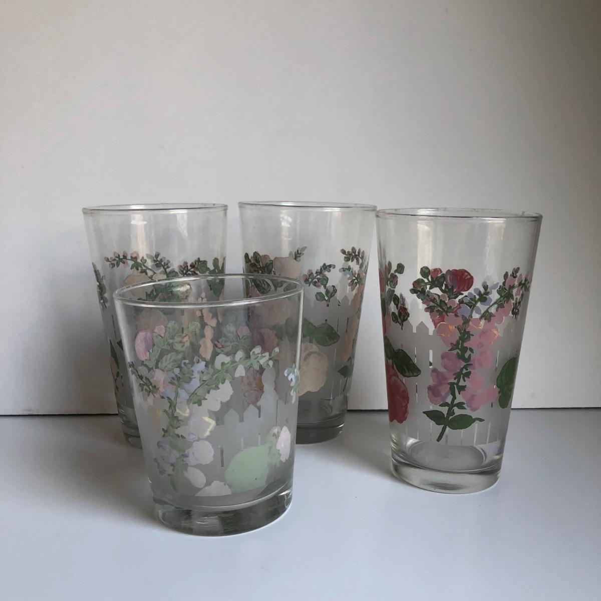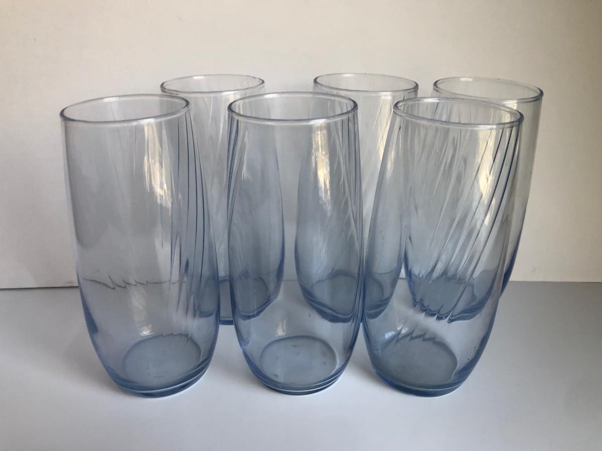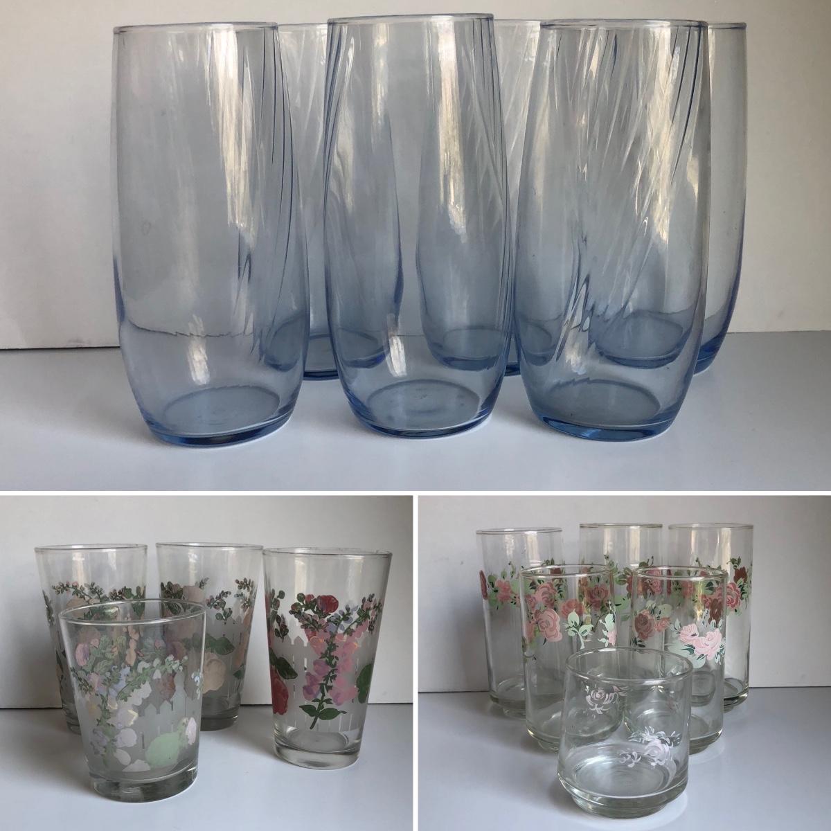 LOT 181K: Blue Tint Libbey Glasses & Floral Pattern Glassware