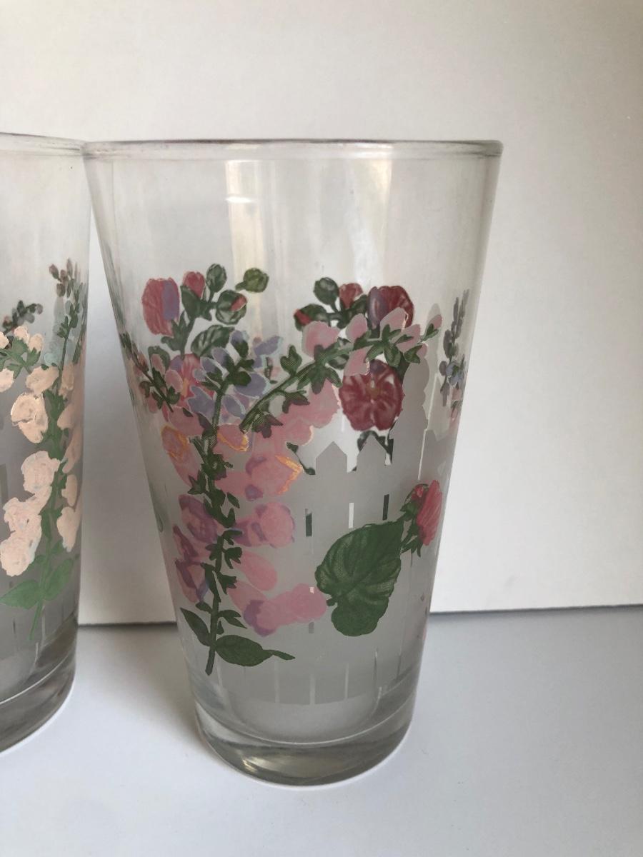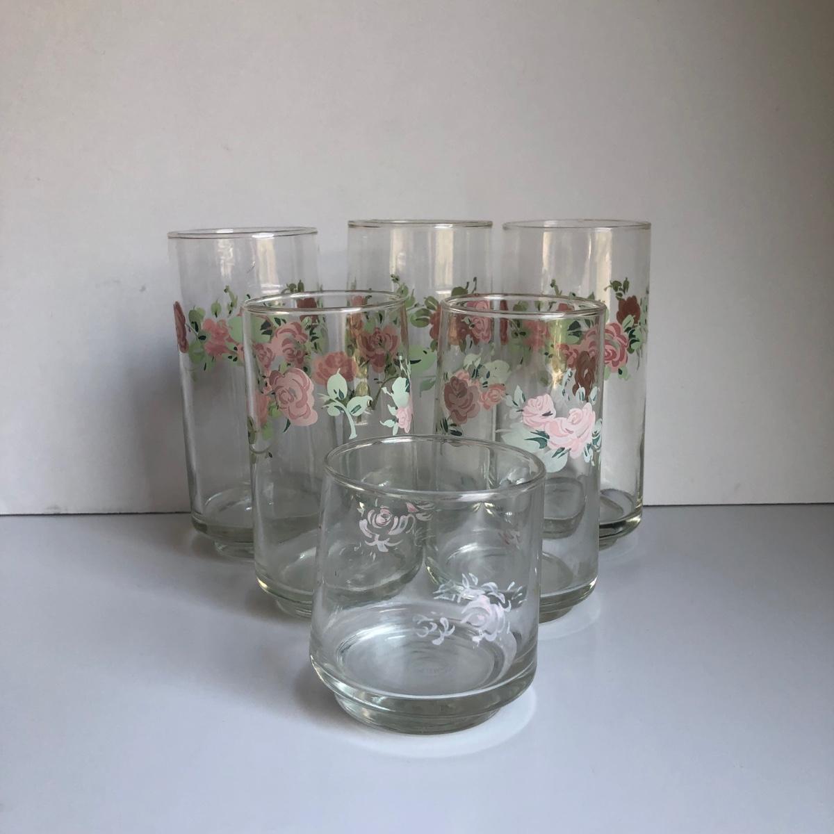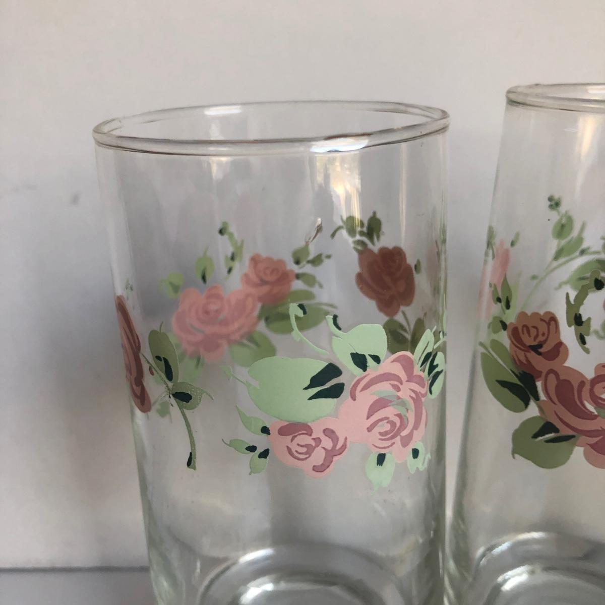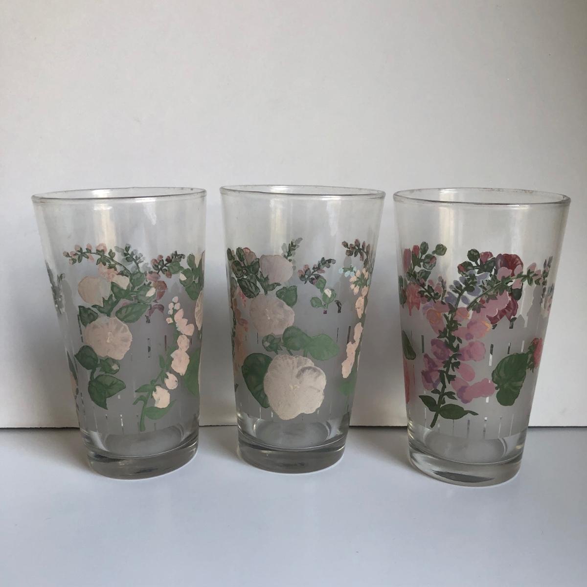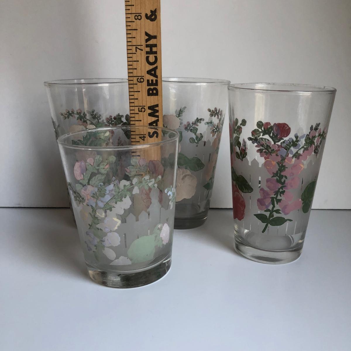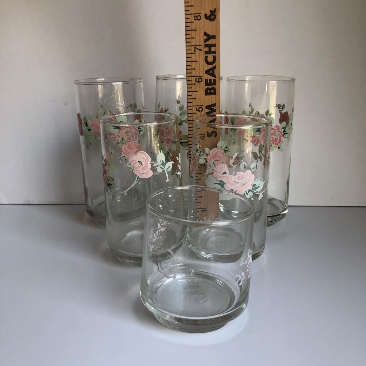 LOT 181K: Blue Tint Libbey Glasses & Floral Pattern Glassware