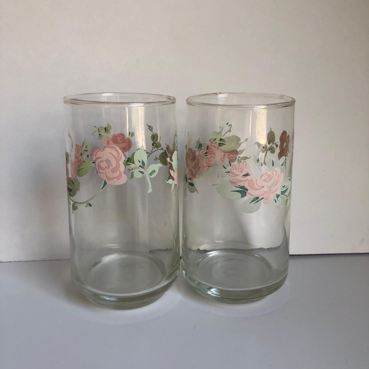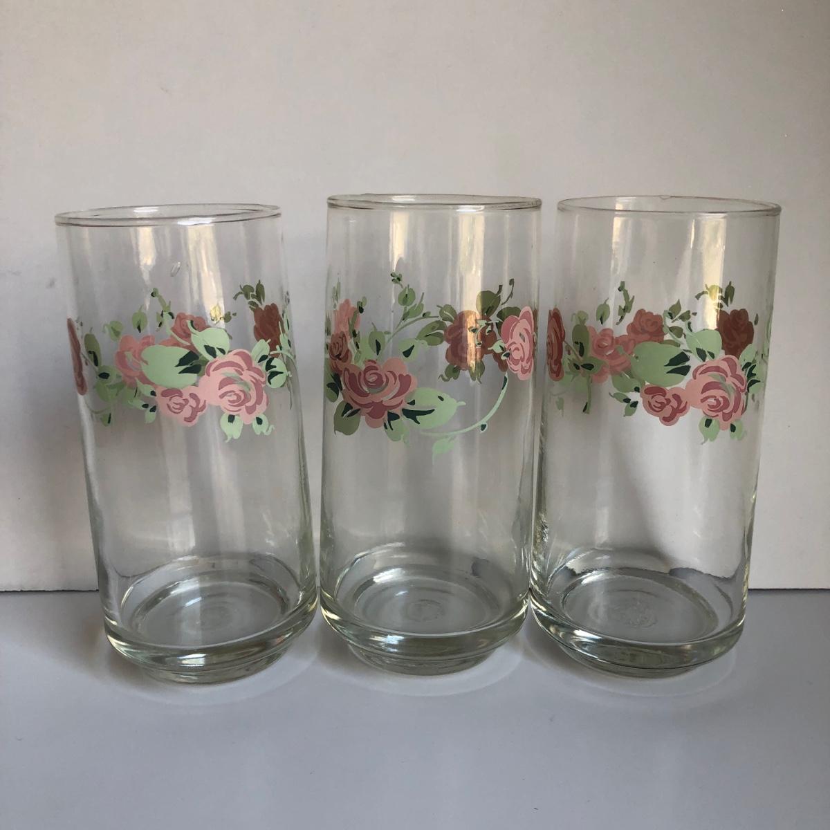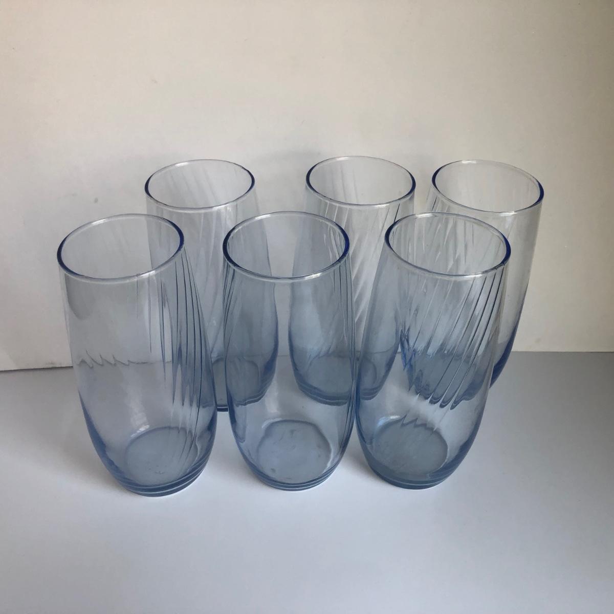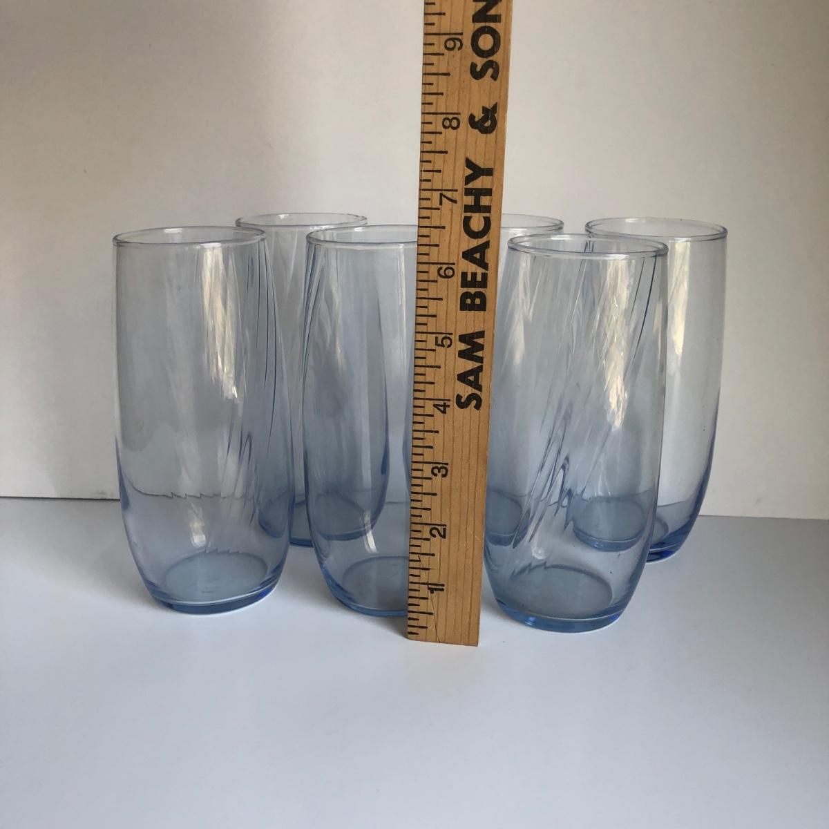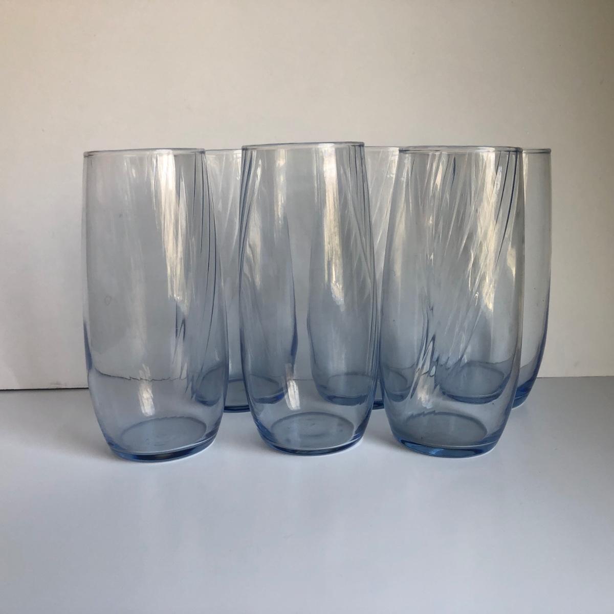 LOT 181K: Blue Tint Libbey Glasses & Floral Pattern Glassware