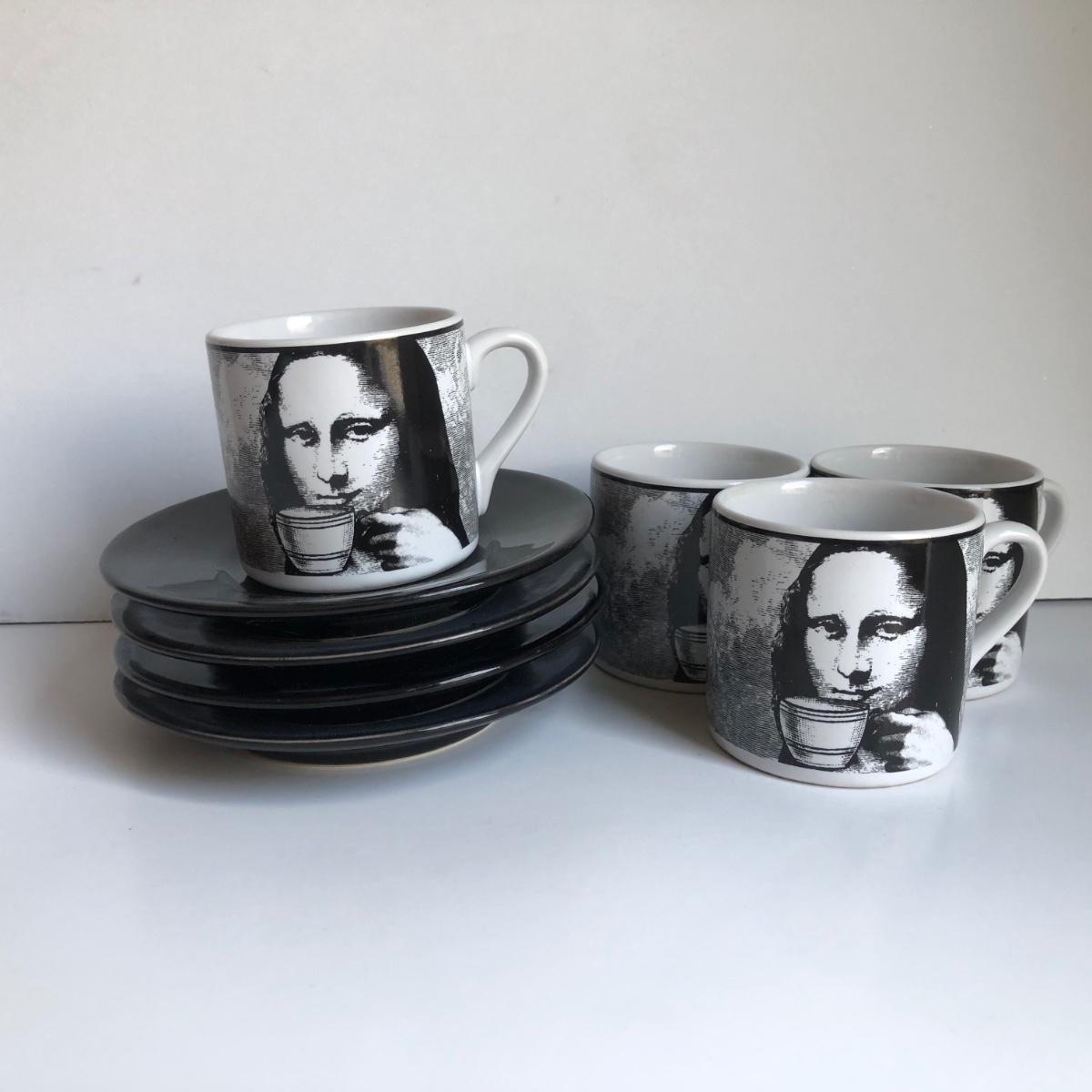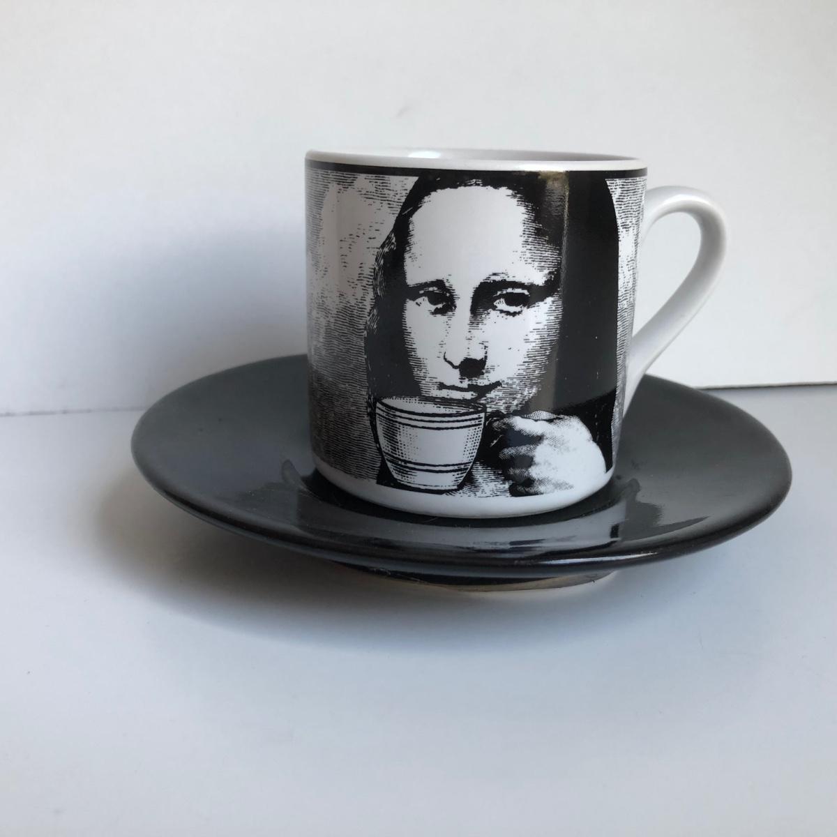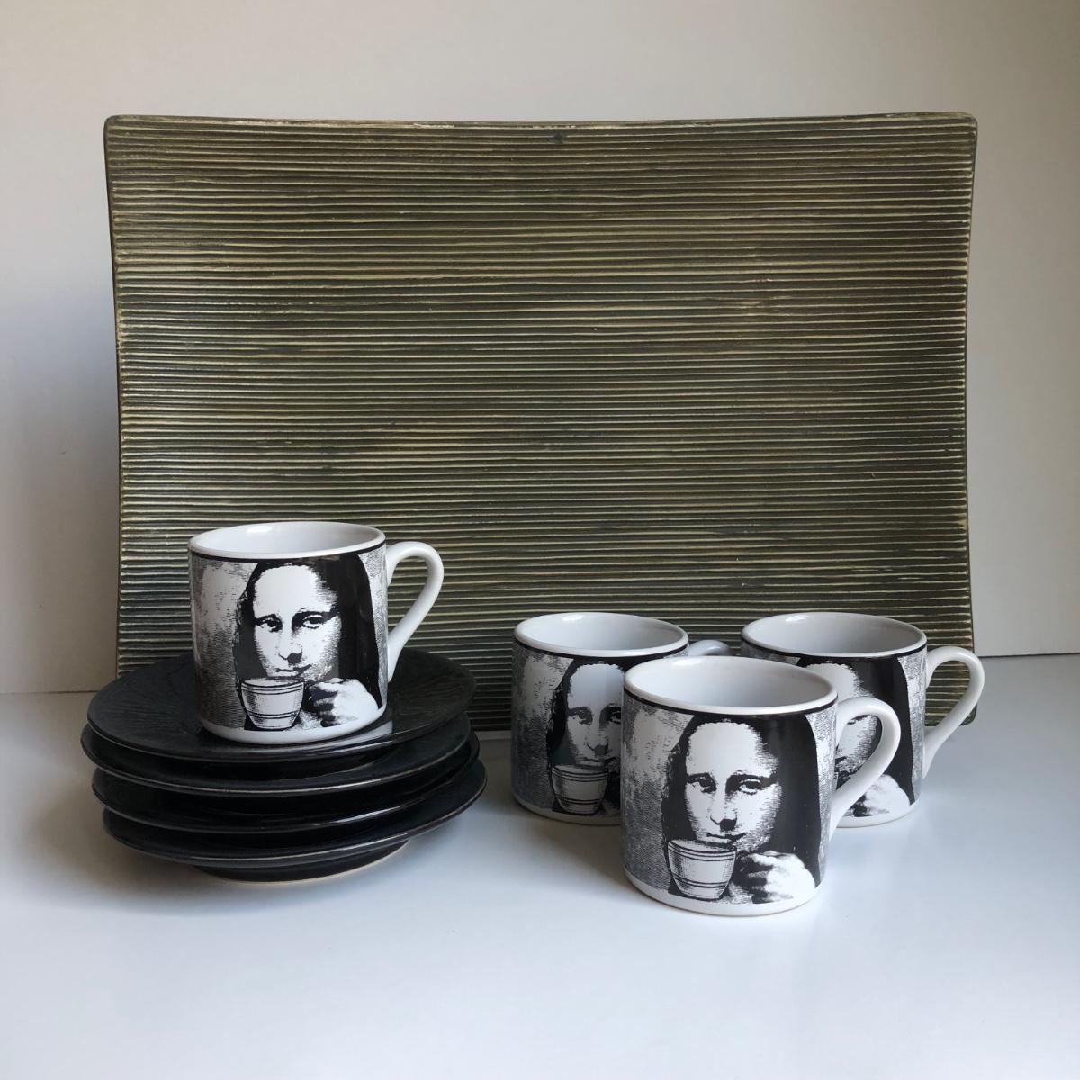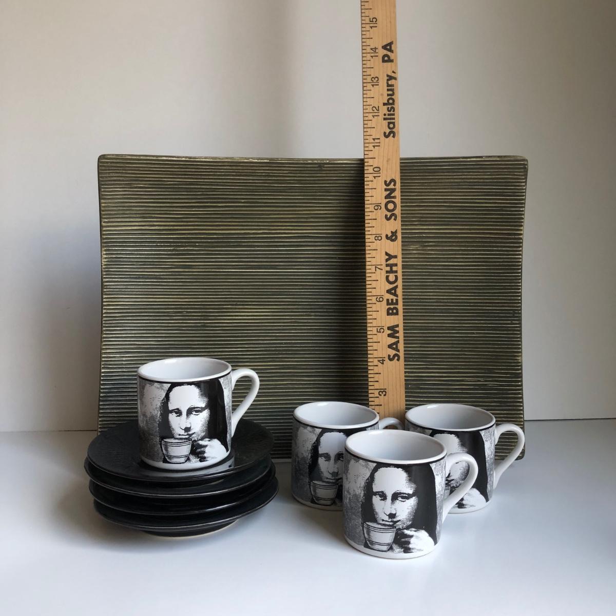 LOT 182K: Riviera van Beers by Signature Housewares Incorporated Mona Lisa Espresso Set & Home Trends Ceramic Decor Plate