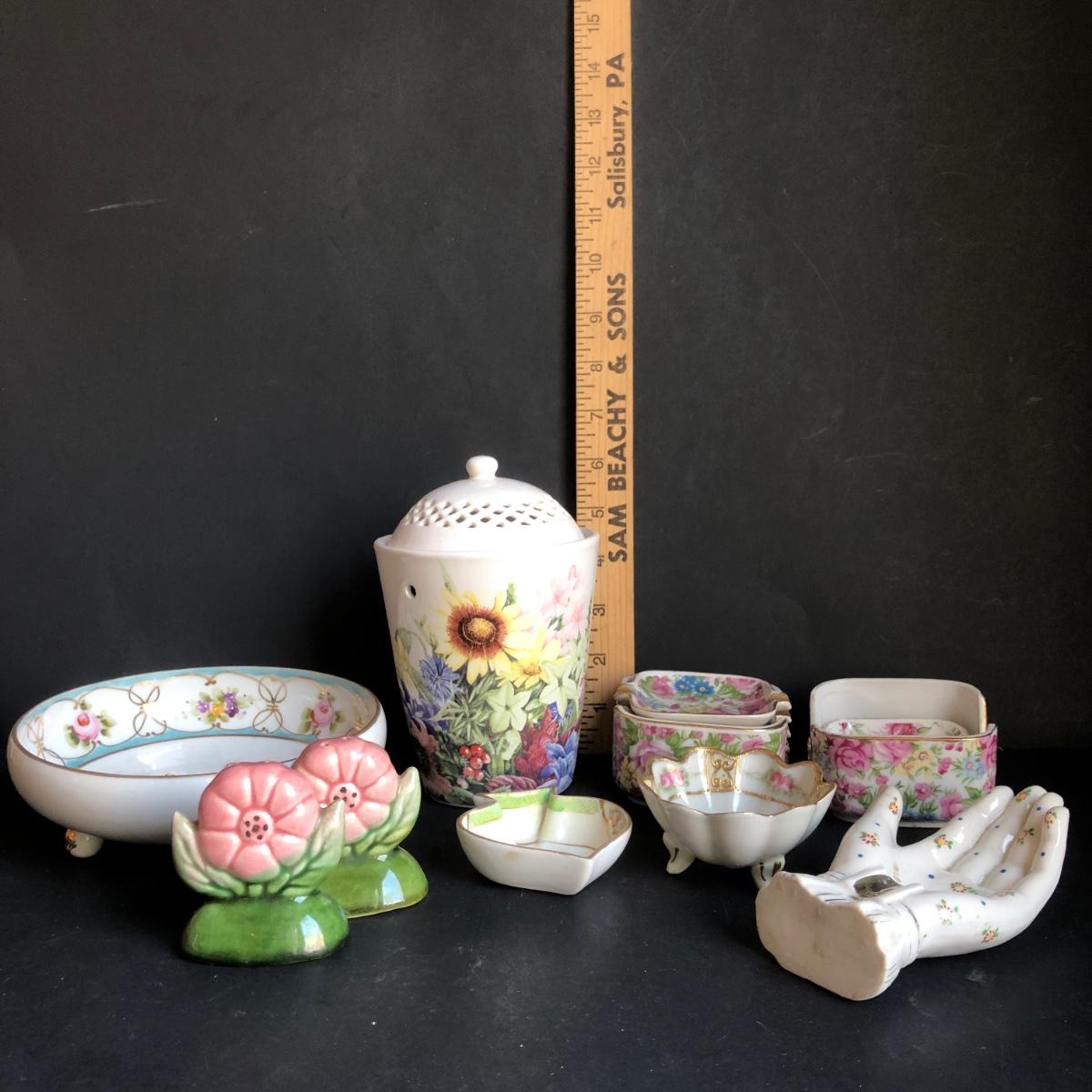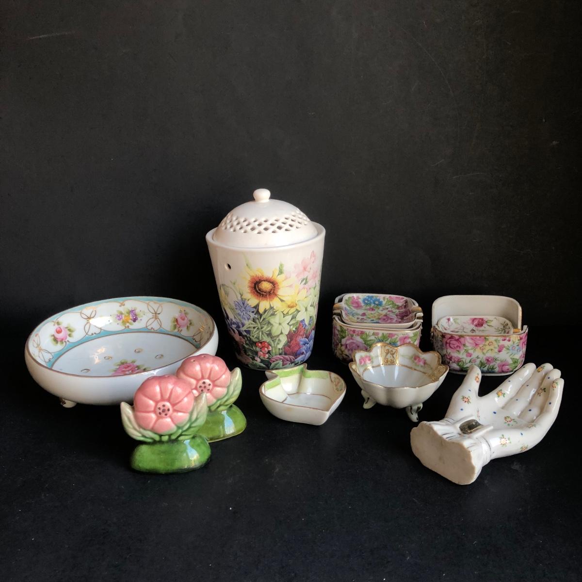 LOT 188K: Vintage China Ash Trays, S&P Shakers, Nippon Salt Dish & More