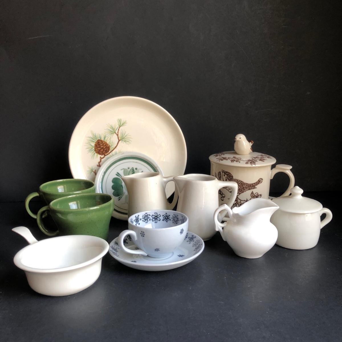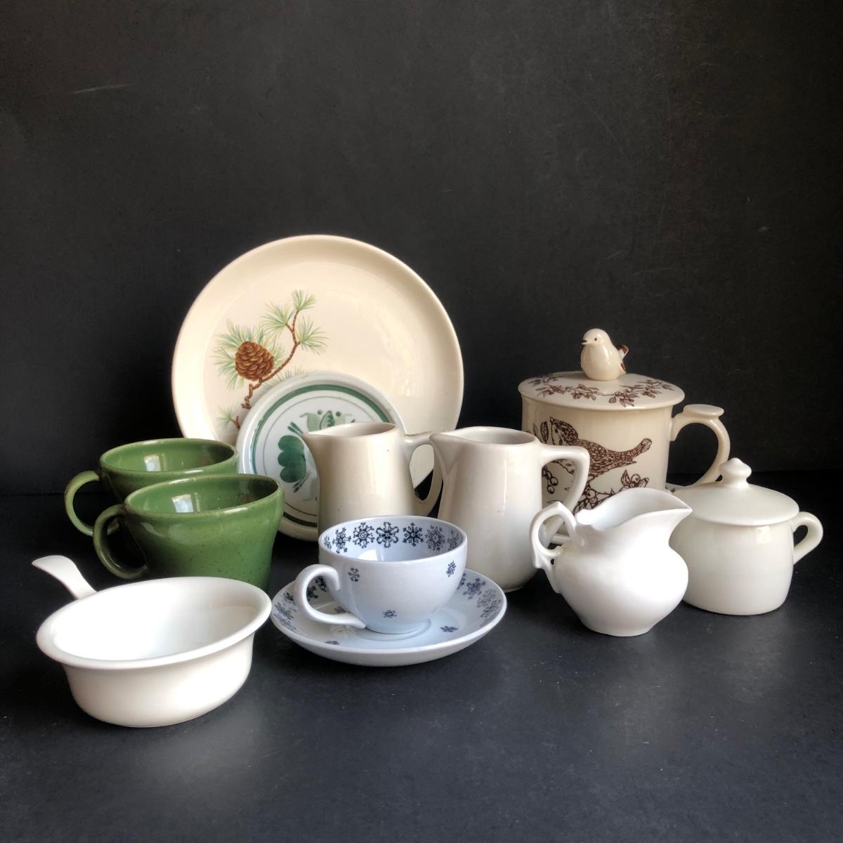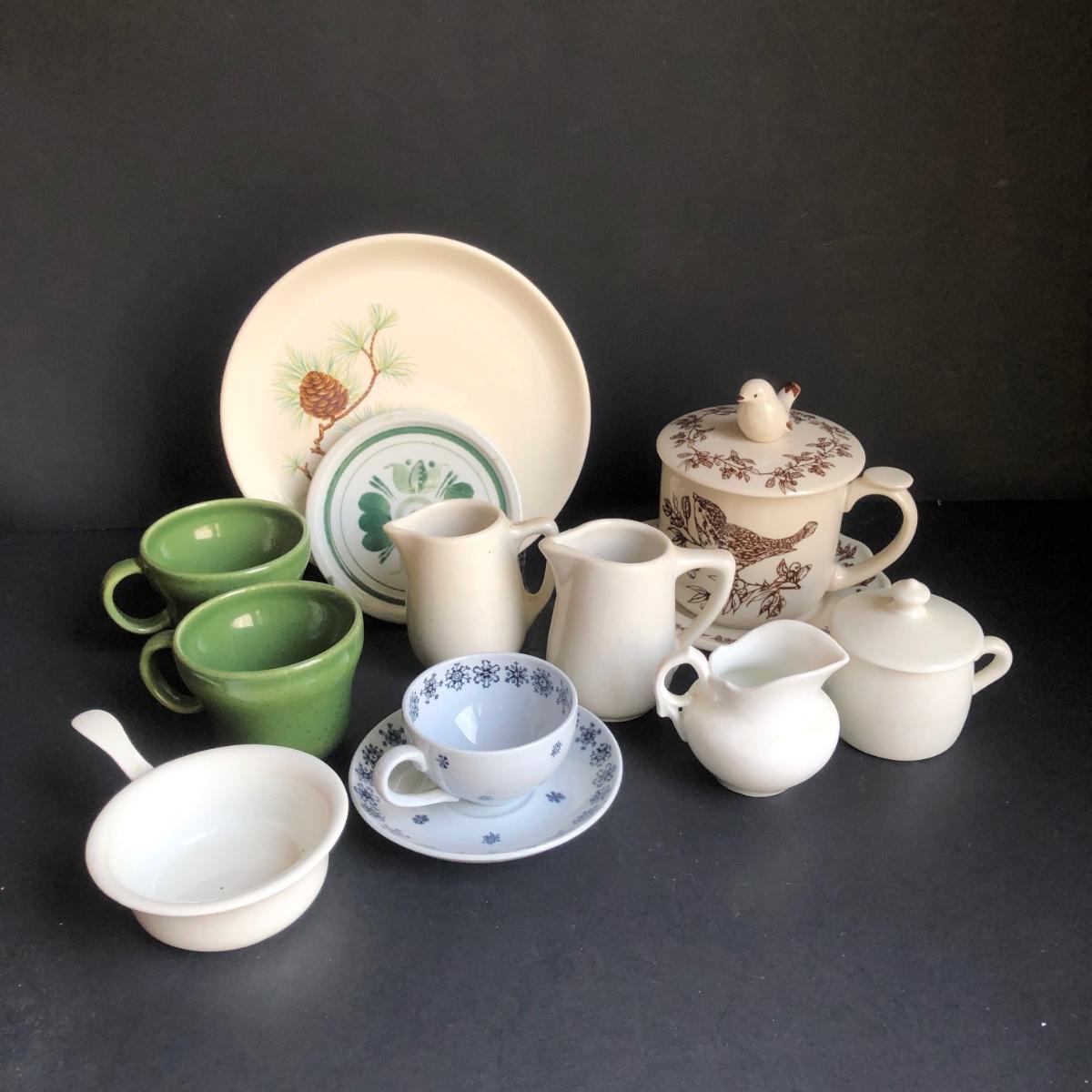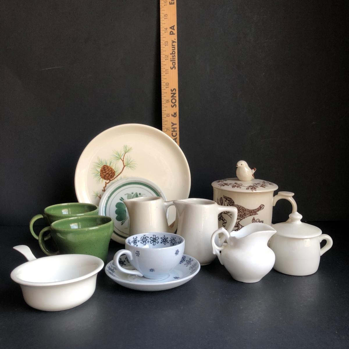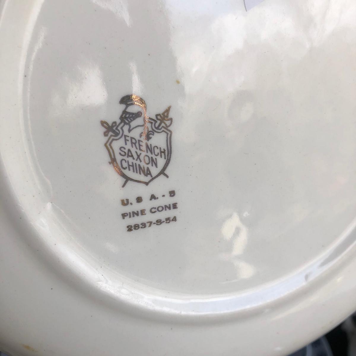 LOT 191K: Rustic China Collection - French Saxon China Pinecone Plate, Bird Toile Elisabeth for Andrea by Sadek, Arabia, Mayer, Syracuse & More