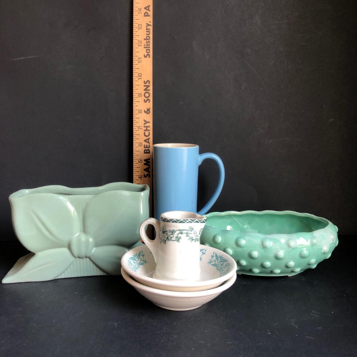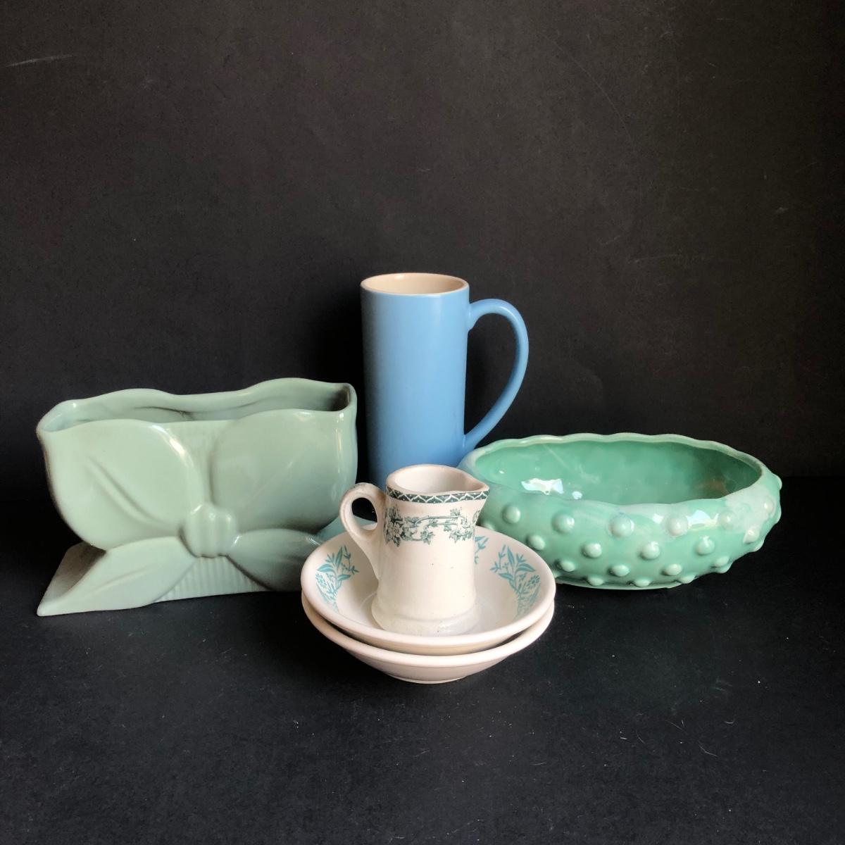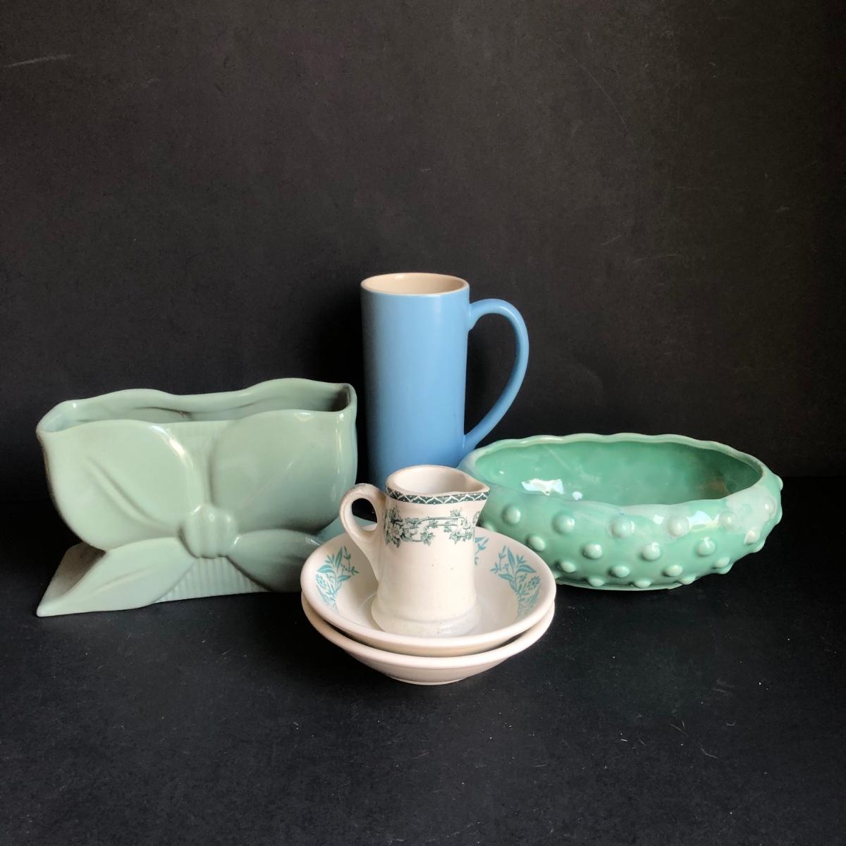 LOT 192K: Vintage Blue Pottery - Abingdon Pottery Planter, USA Bubble Planter & More