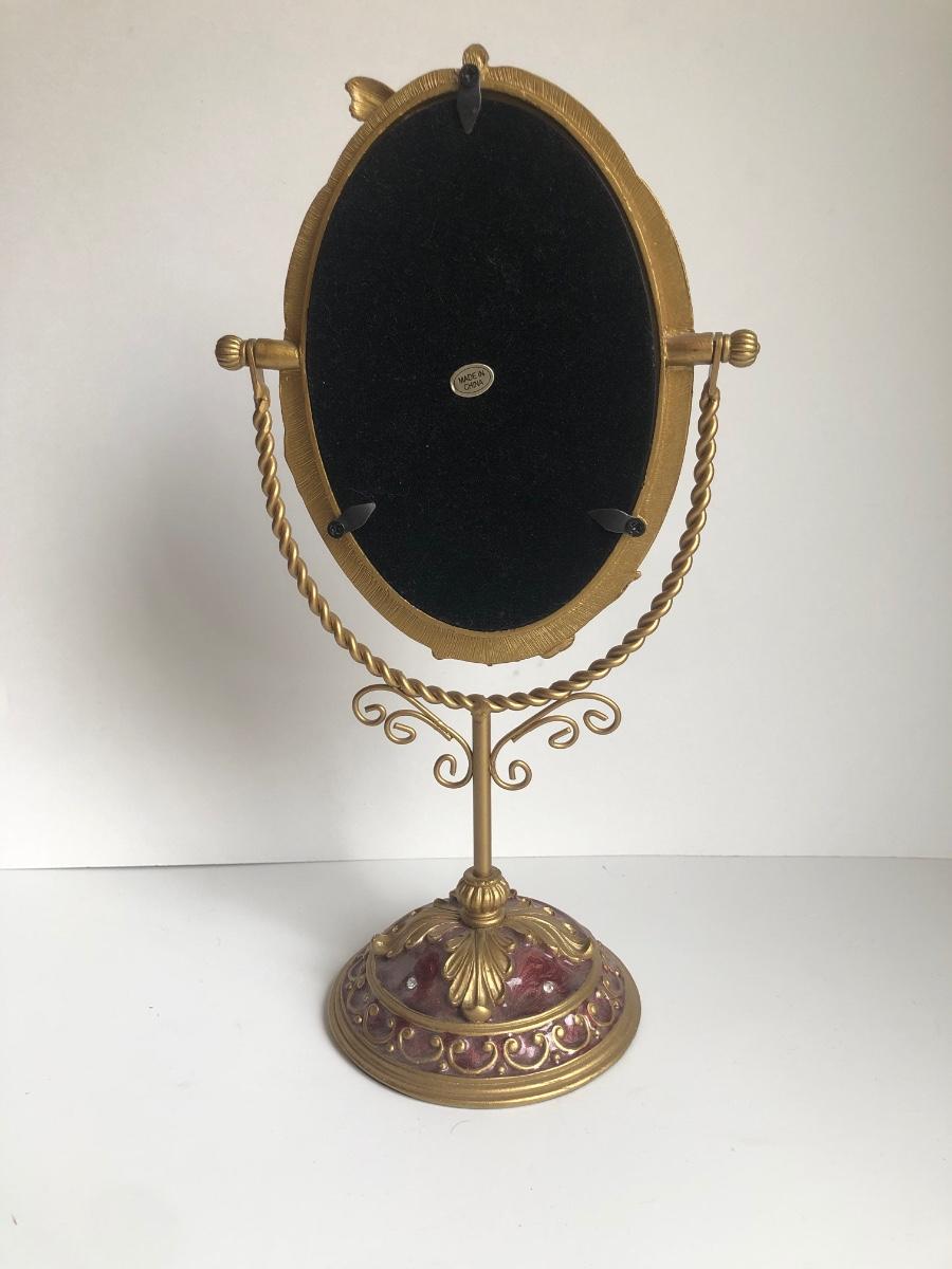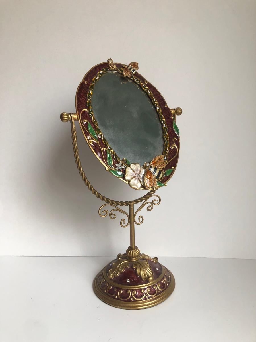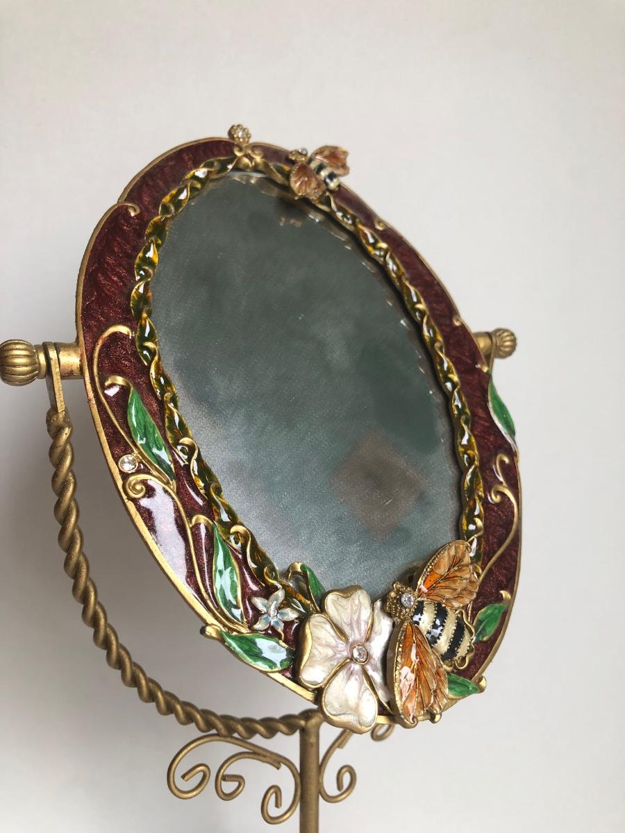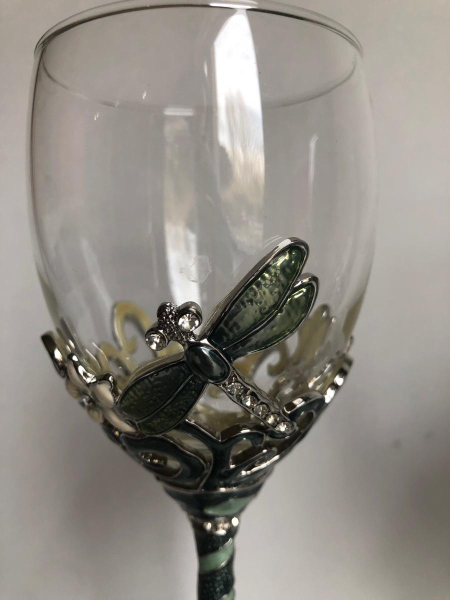 LOT 198L: Forever International Dragonfly Wine Glasses w/ Lined Box, Gilded Ornate Bee Mirror & Floral Tray