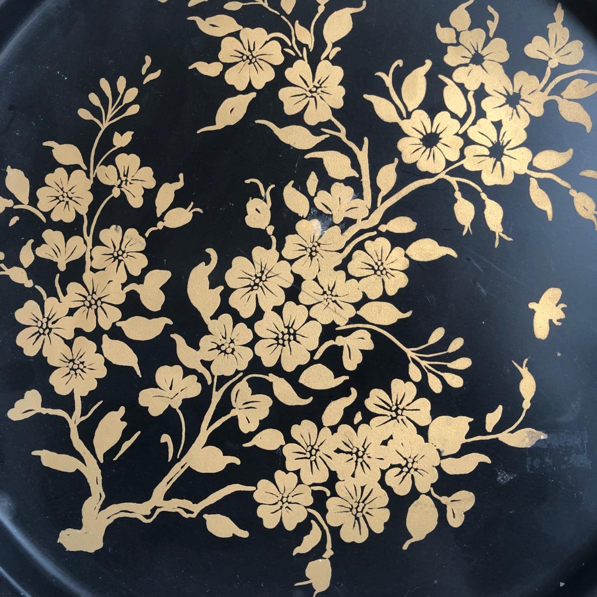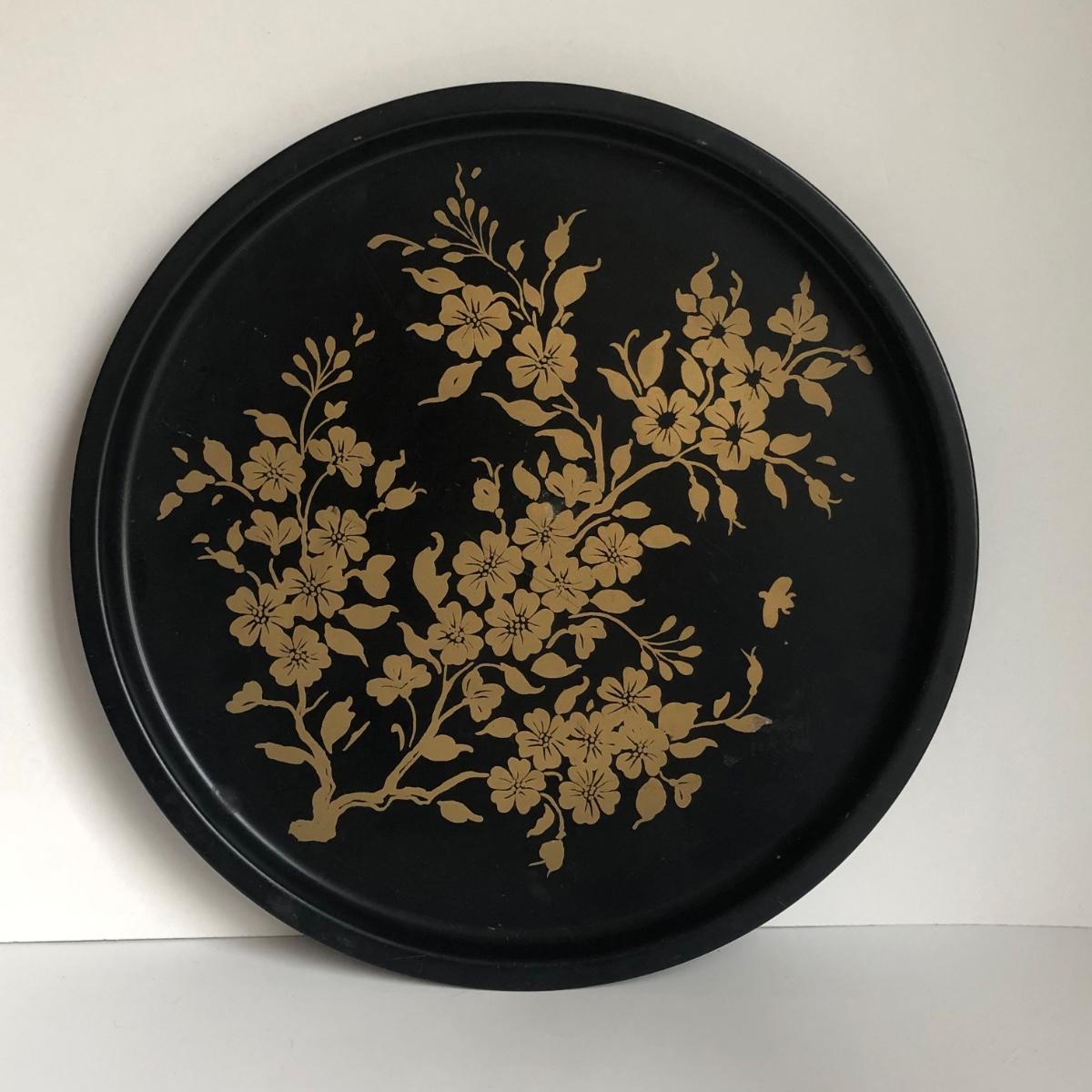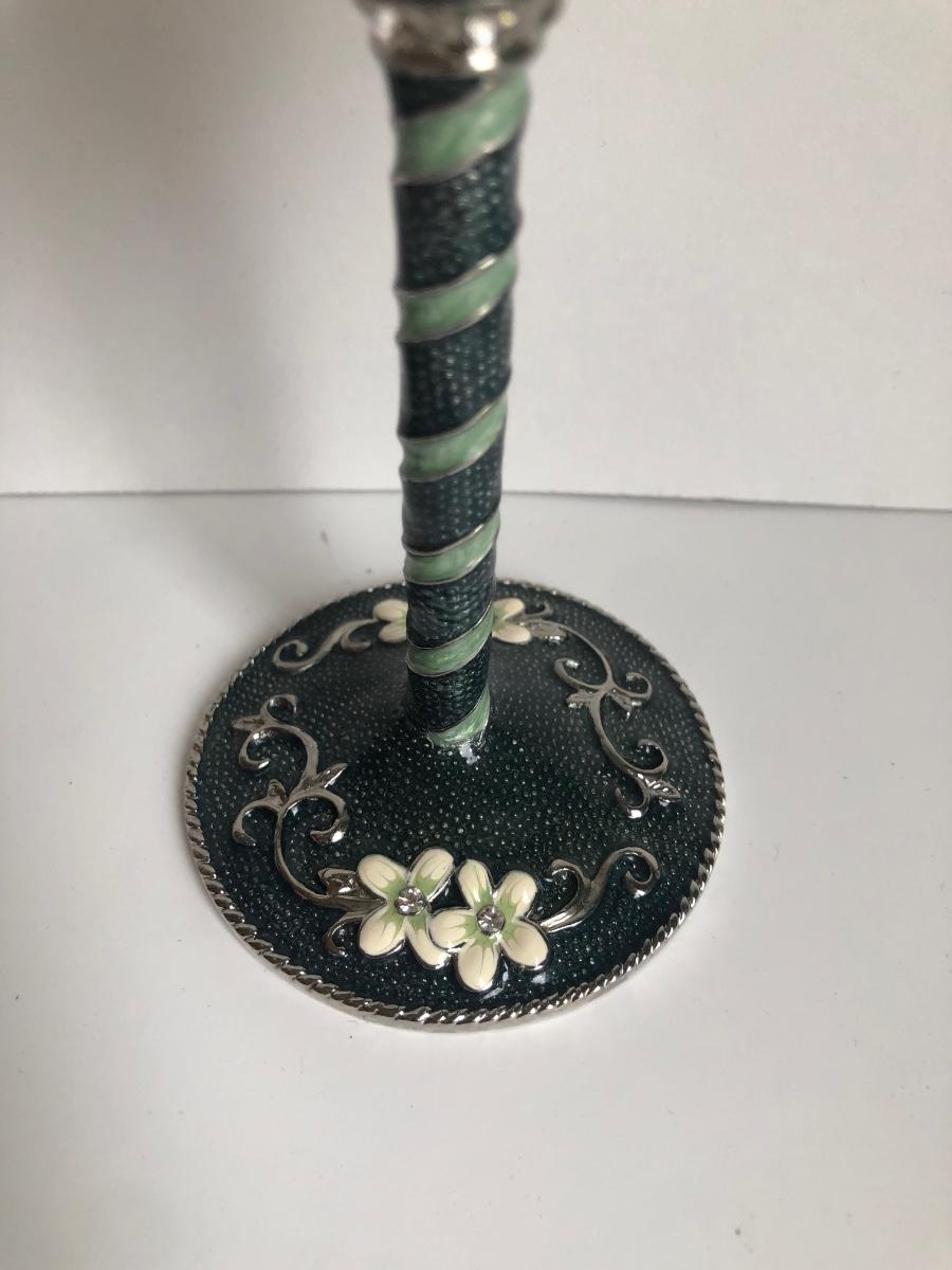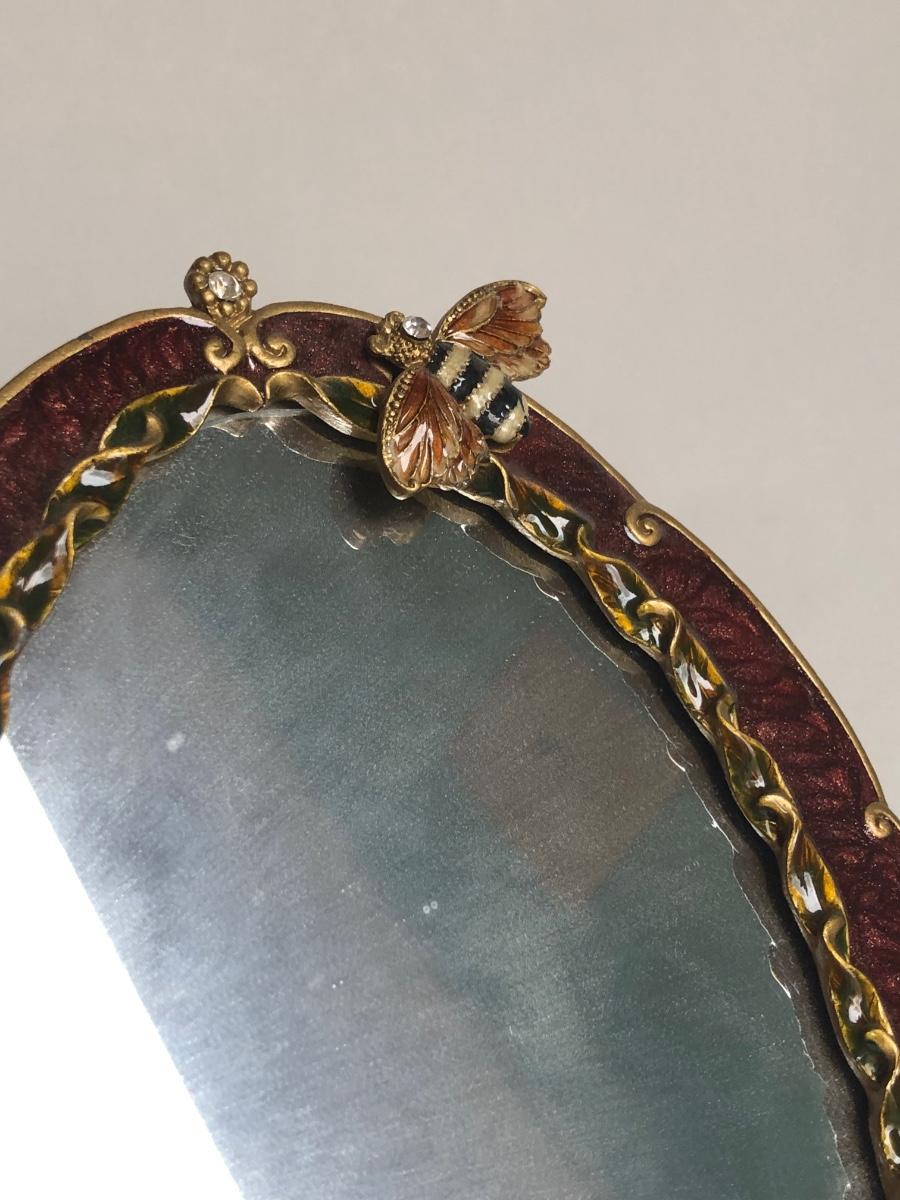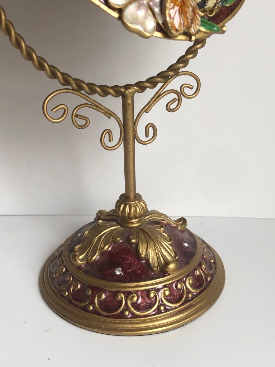 LOT 198L: Forever International Dragonfly Wine Glasses w/ Lined Box, Gilded Ornate Bee Mirror & Floral Tray