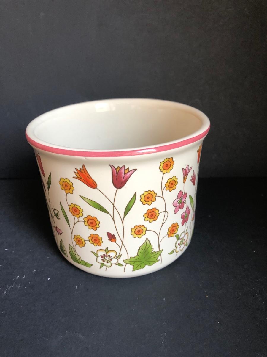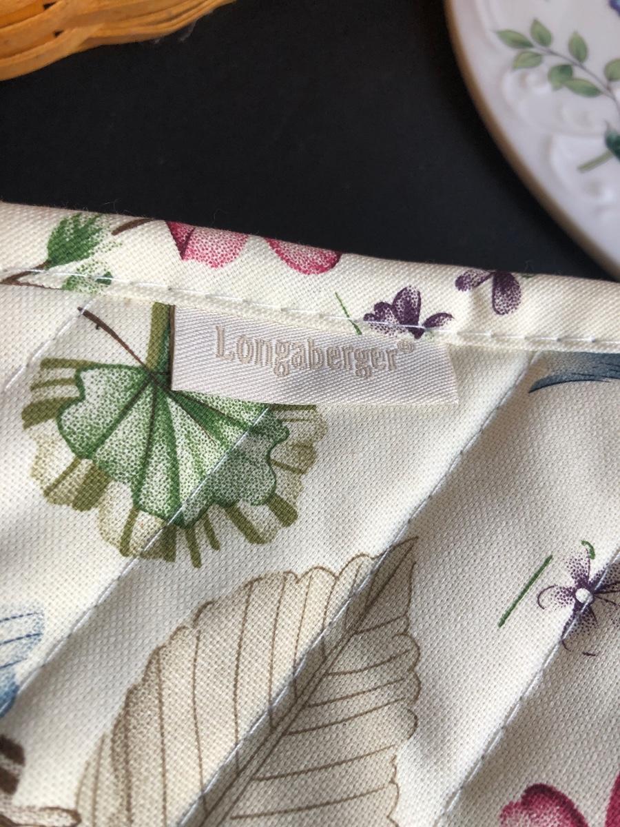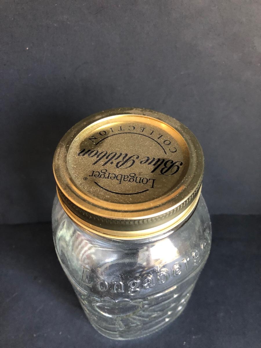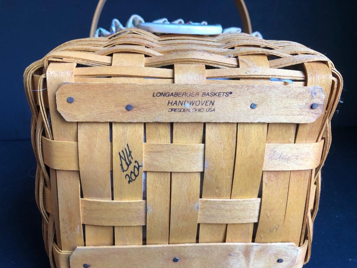 LOT 209S: Longaberger & More - Floral Basket, Blue Ribbon Glass Jar, Pottery Planter, Oven Mitt & More
