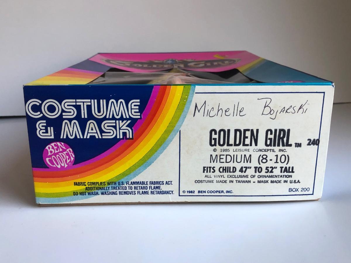 LOT 212L: Vintage 1980s Ben Cooper Golden Girl Child's Costume & Mask in Box (Size Medium 8-10)