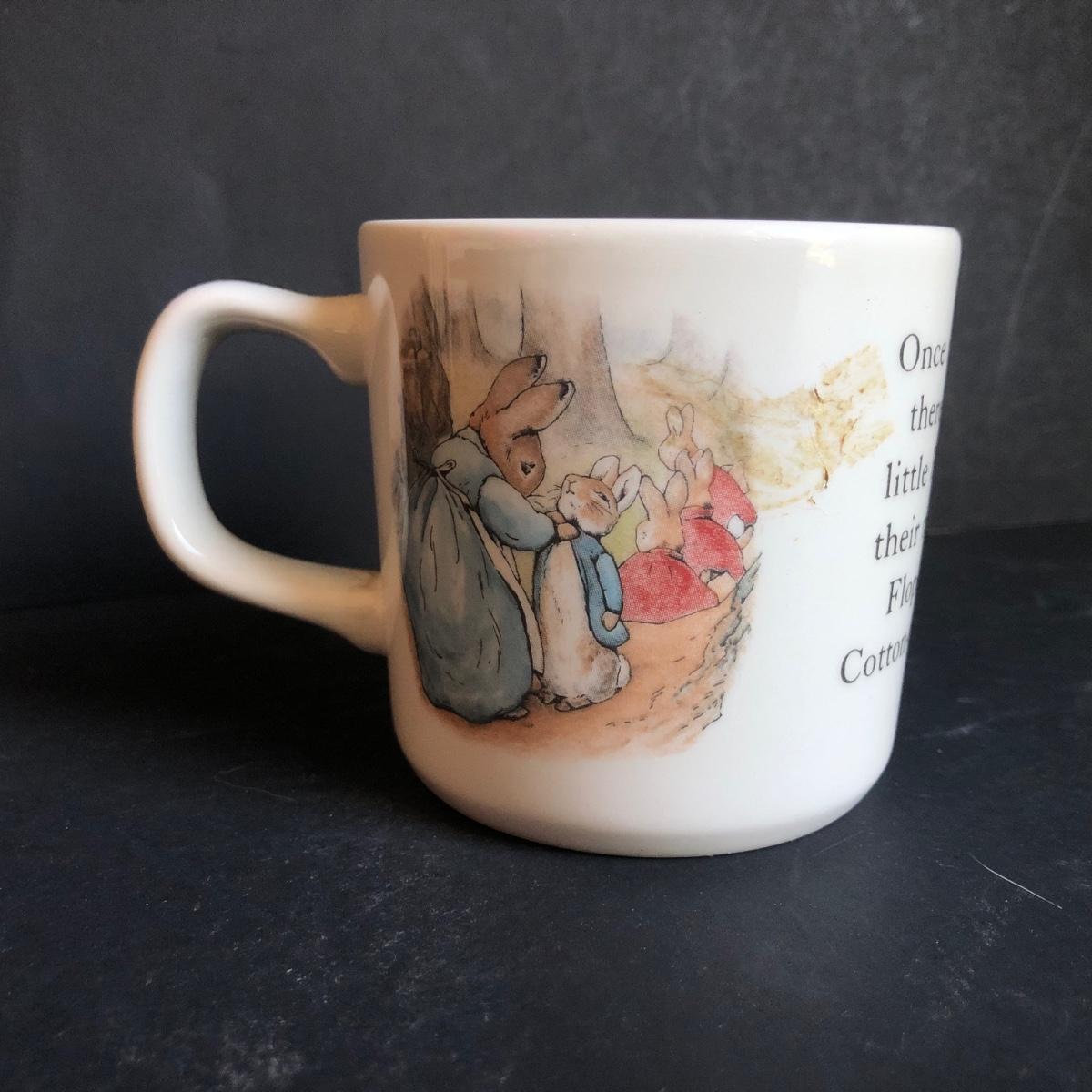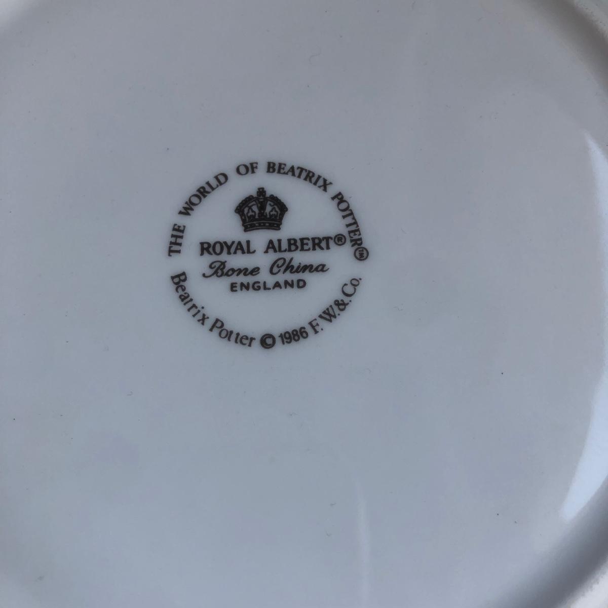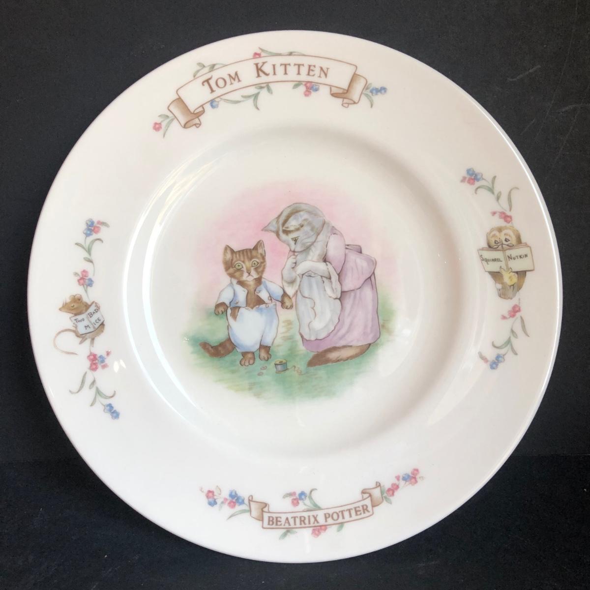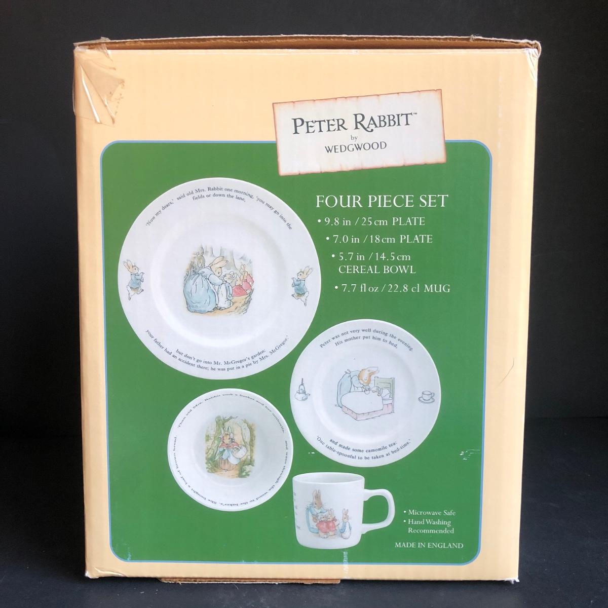 LOT 216L: Wedgewood Peter Rabbit 4-Piece Set in Box w/ 1991 Wedgewood Tom Kitten Plate & Royal Albert Mug