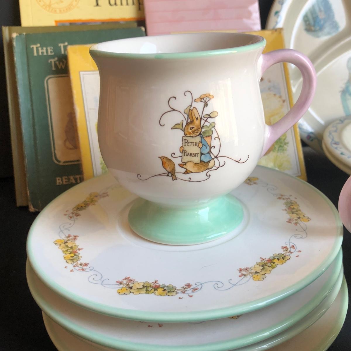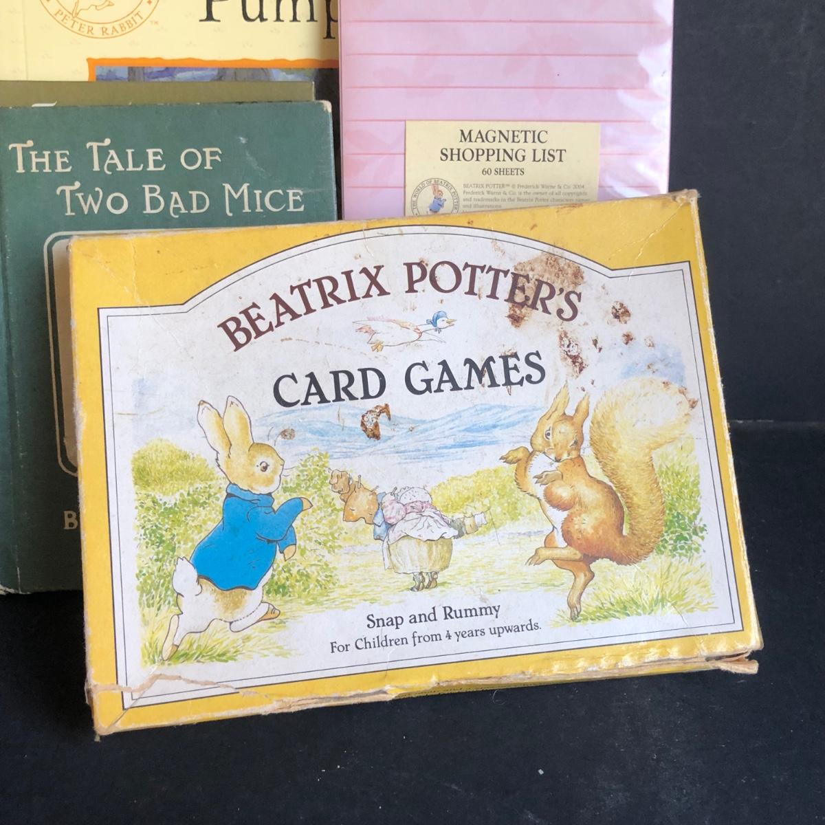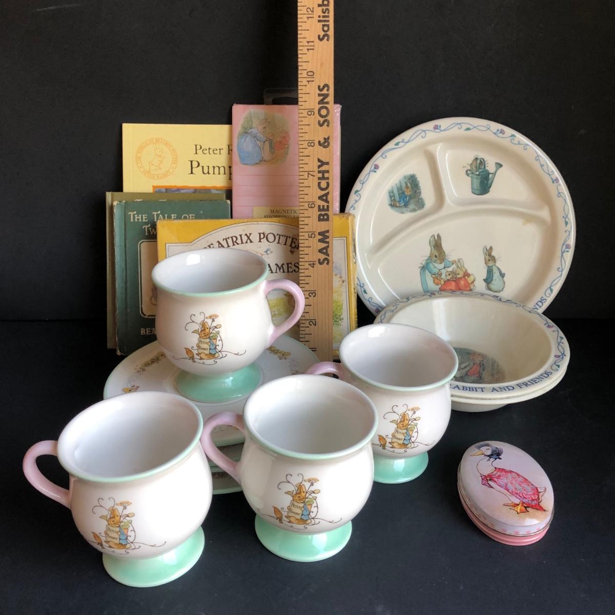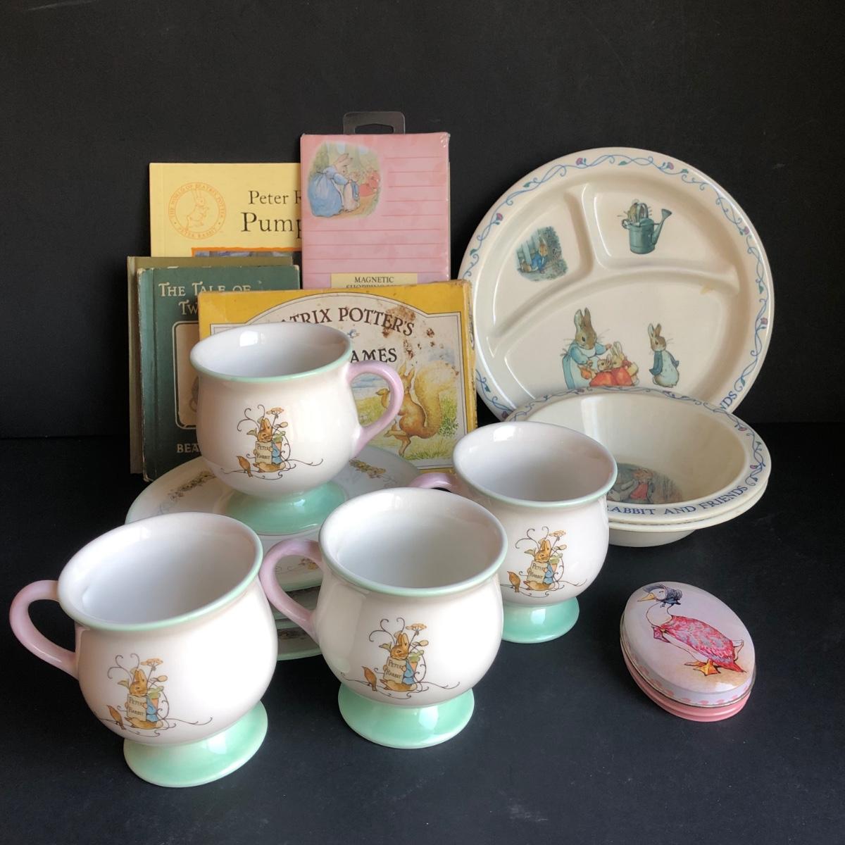LOT 220L: Beatrix Potter Peter Rabbit Collection - 2002 Teleflora Mugs & Saucers, Books, Shopping List, Gibson Card Game & More