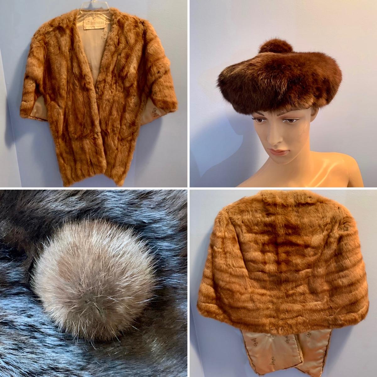 LOT 226 S: Vintage Women's Lit Brothers Real Fur Shawl & Hat