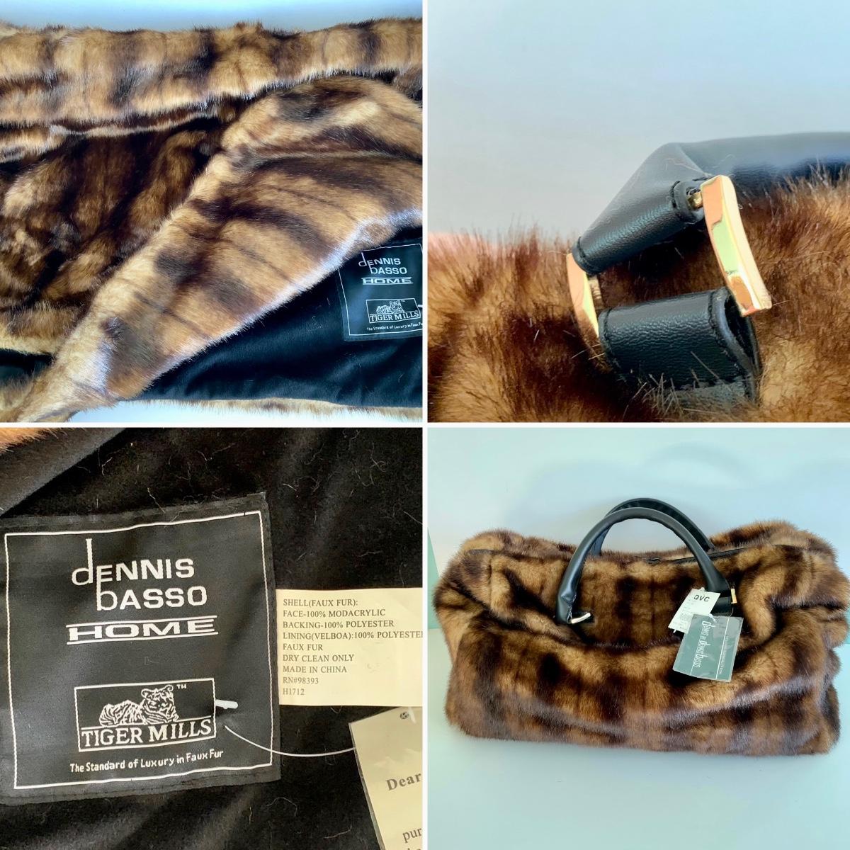 LOT 230 S: Dennis Basso Tiger Mills Faux Fur Duffel Bag & Throw Blanket Set