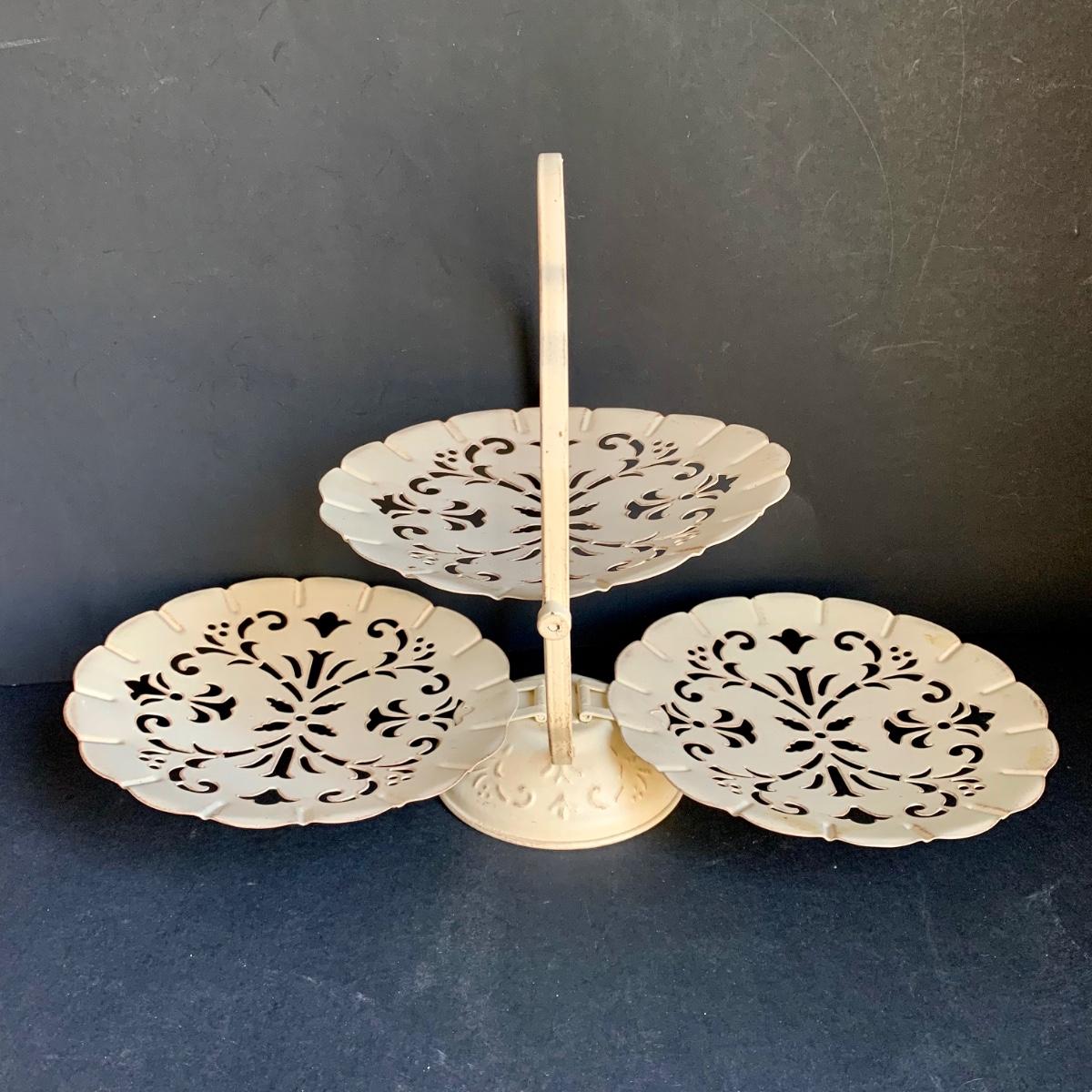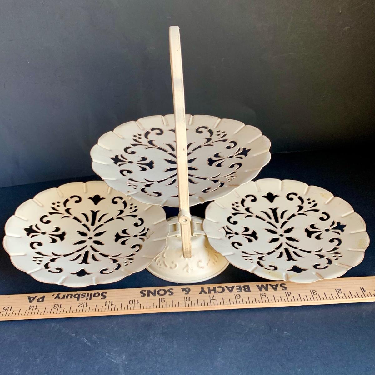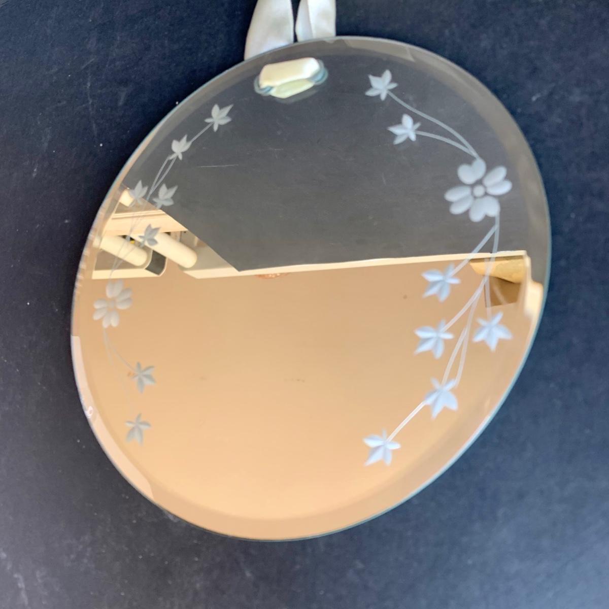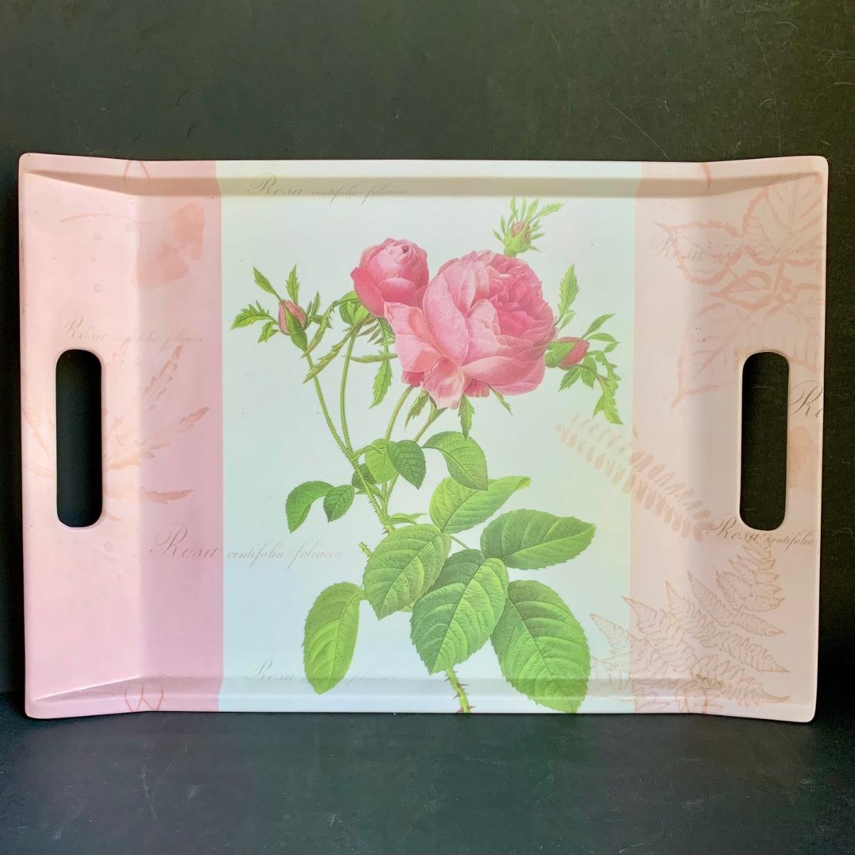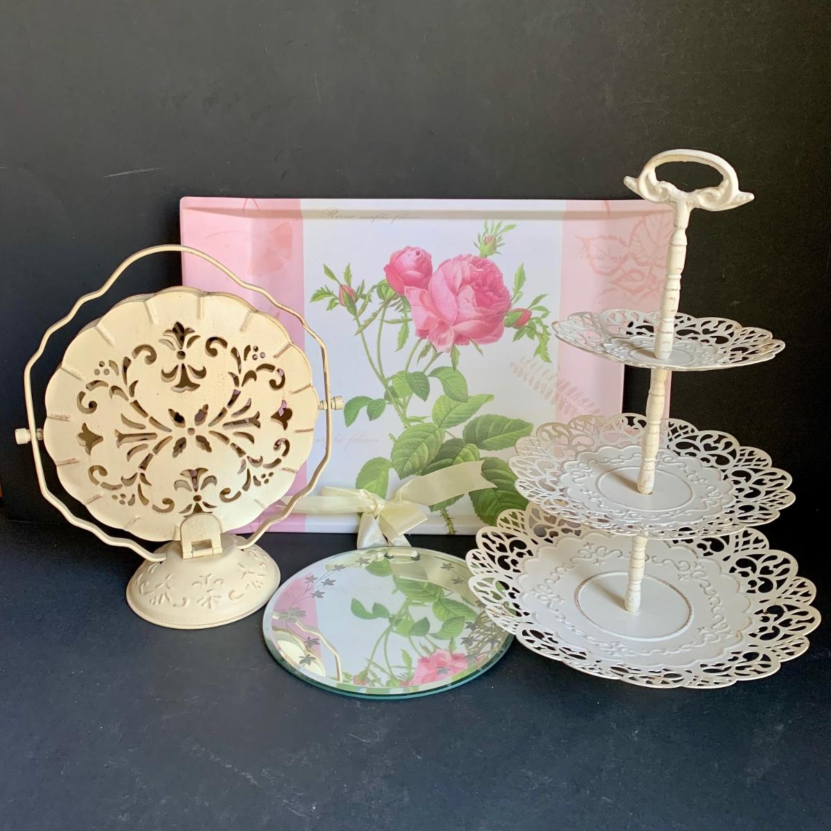 LOT 238 K: Vintage Enamel Serving Trays, Floral Mirror & Tray