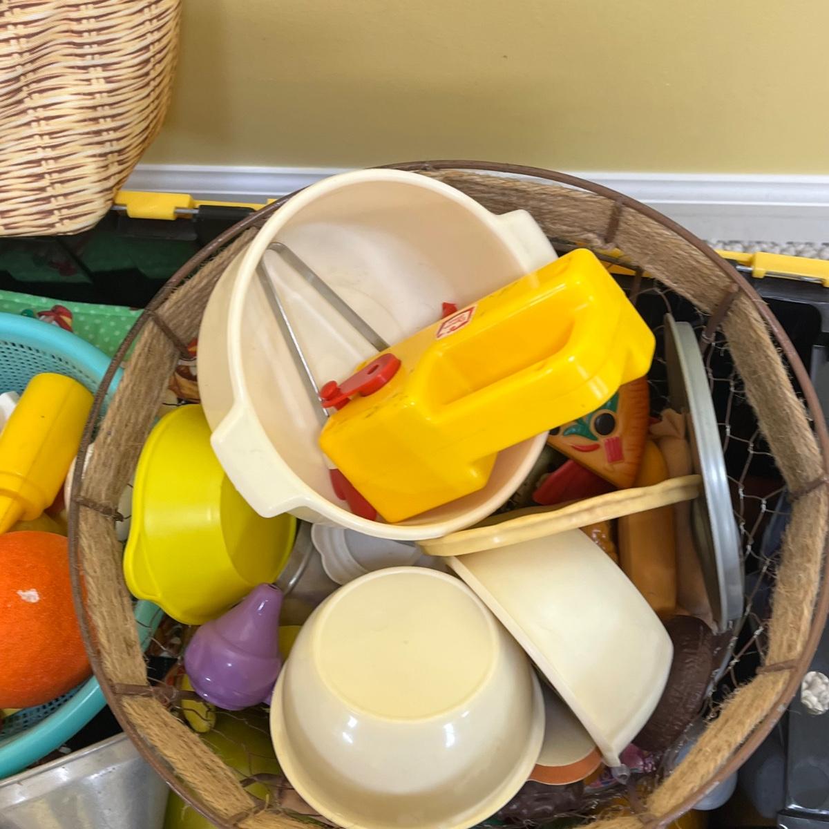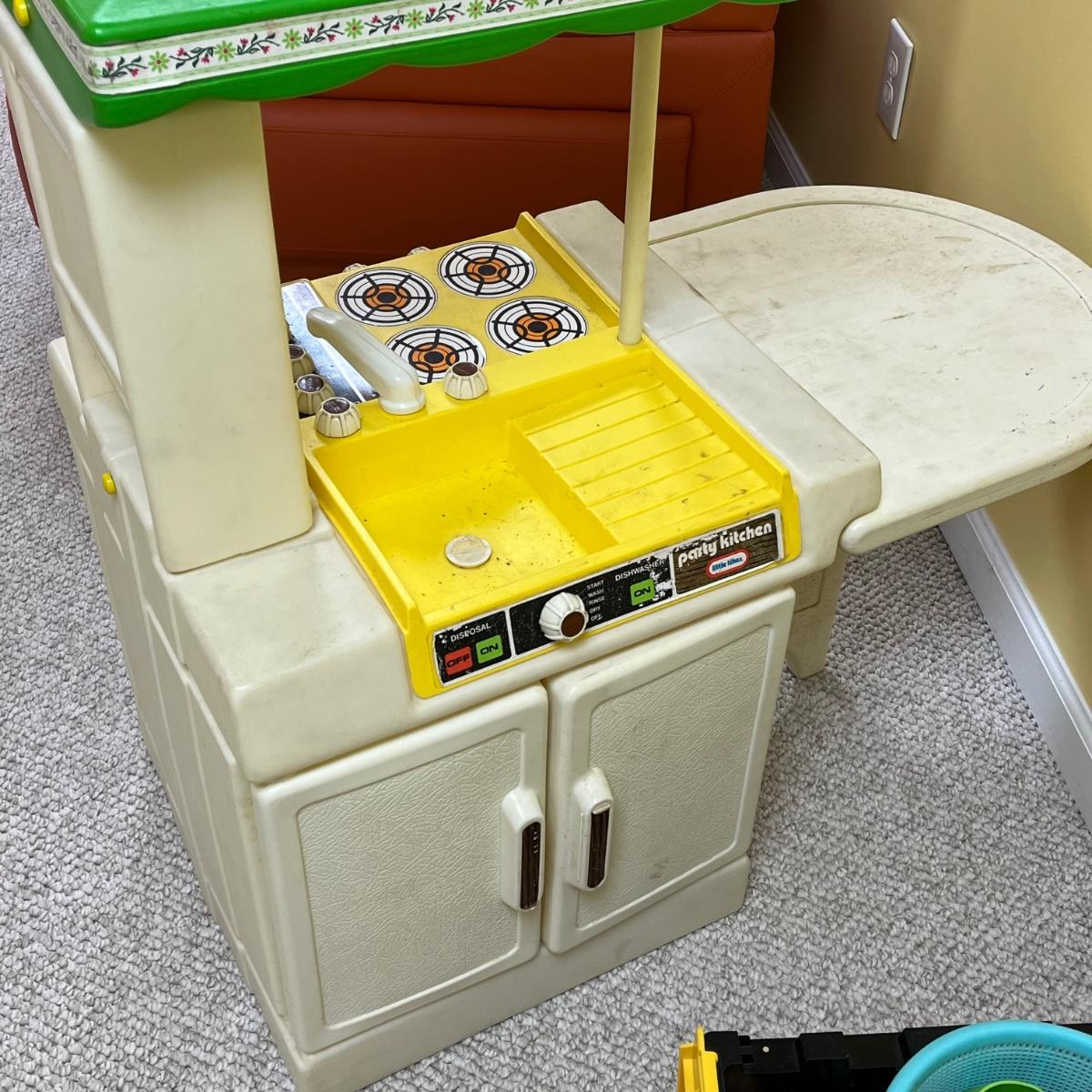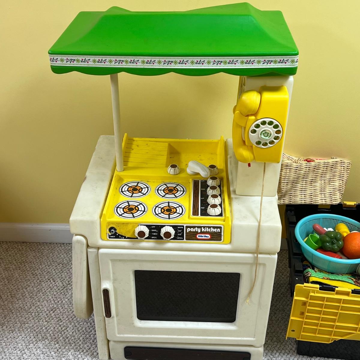 LOT 245B: Vintage Little Tikes Party Kitchen + Toy Food and Pretend Play Appliances and Cookware