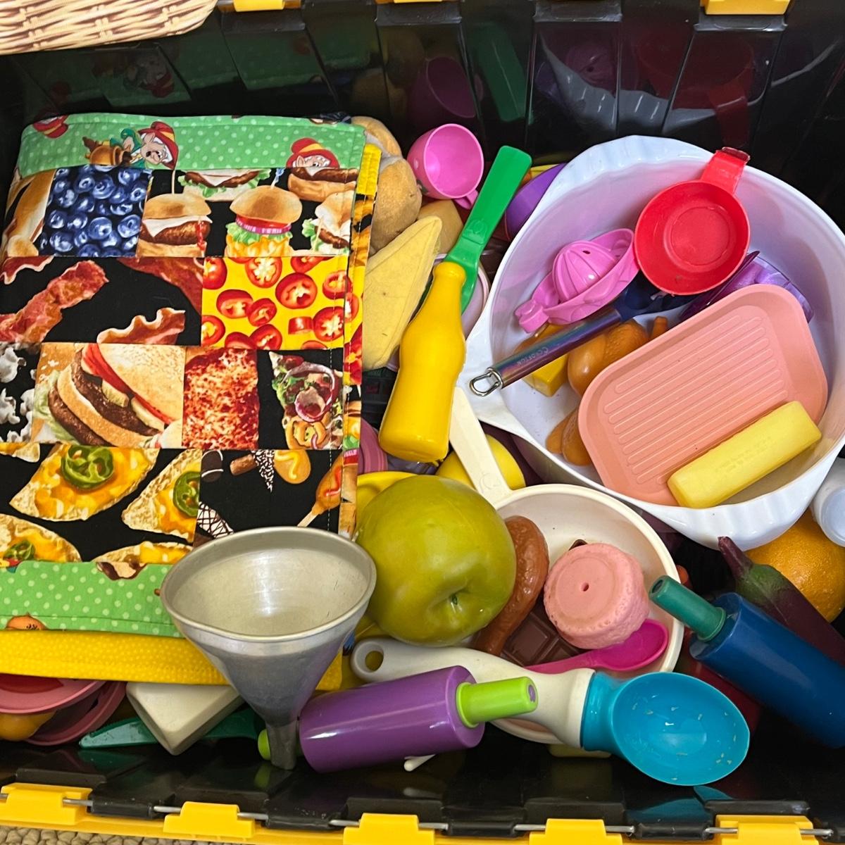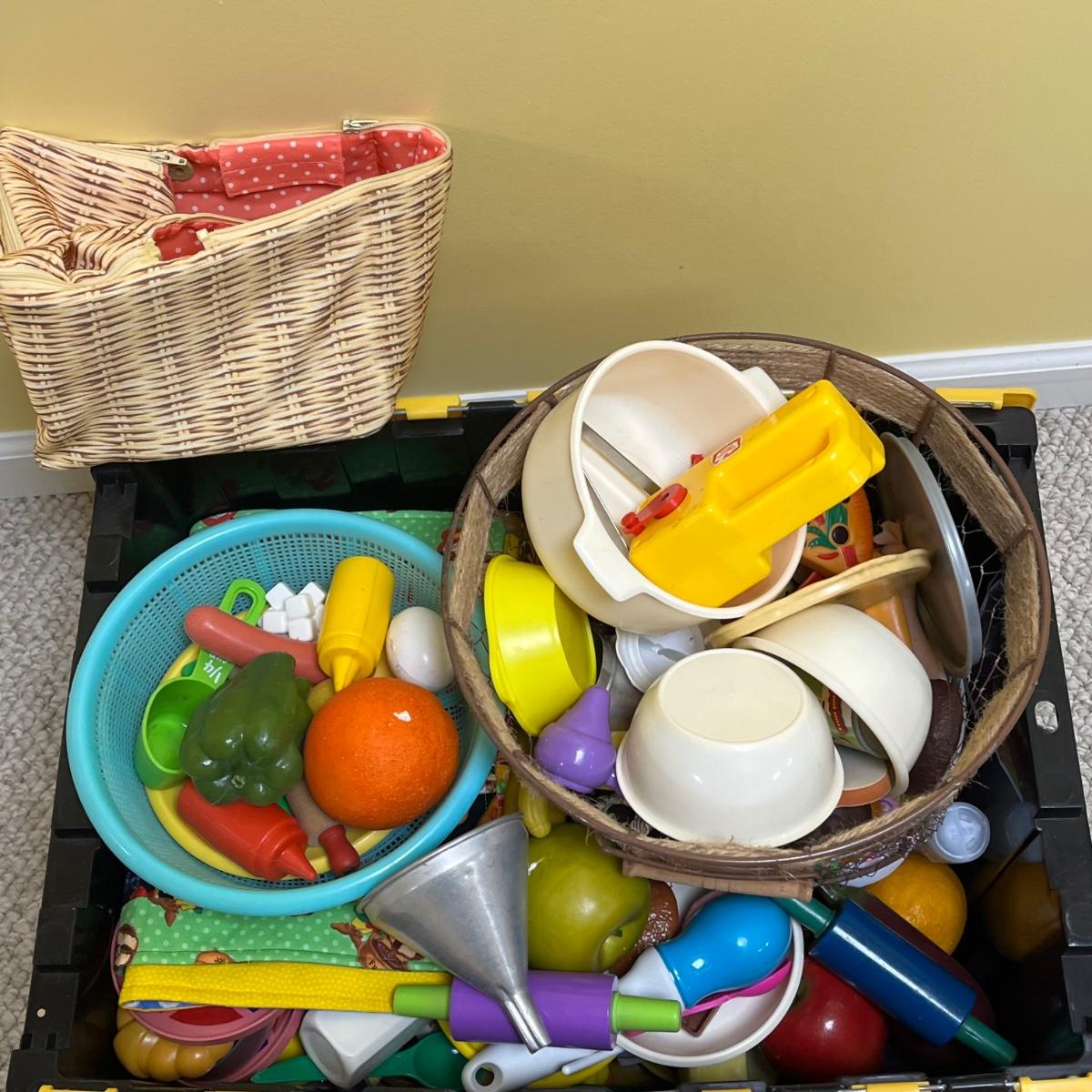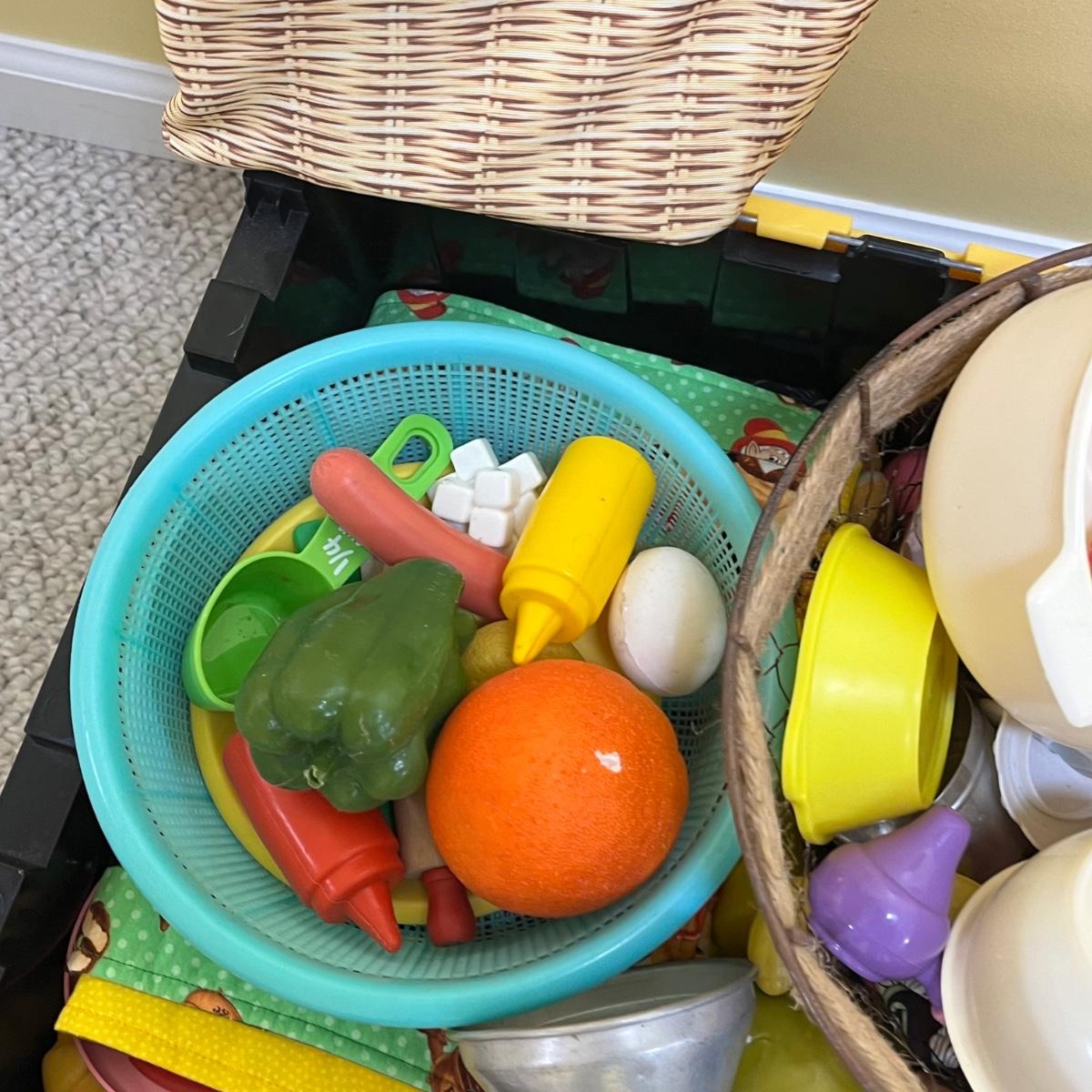 LOT 245B: Vintage Little Tikes Party Kitchen + Toy Food and Pretend Play Appliances and Cookware