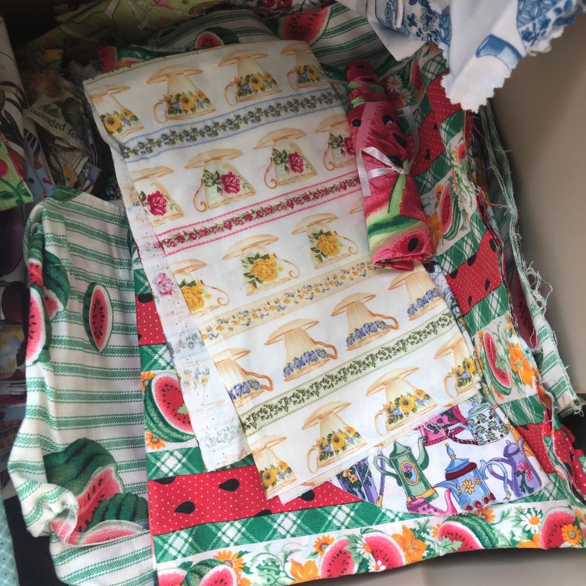 LOT 266S: Collection of Fabrics for Crafting / Sewing - Tea Cups and Teapots, Food Themed