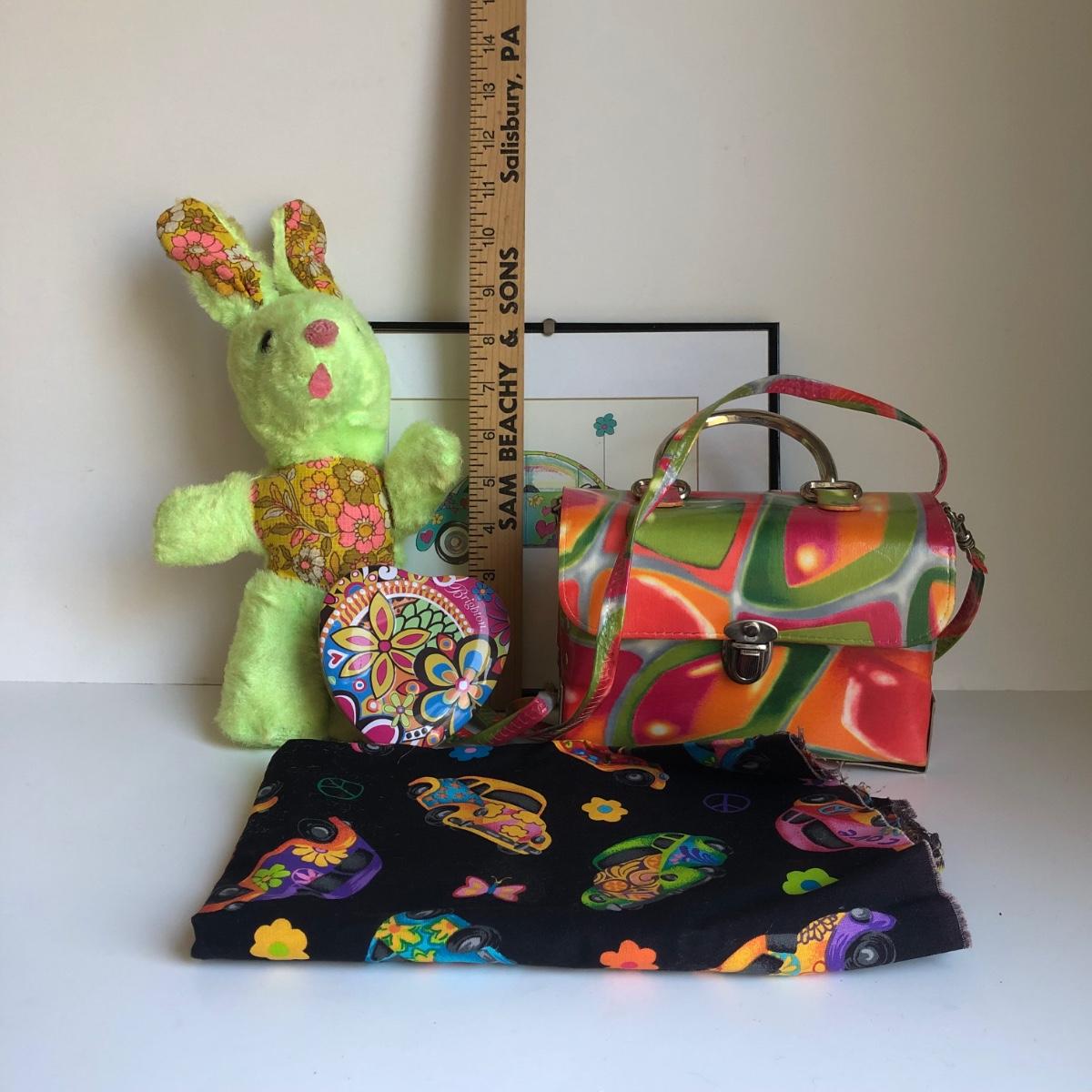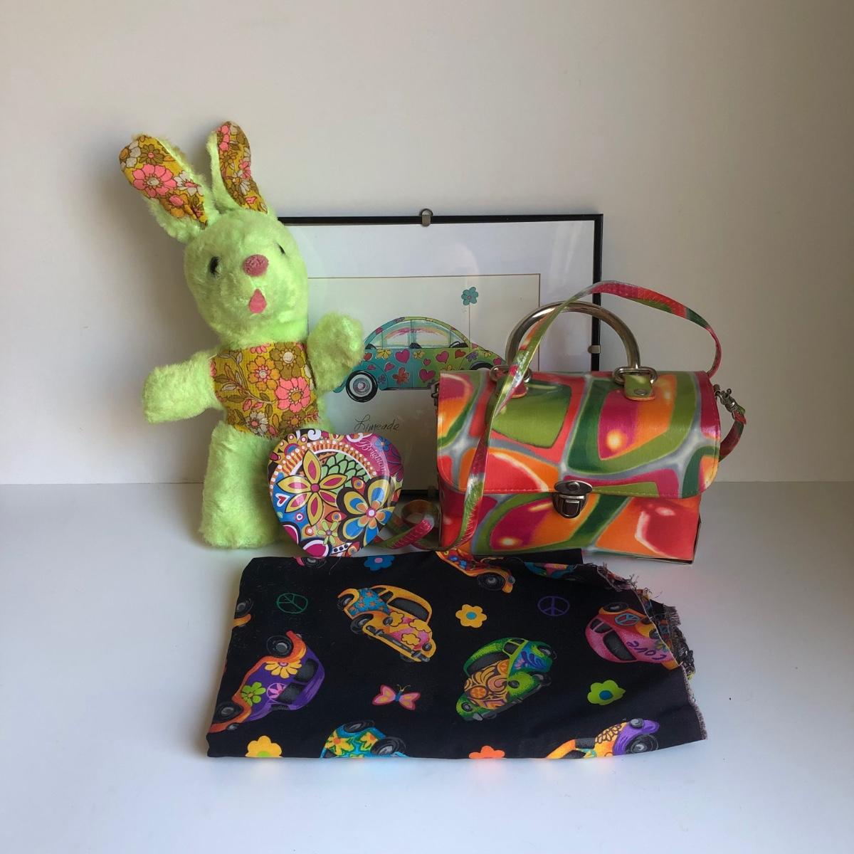 LOT 282L: Groovy Collection - Framed Art Print, Purse, Beetle Patterned Fabric & More