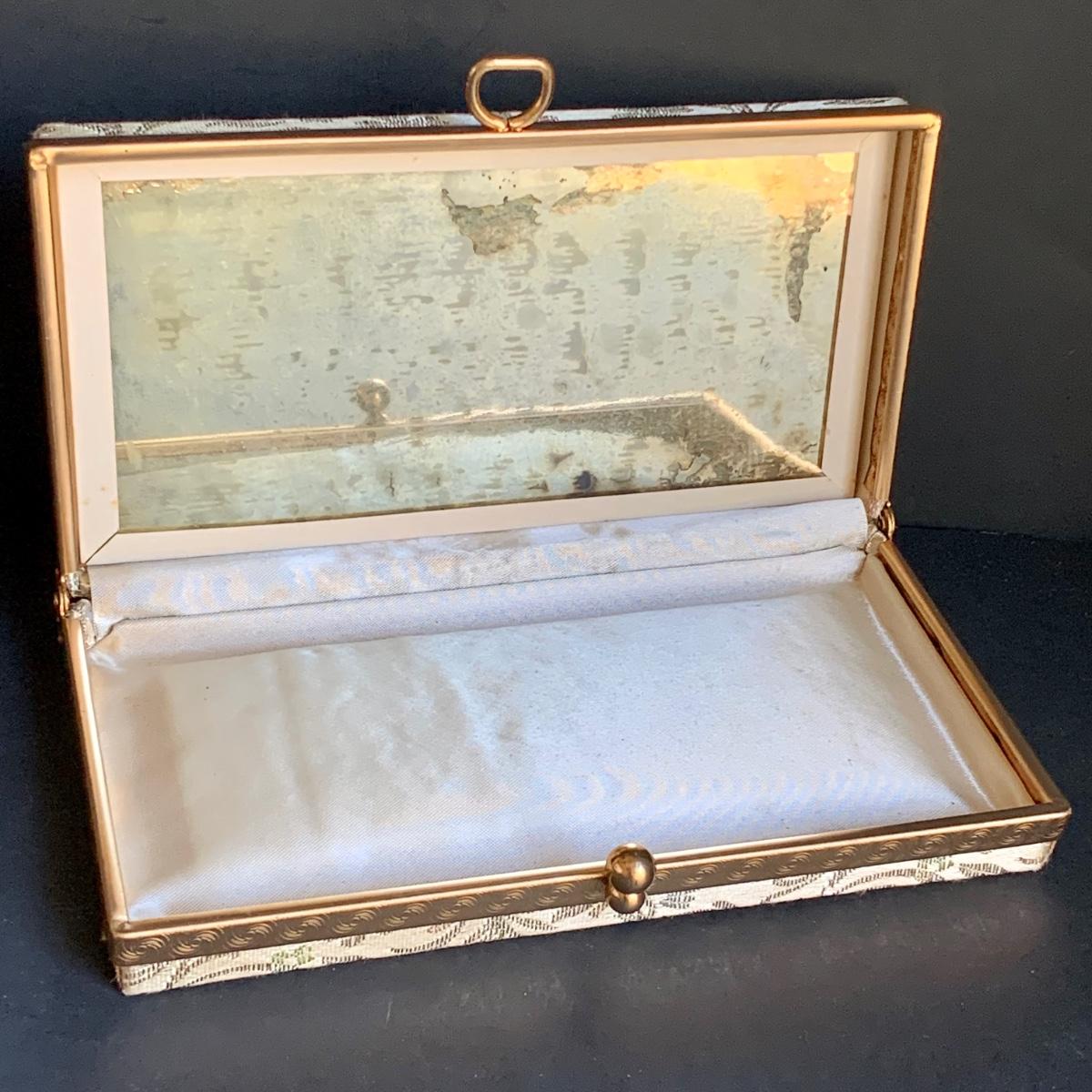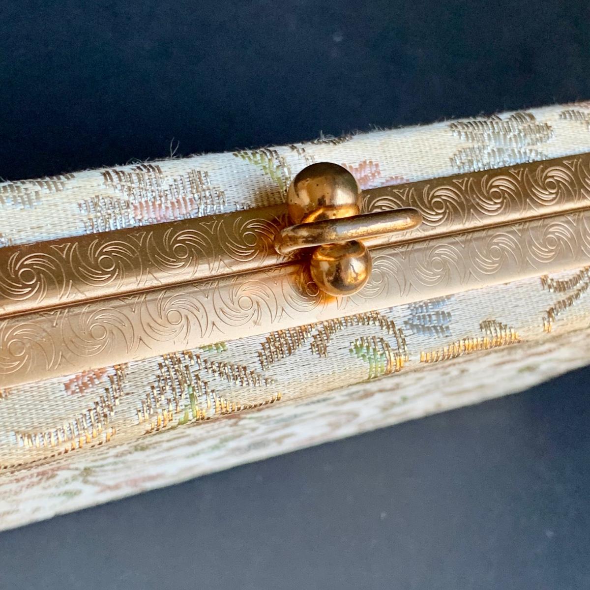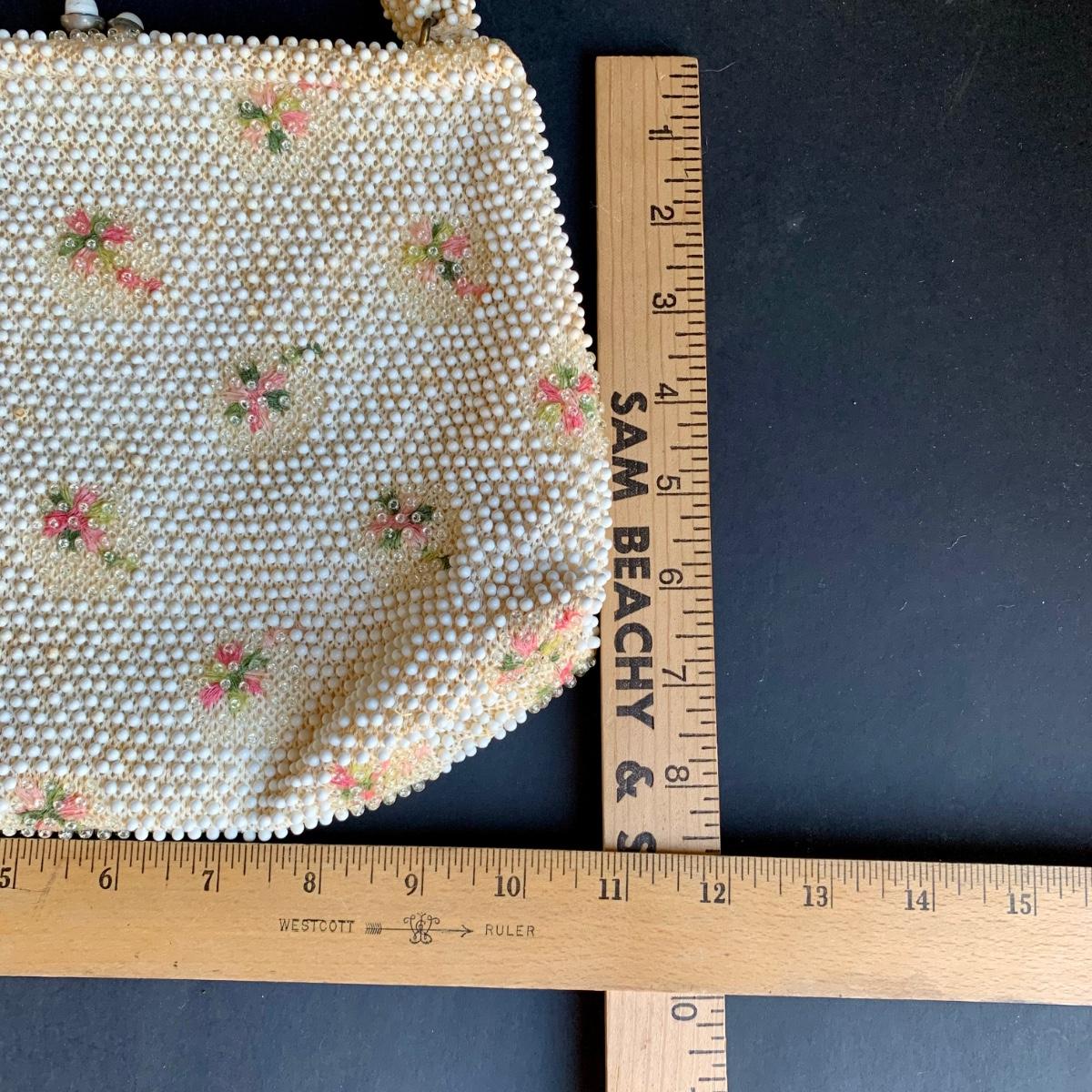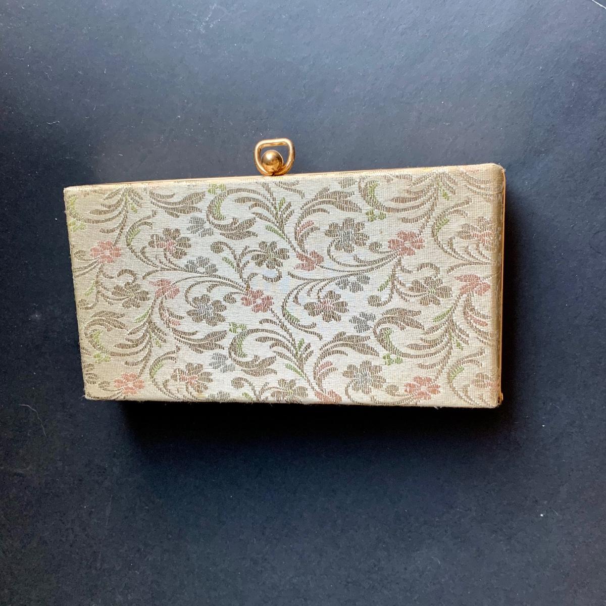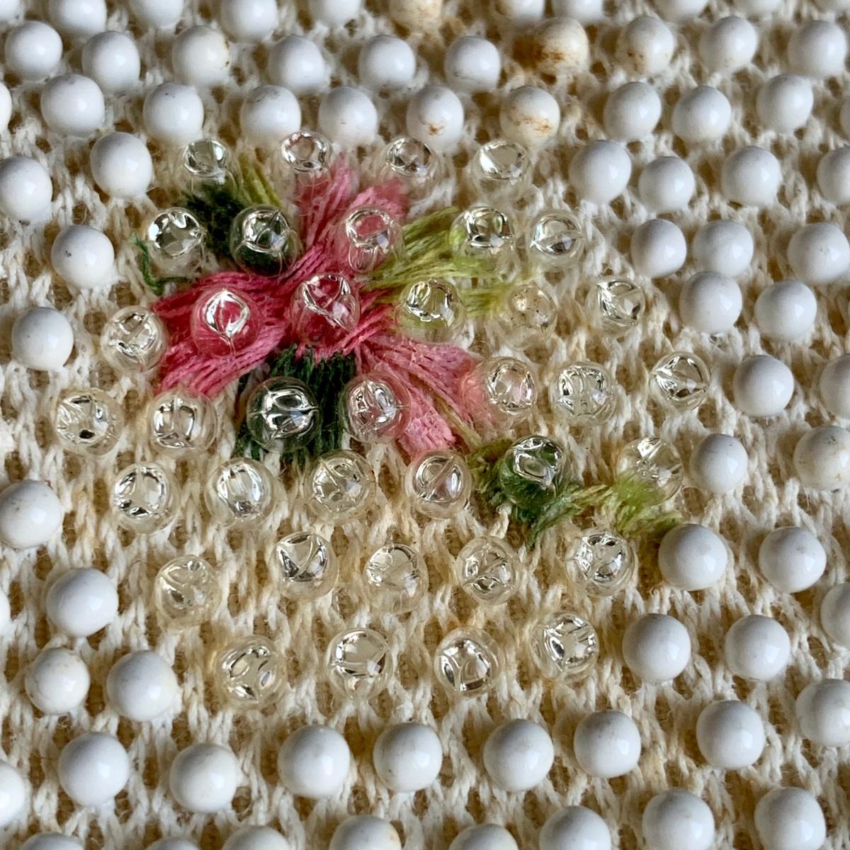 LOT 285 L: Vintage 1950's Lumured Floral Corde-Bead Handbag & Hard Case Clutch W/ Mirror