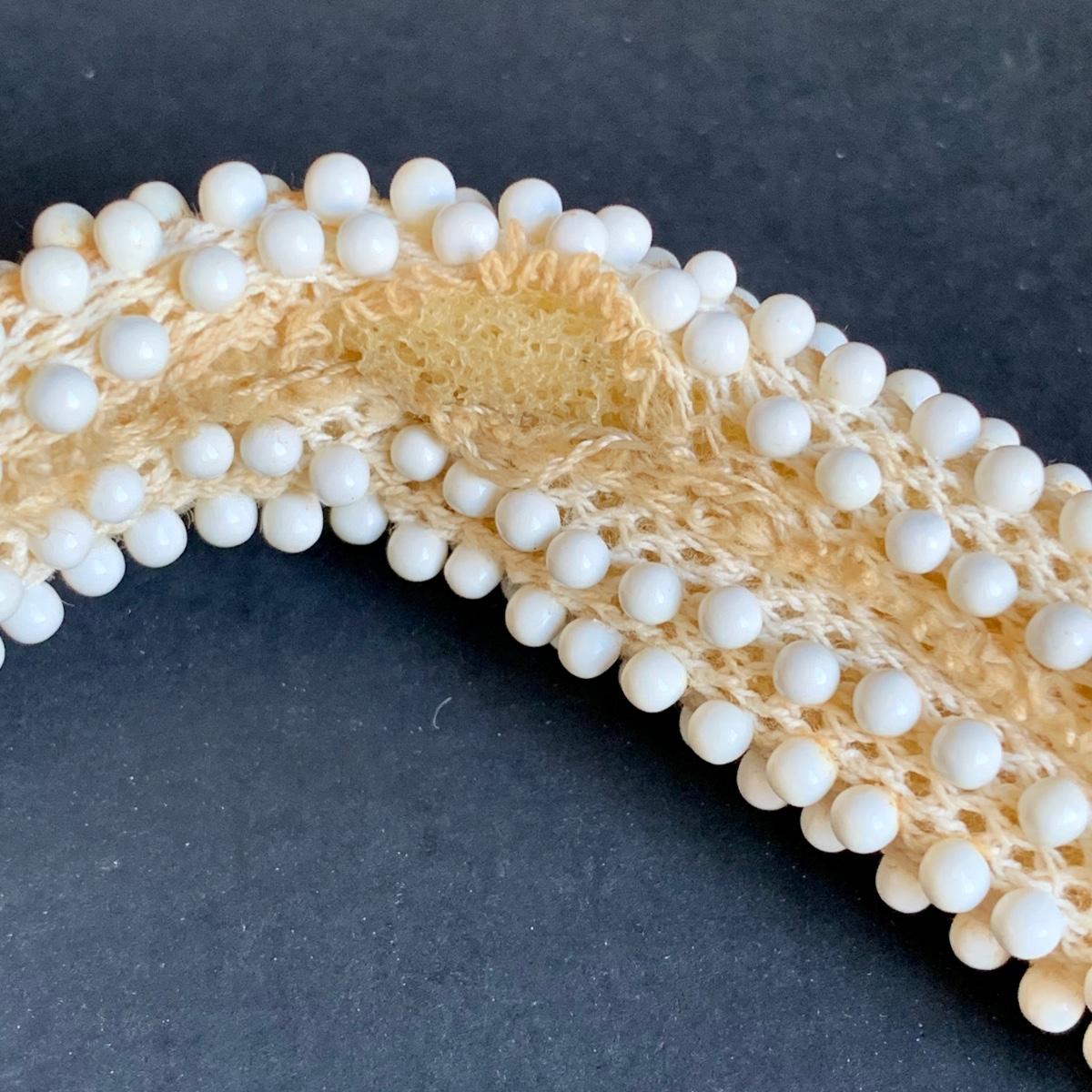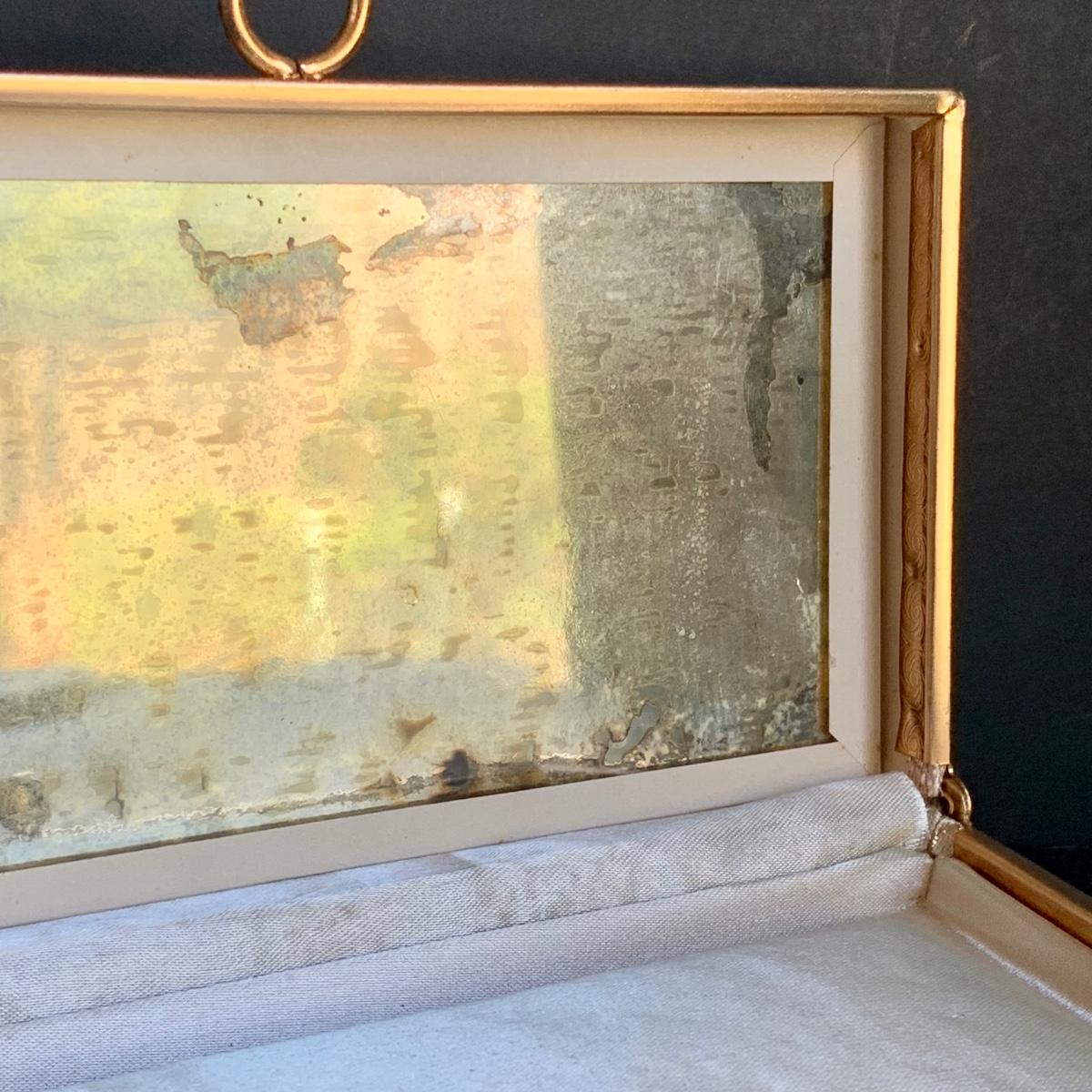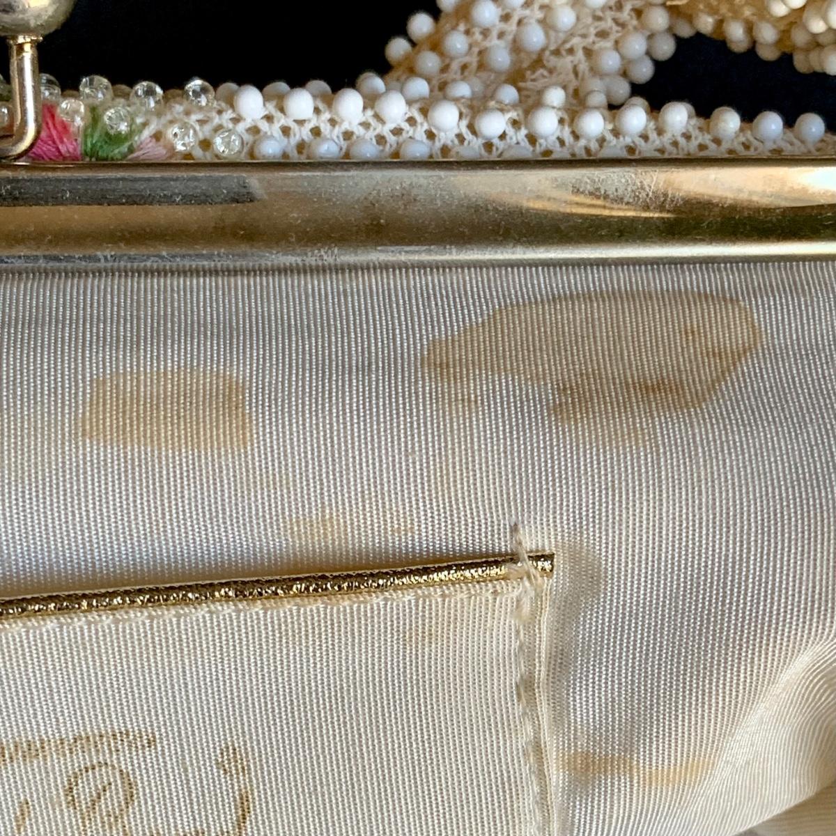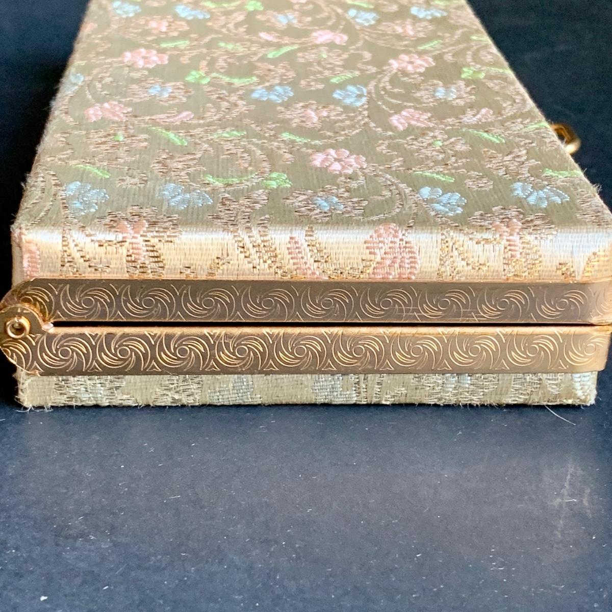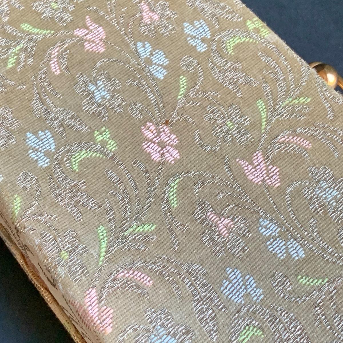 LOT 285 L: Vintage 1950's Lumured Floral Corde-Bead Handbag & Hard Case Clutch W/ Mirror