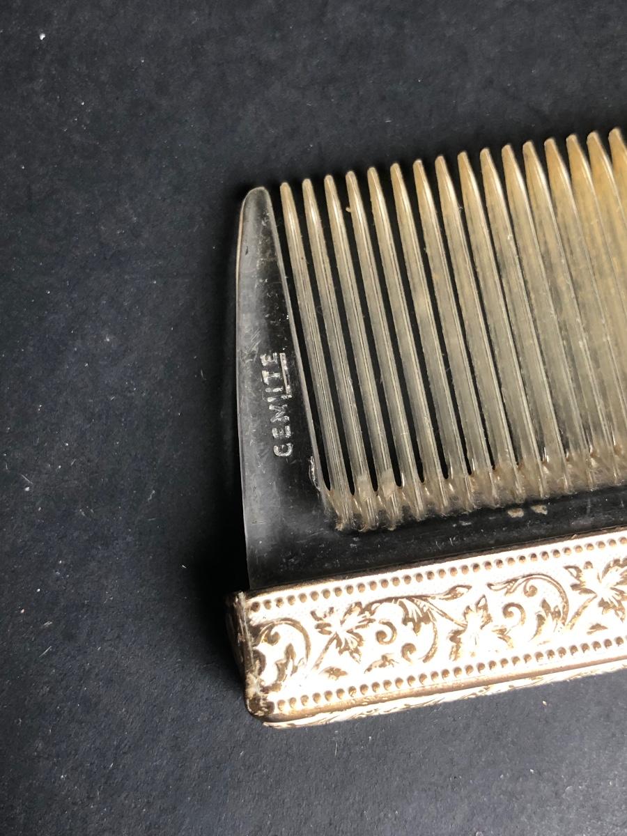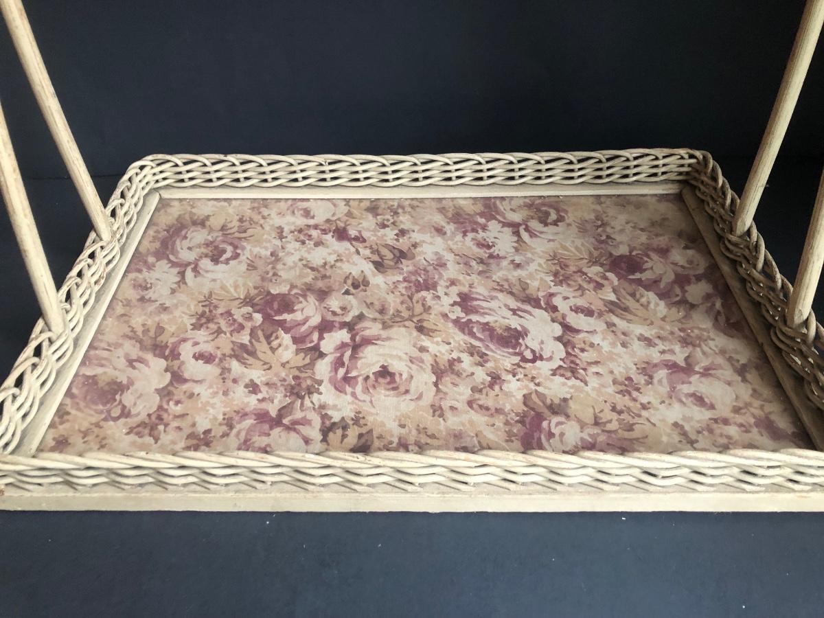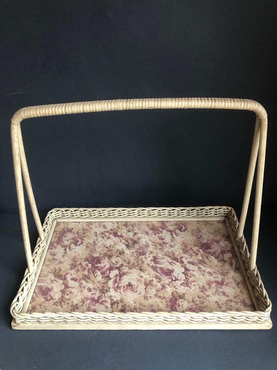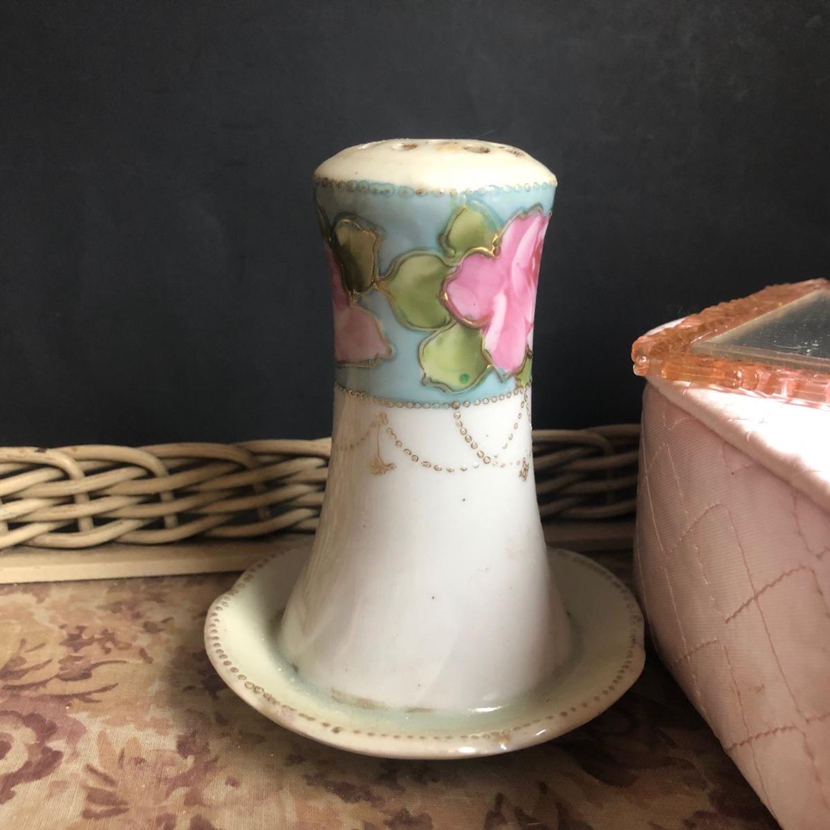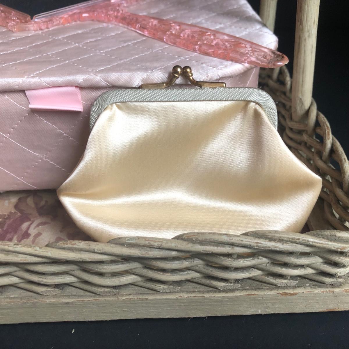 LOT 290L: Vintage Filigree Vanity 3-Piece Set, Satin Box, Floral Vanity Tray w/ Handle & More