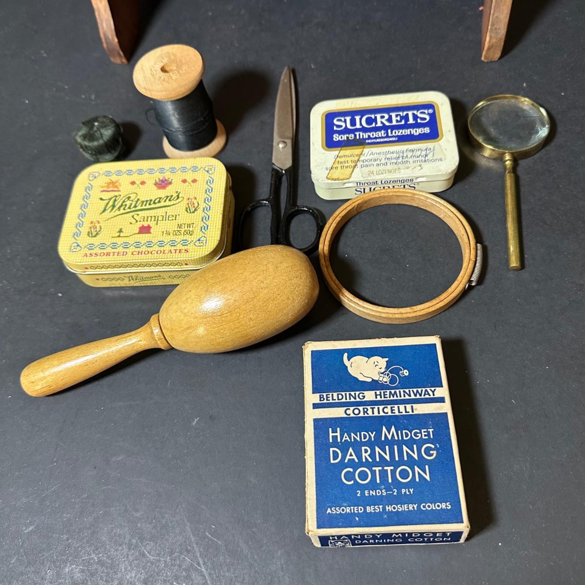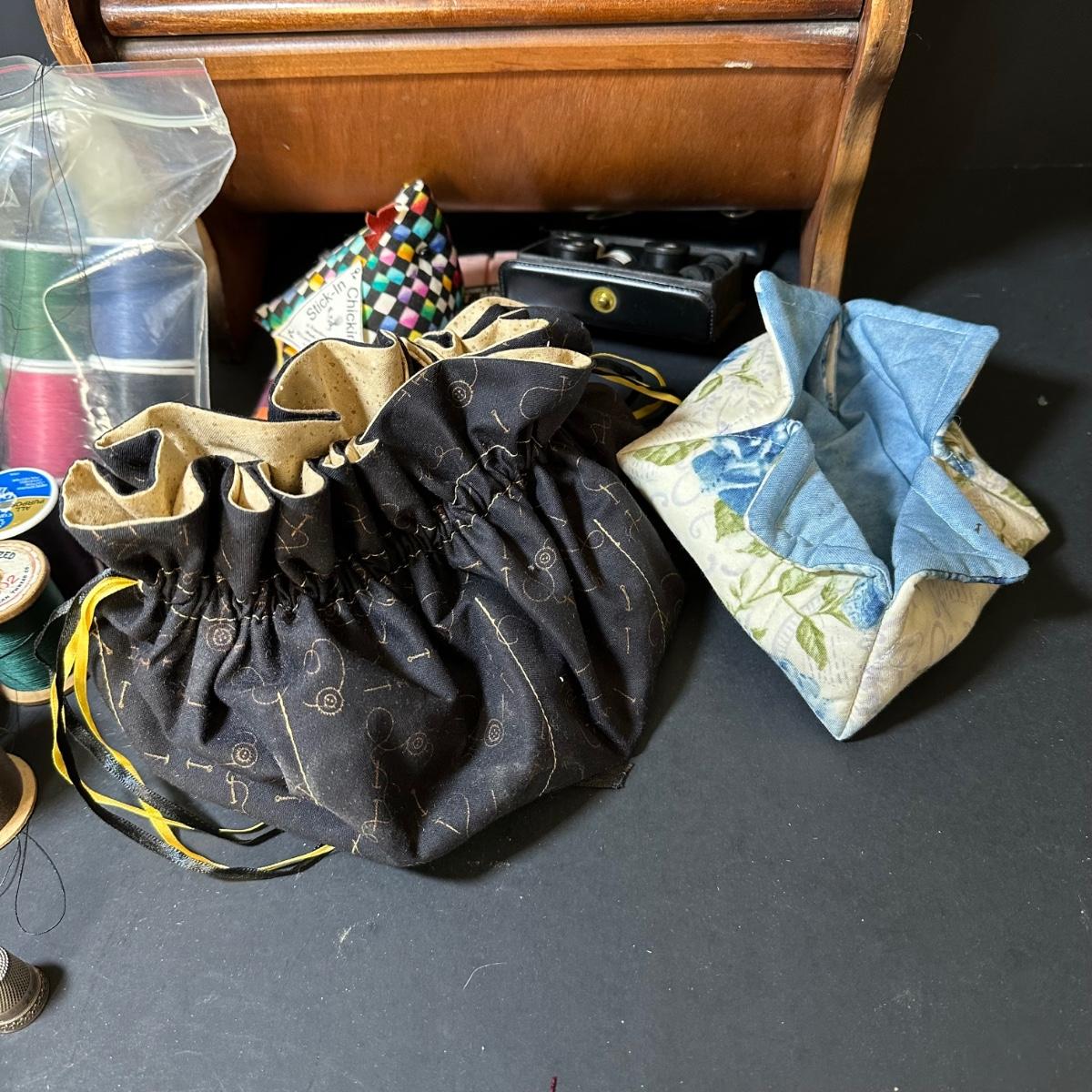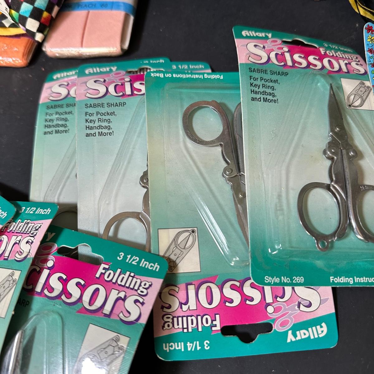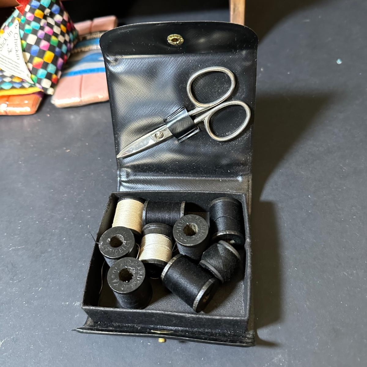 LOT 309S: Sewing Supplies - Thread, Folding Scissors, Sewing Box & More
