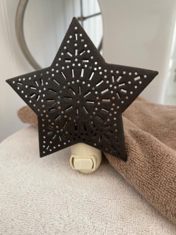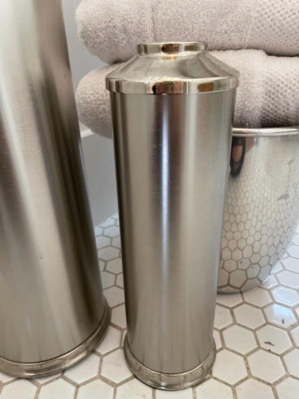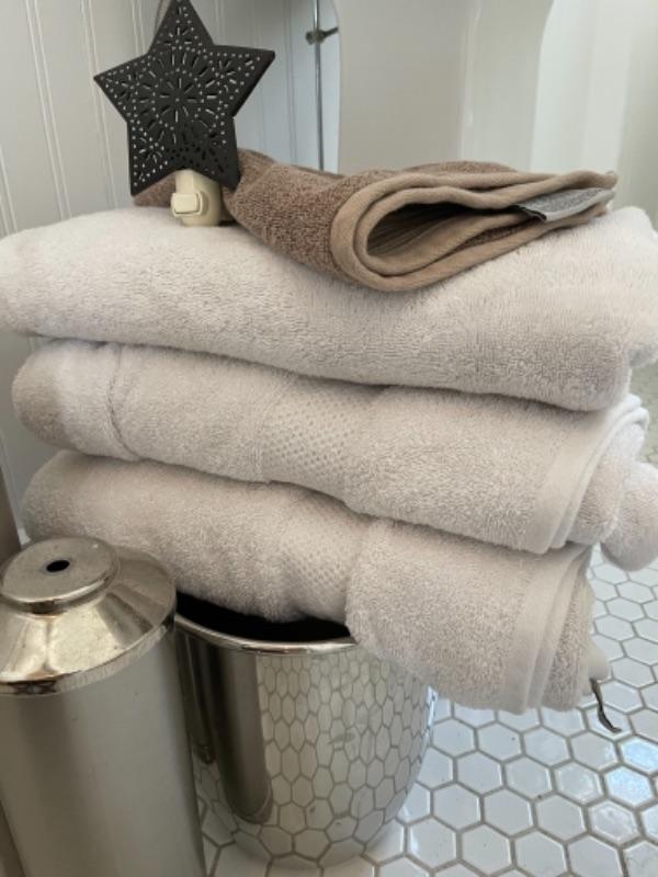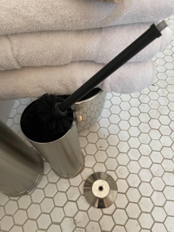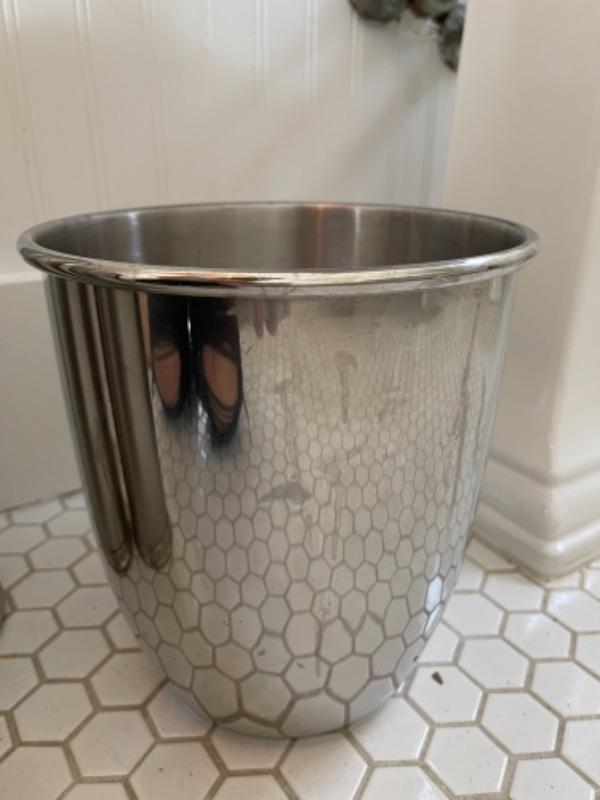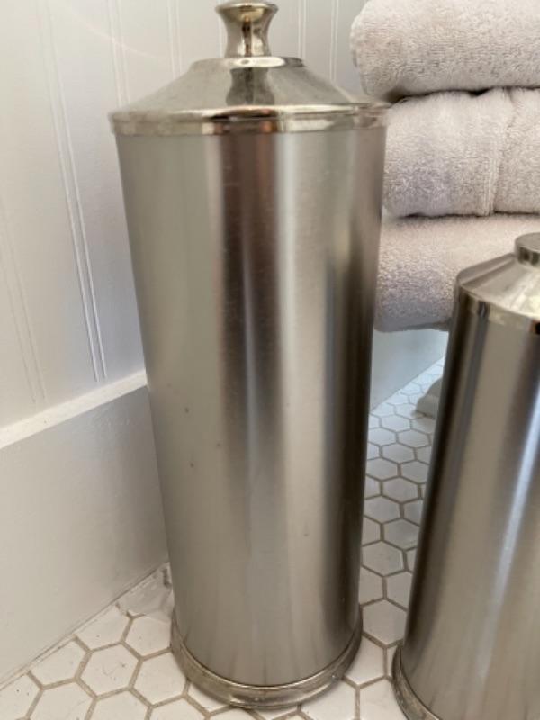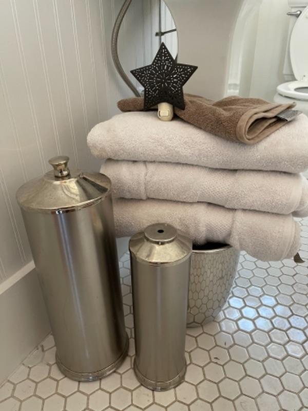 Lot 100B. Trash can, toilet brush holder, night light, towels--$25