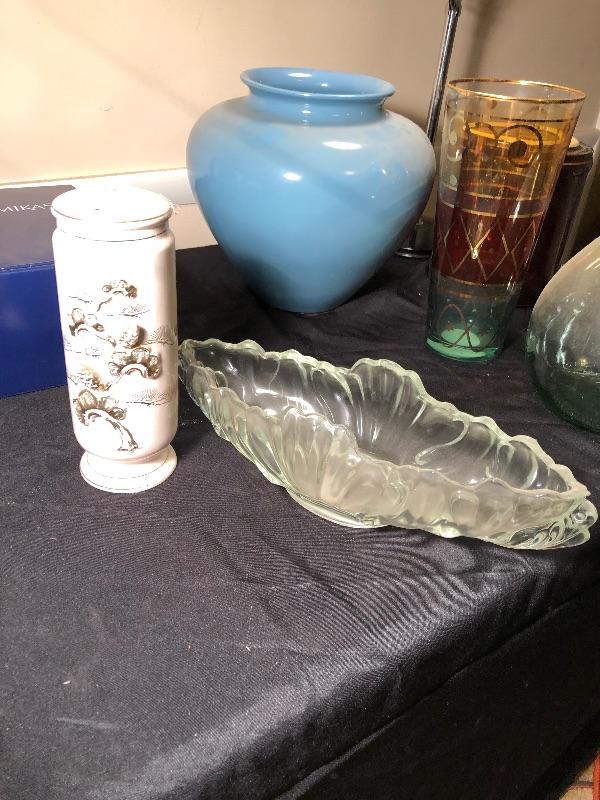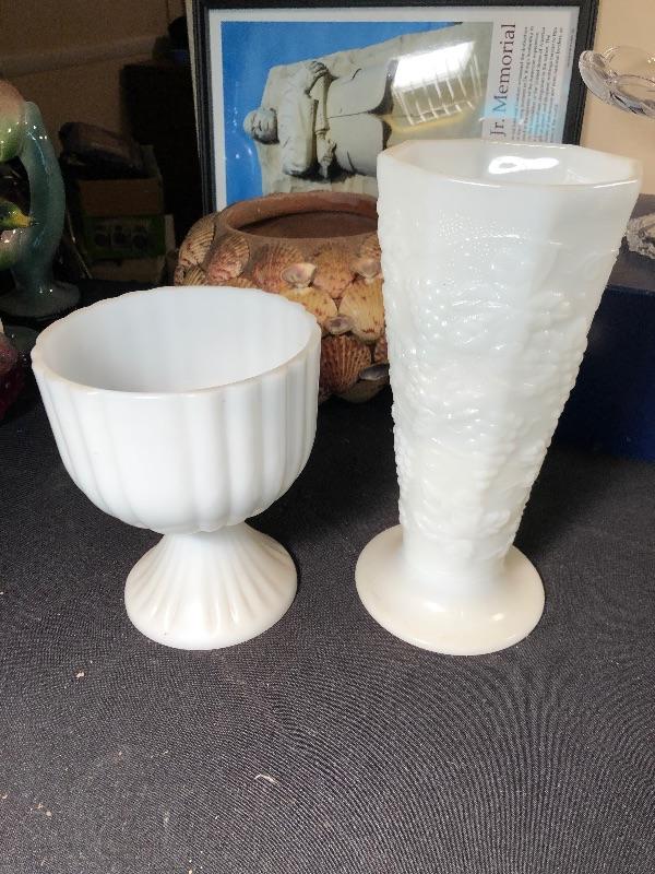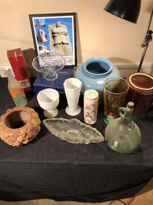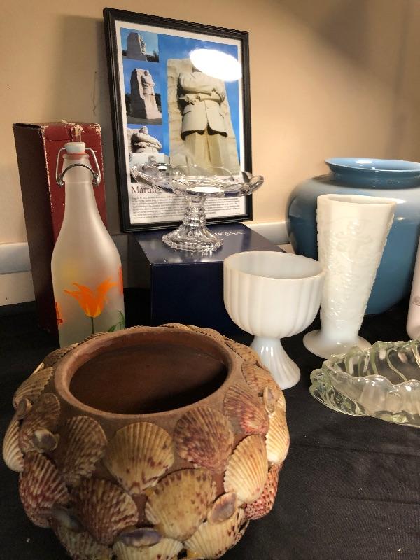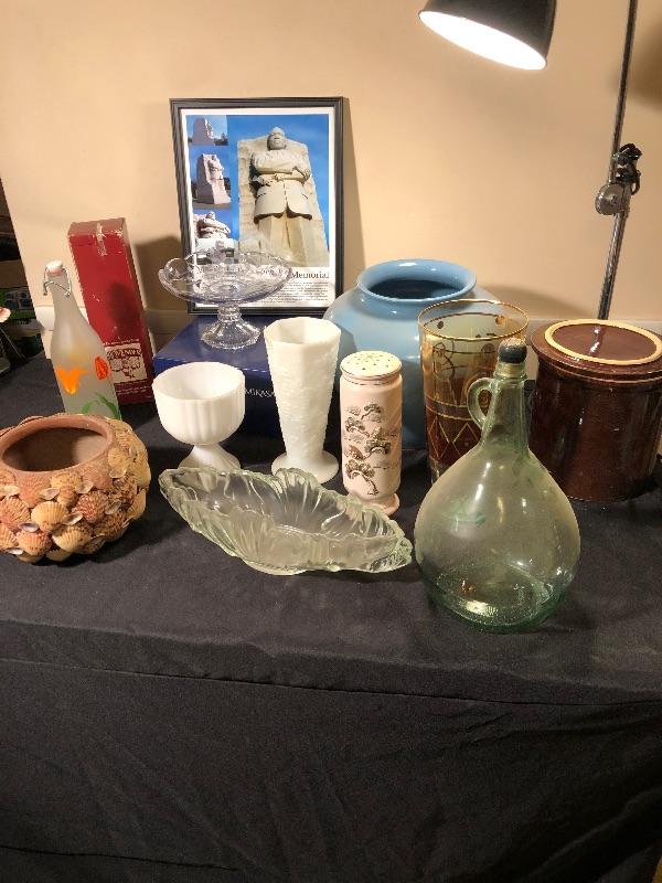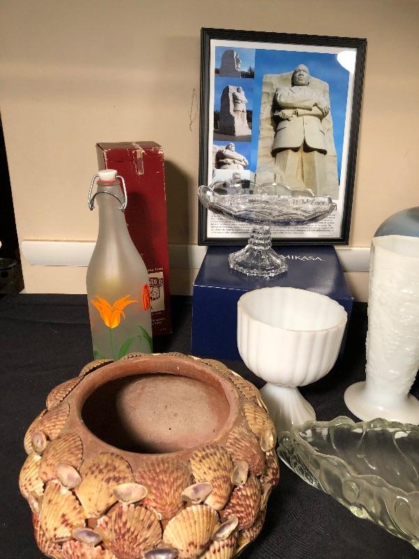 Lot 100 Lot of Vases, Mikasa bowl with Box, MLK Wall Art, Shell Planter, Milk Glass, etc