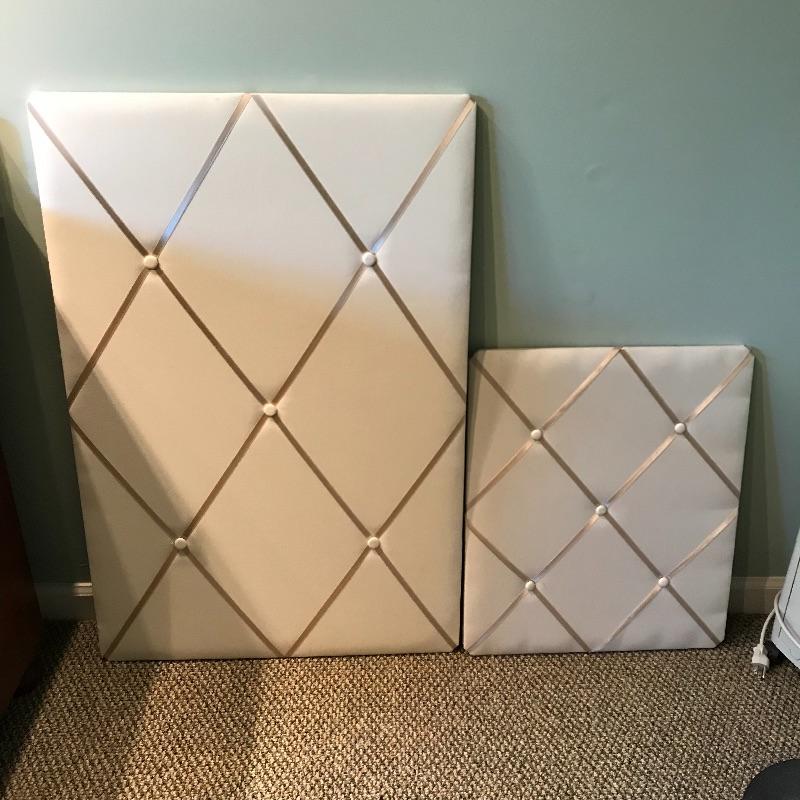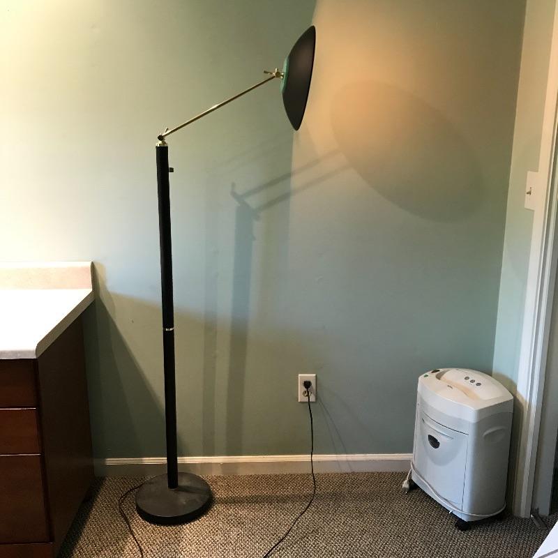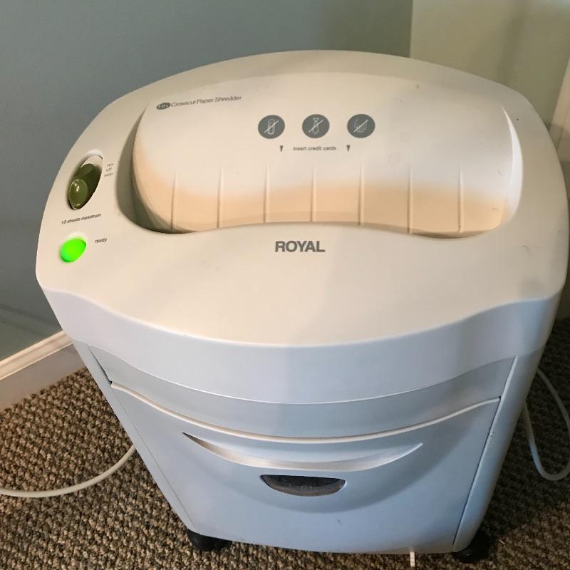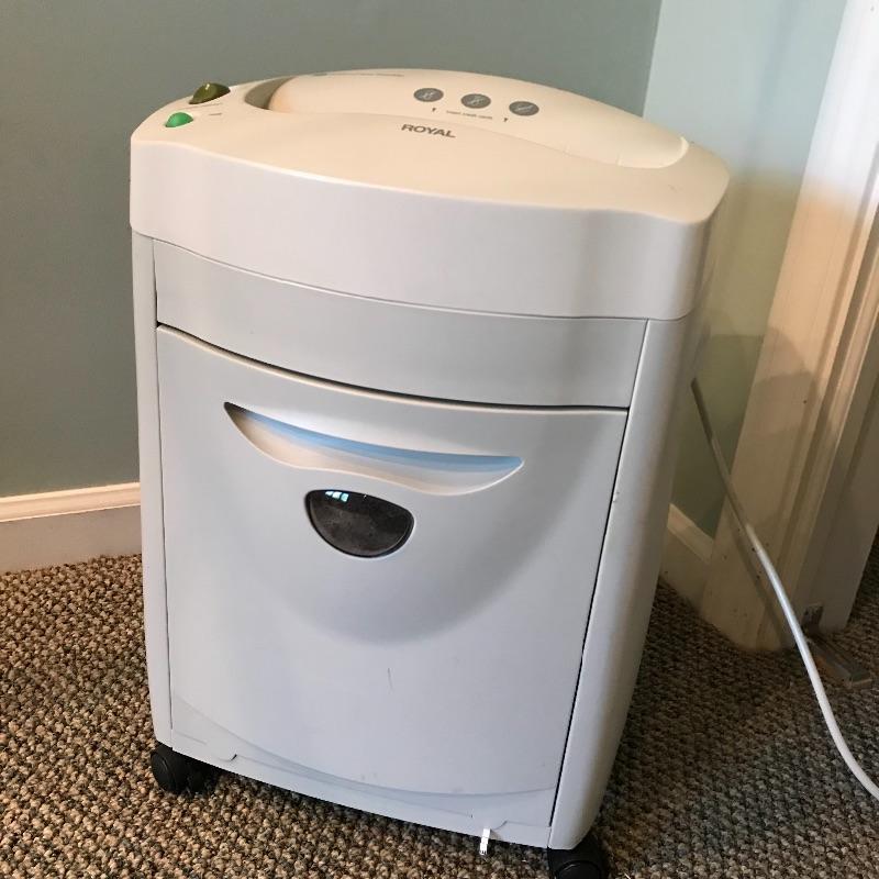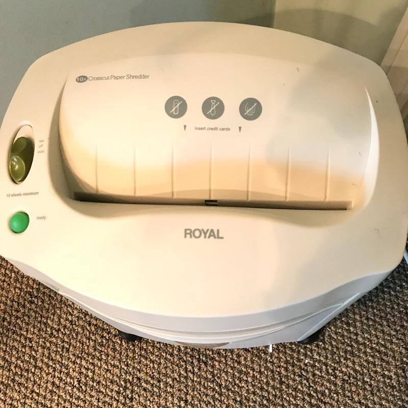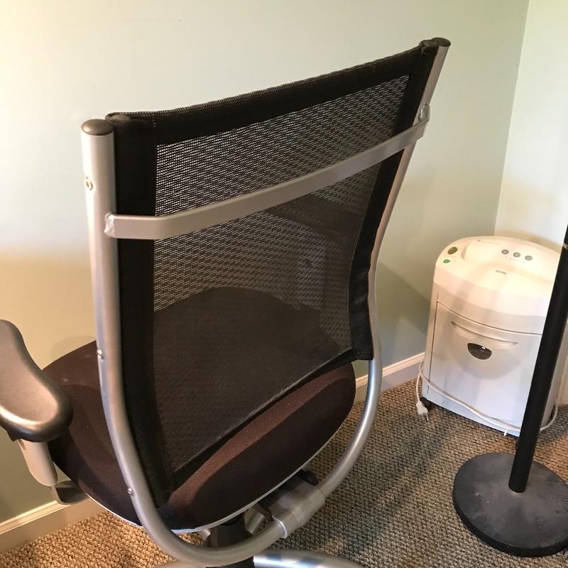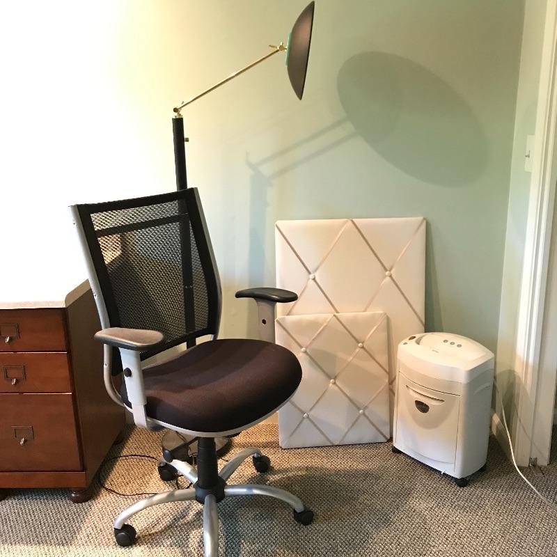 Add some loving details to your work space! Beautiful cloth pin boards ready to be hung measuring 18” x 21.5” and 24” x 36”. Lot contains a black floor lamp with dimming capabilities, gold and jade colored accents and an adjusting lamp. A Royal paper and card shredder turns on when prompted and lastly and adjustable ergonomic black and silver office chair. Wheels roll smoothly and even the arms’ height is adjustable. See photos. No shipping.