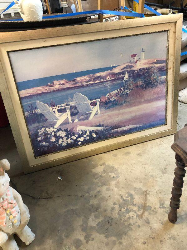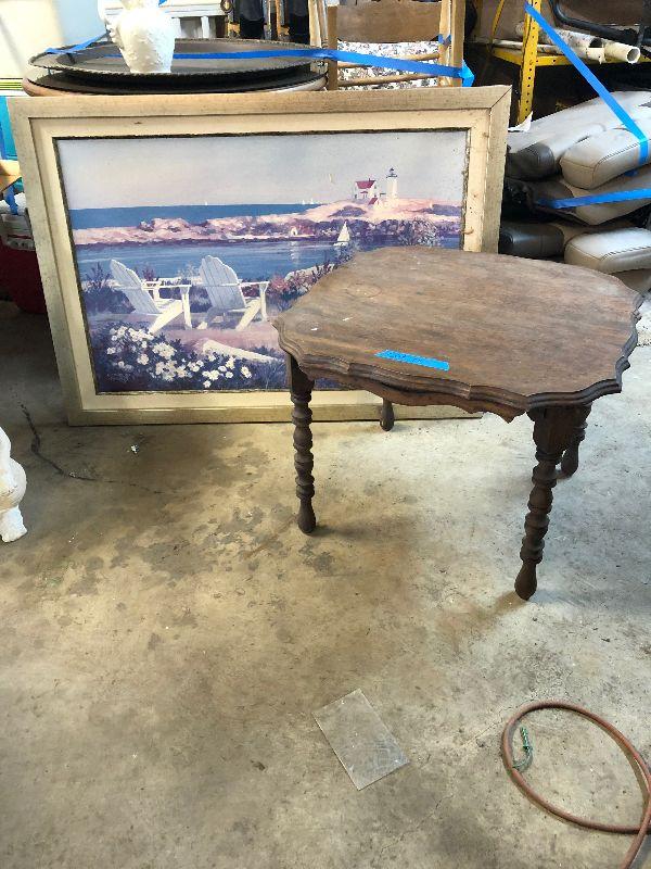 Side table (24" x 24" x 18"), large picture (43" - 30"),