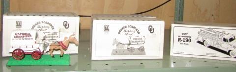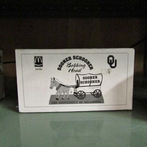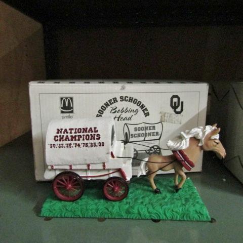 2 NIB SOONER SCHOONER BOBBING HEAD UNIV OF OKLAHOMA COVERED WAGON AND HORSE NATIONAL CHAMPIONS