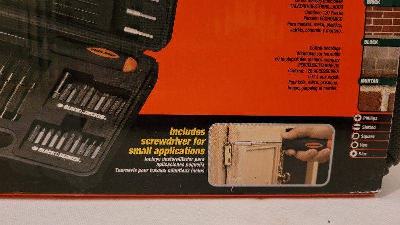 Lot 101: NEW Black and Decker 120 piece Home Project Kit