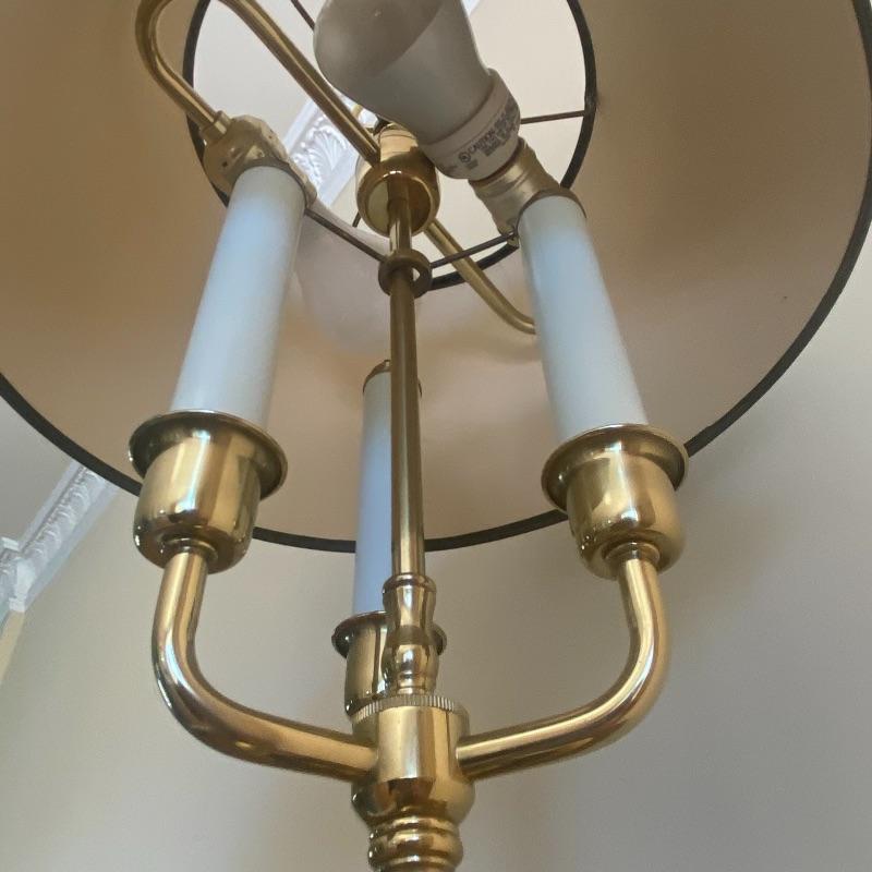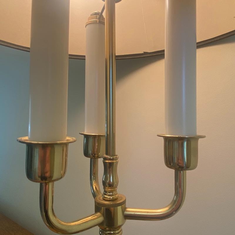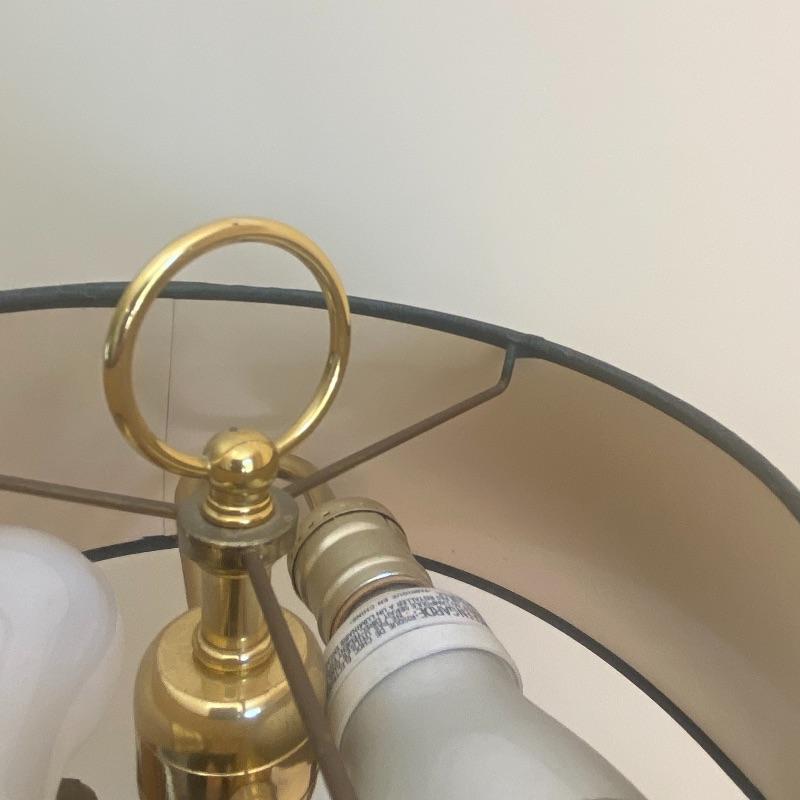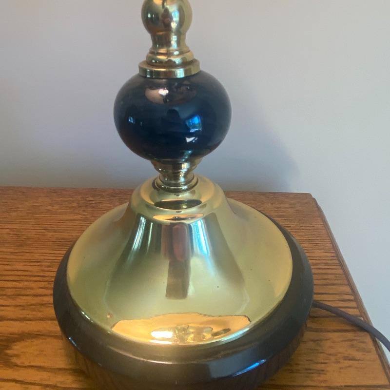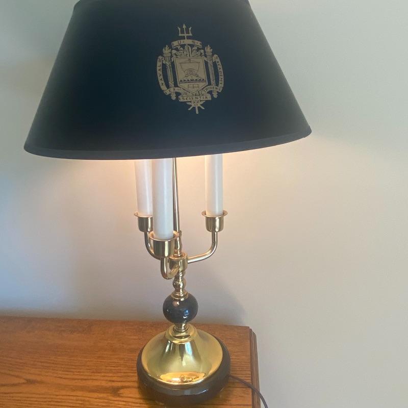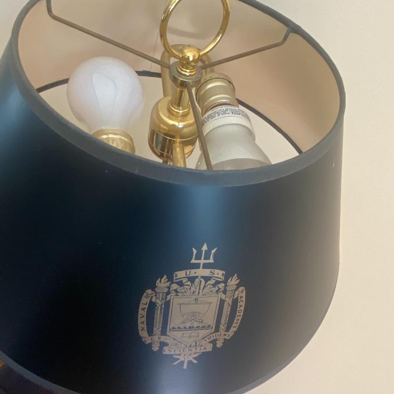 Black and gold tri-candle bulb lamp. Nice and heavy and works well. The black shade has a gold colored detail saying “U.S. Naval Academy Ex Tridens Scientia”. Stands approximately 21” tall. See photos. Local pickup only!