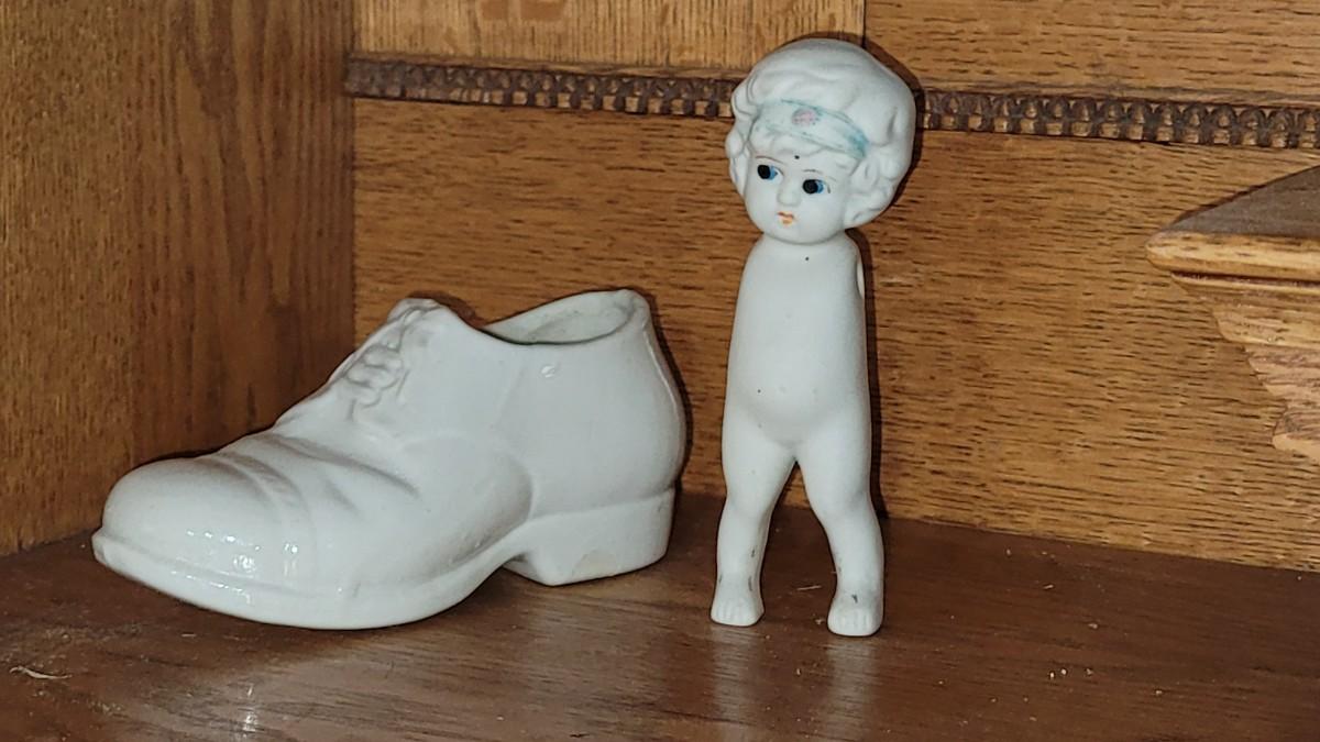 Lot 101: Antique Porcelain Doll Body & White Shoe