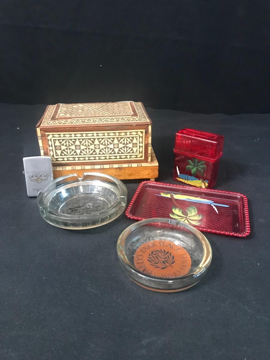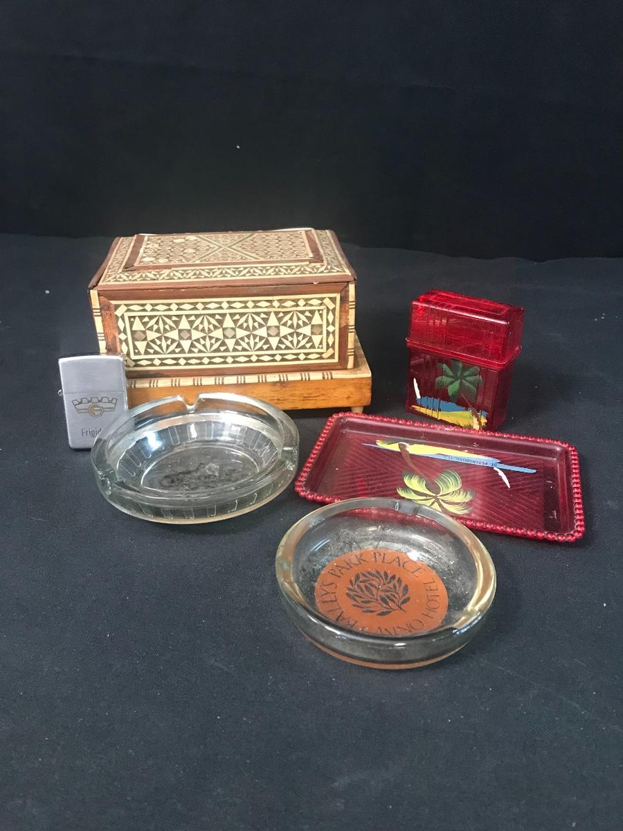Lot 101: Desktop Cigarette Case, Zippo, Ash Trays & More