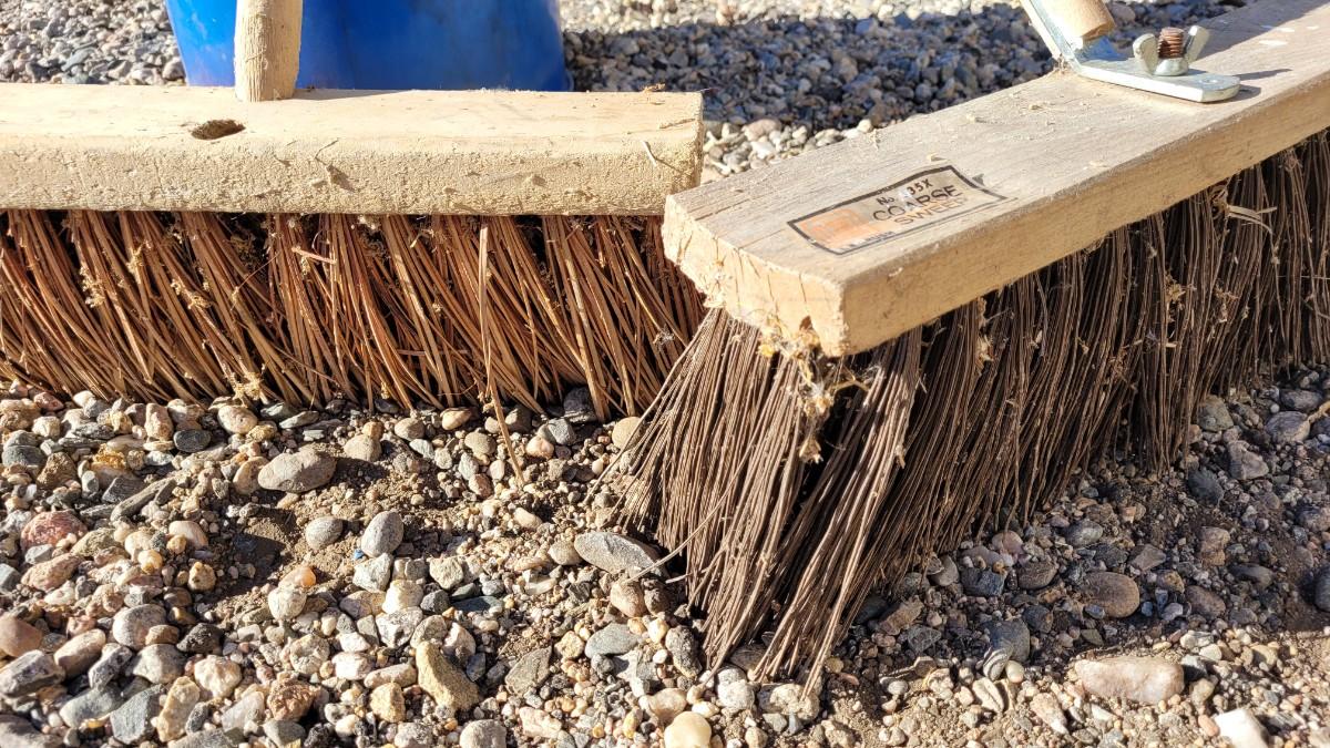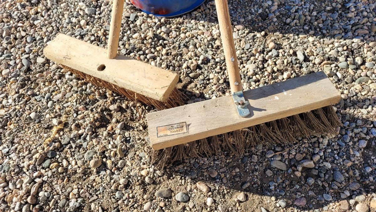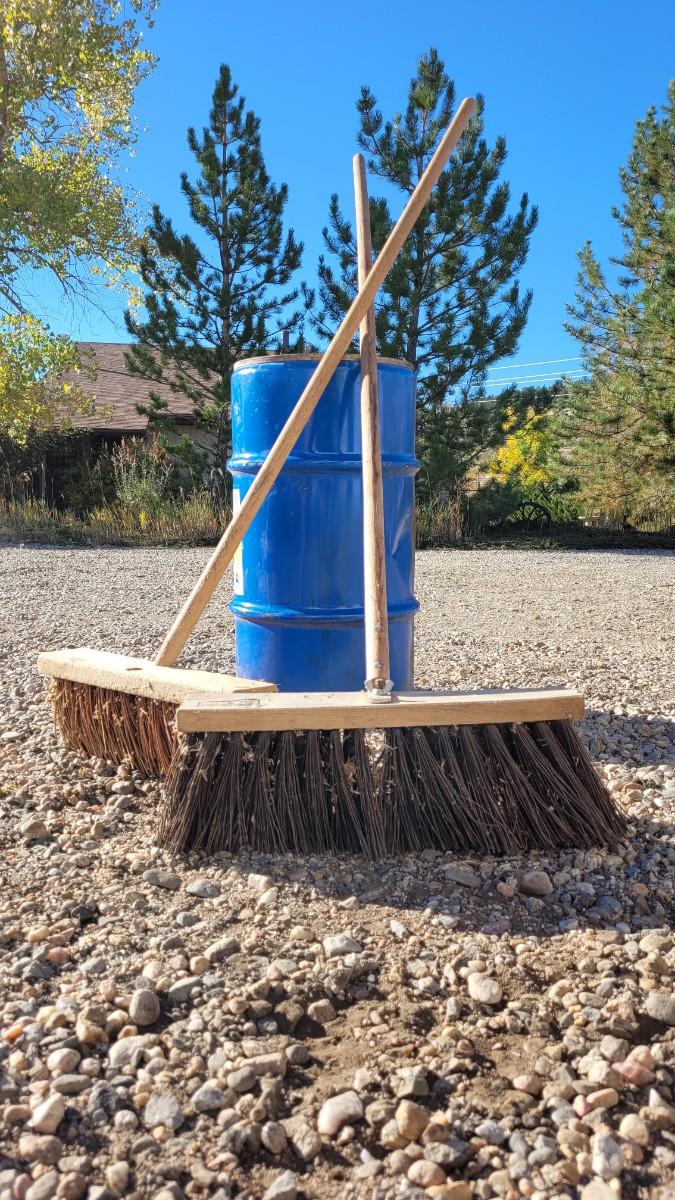 Lot 101: (2) Vintage Farmhouse Tall Bristle Floor brooms Witch Halloween Deco