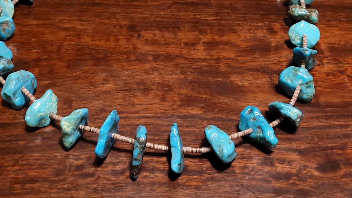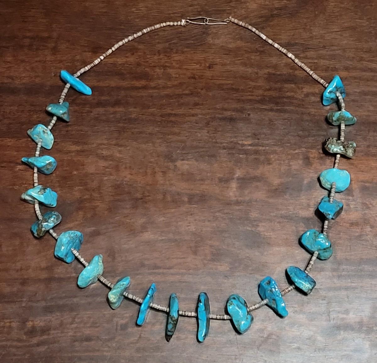 Lot 101: Beautiful Santo Domingo Kewa Pueblo Royston Turquoise and Shell Heishi Bead Necklace