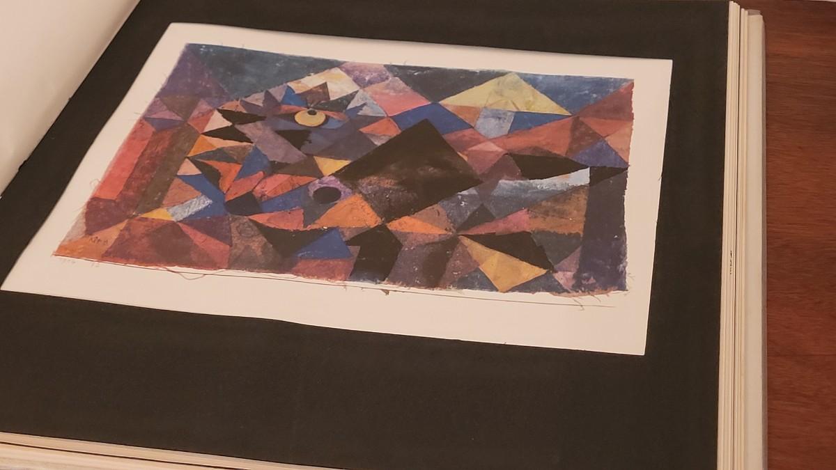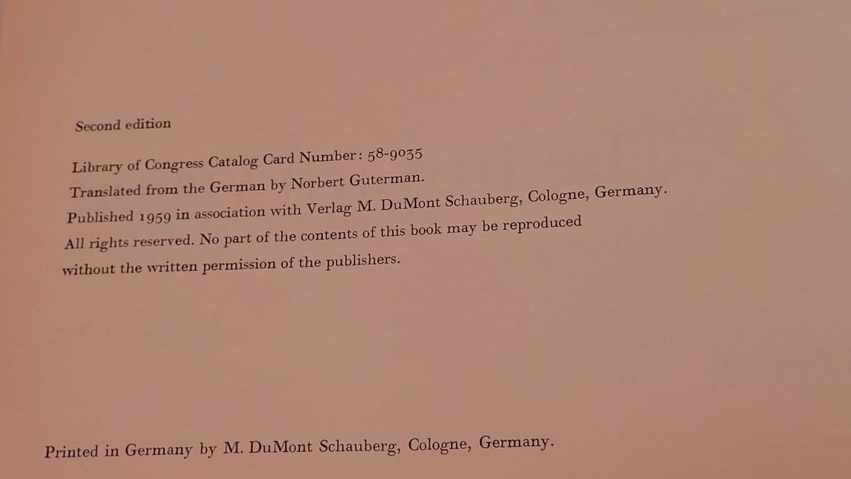 Writings and prints of Klee's watercolors and drawing works, this book includes detachable reproductions which can be removed and hung separately with two paper frames at back of book. 29 pages of text, 30 pages of color plates and some b+w illustrations. Interior pages and matting is complete.