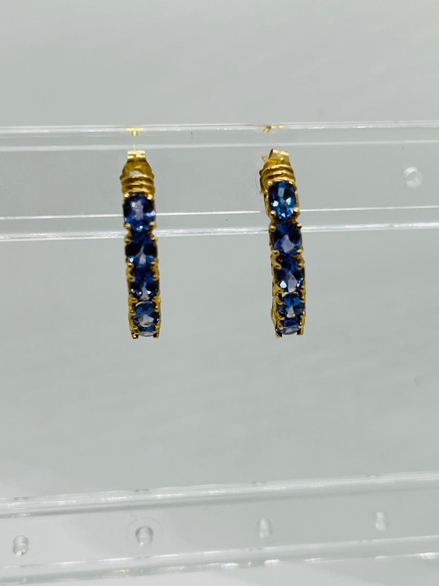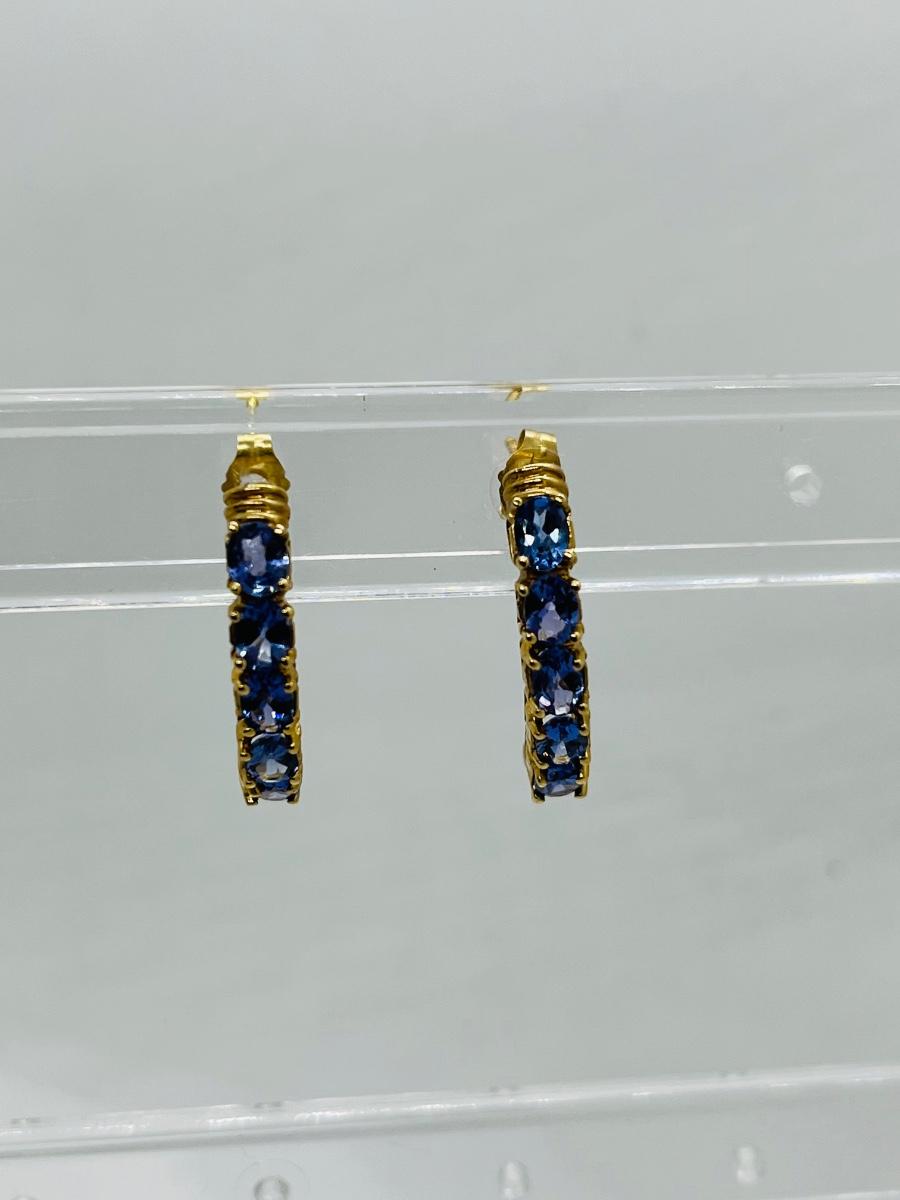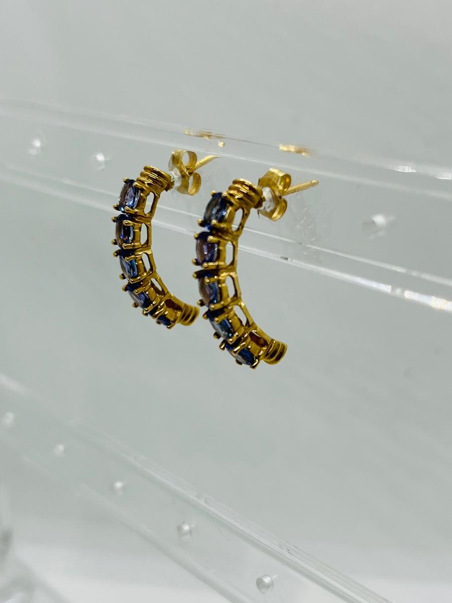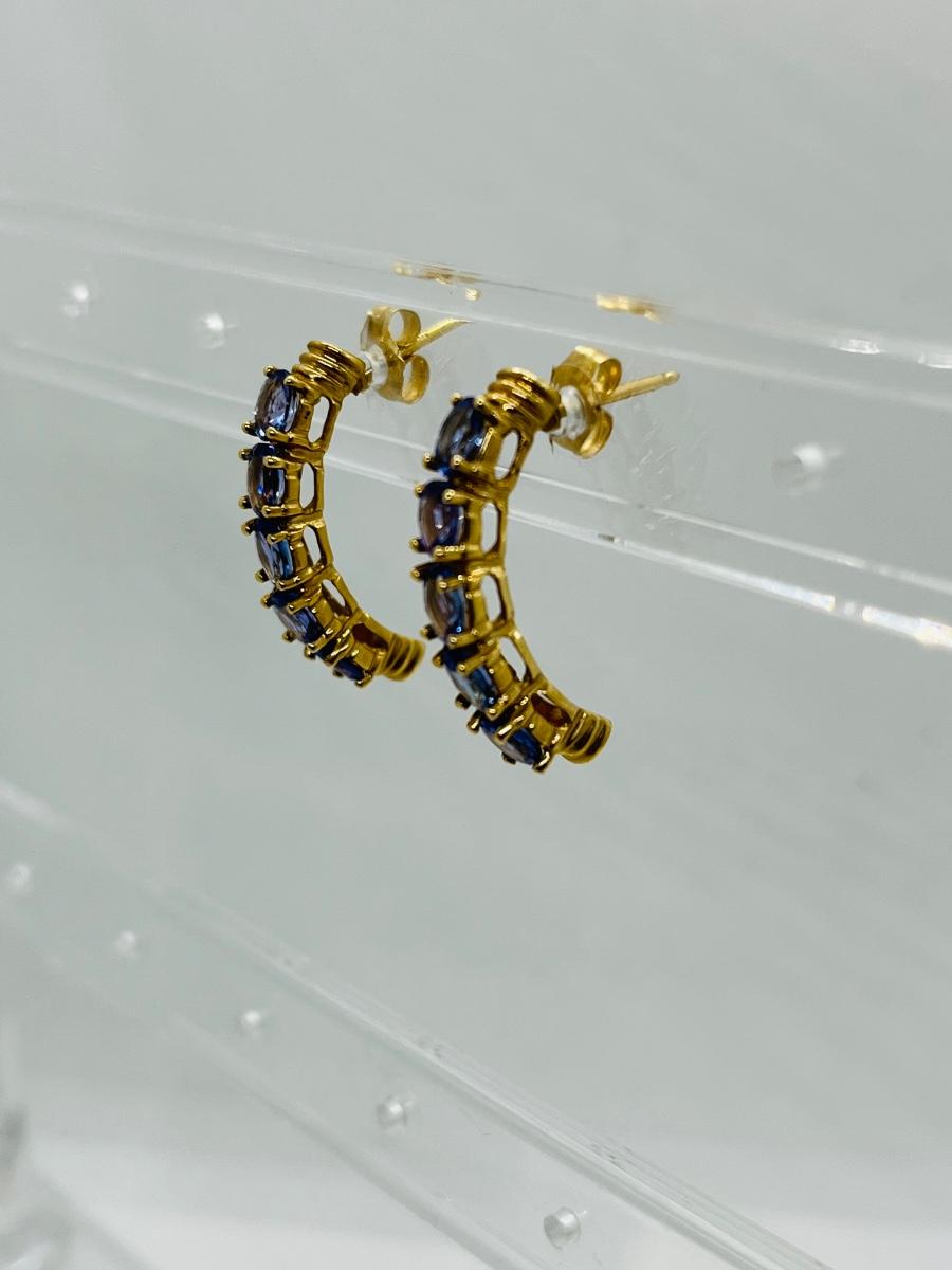 Lot 101: 14k half hoop tanzanite pierced earrings