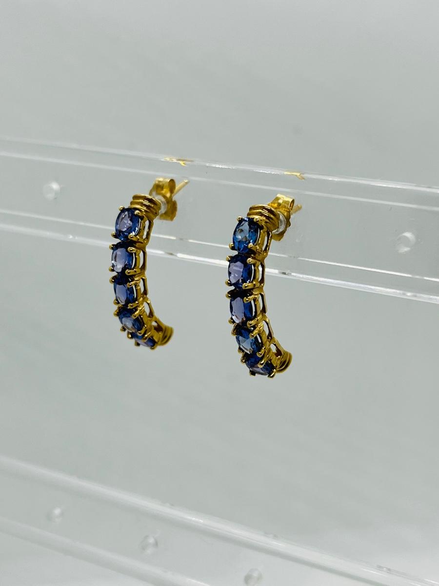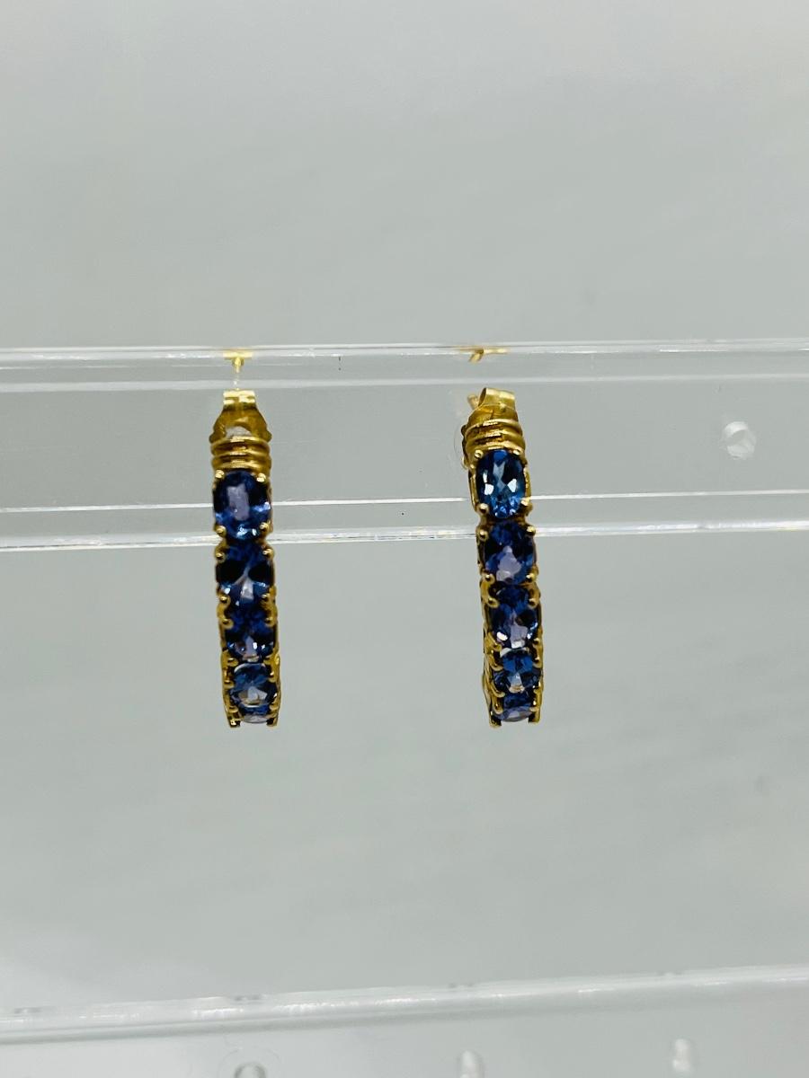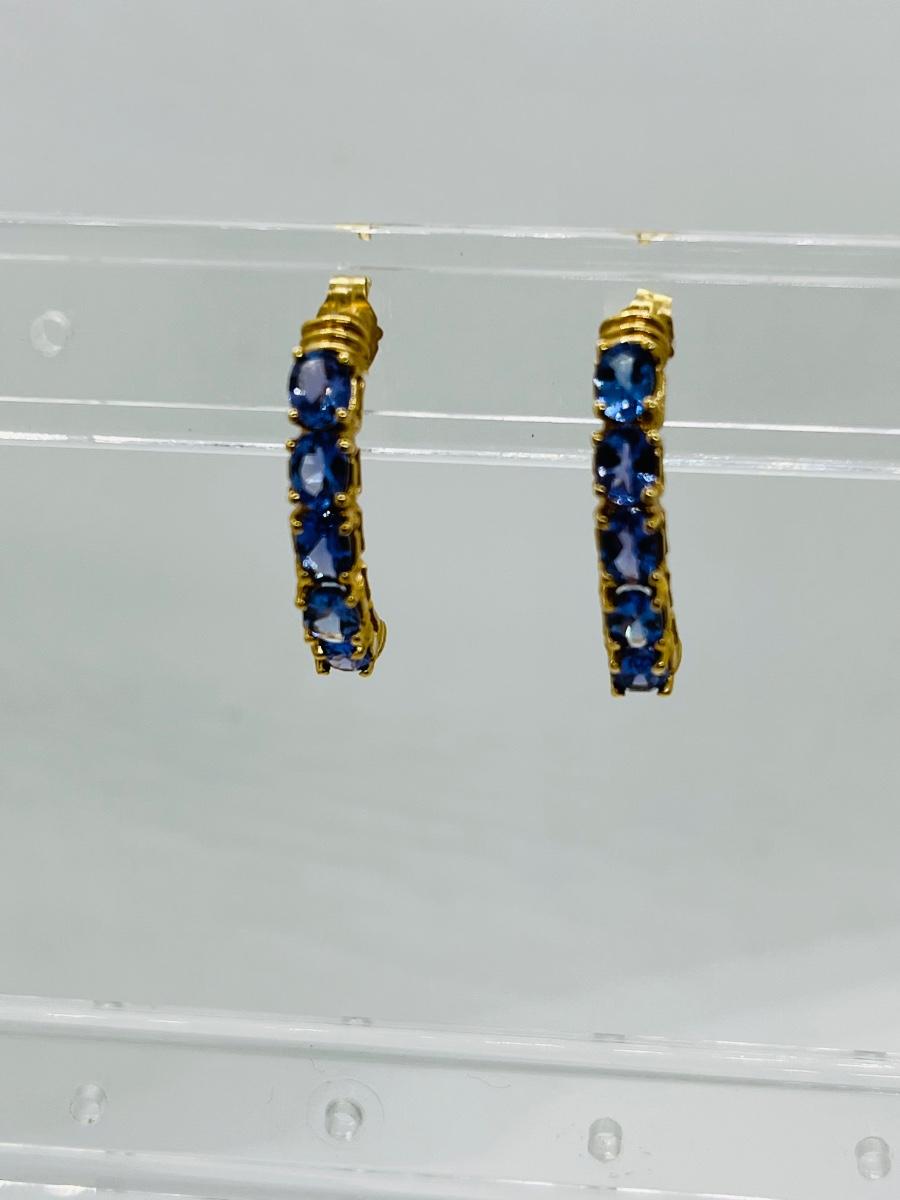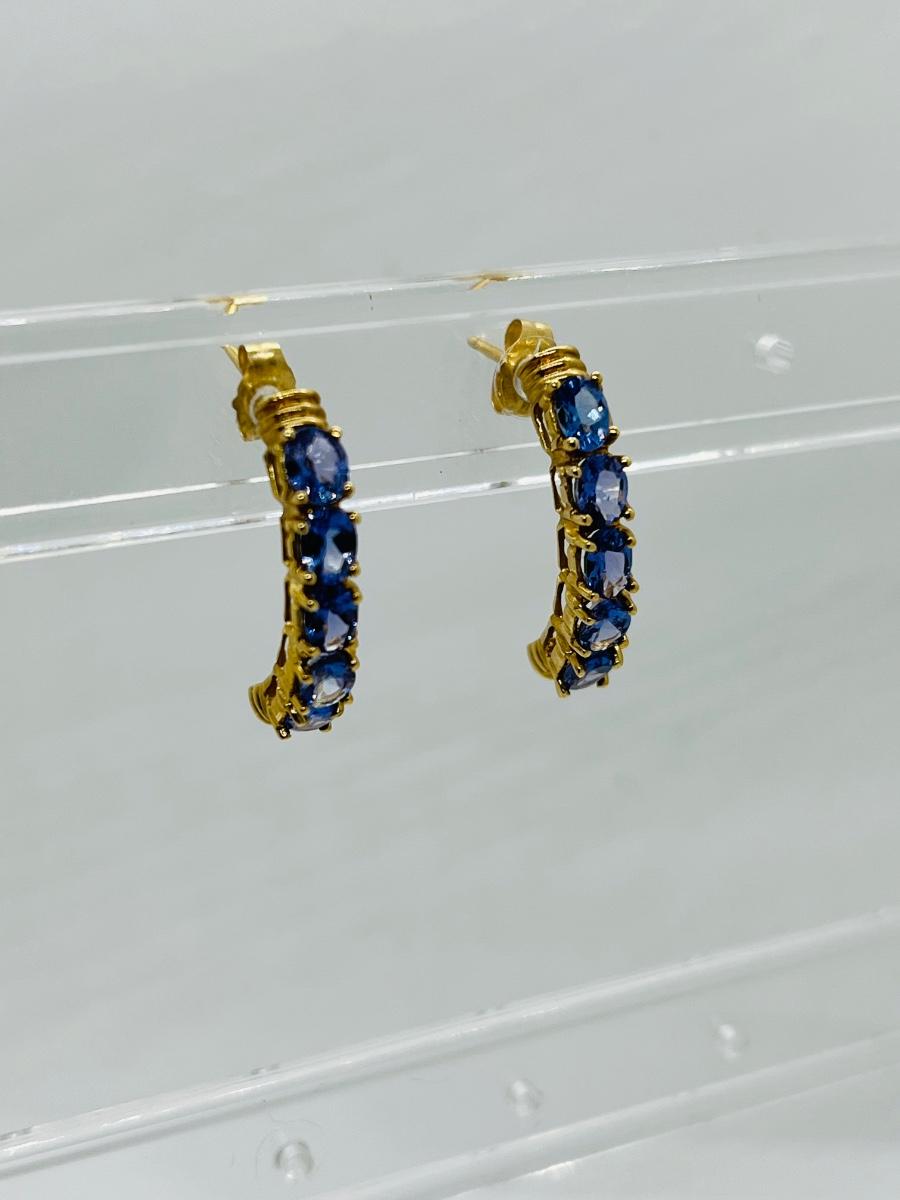 Lot 101: 14k half hoop tanzanite pierced earrings