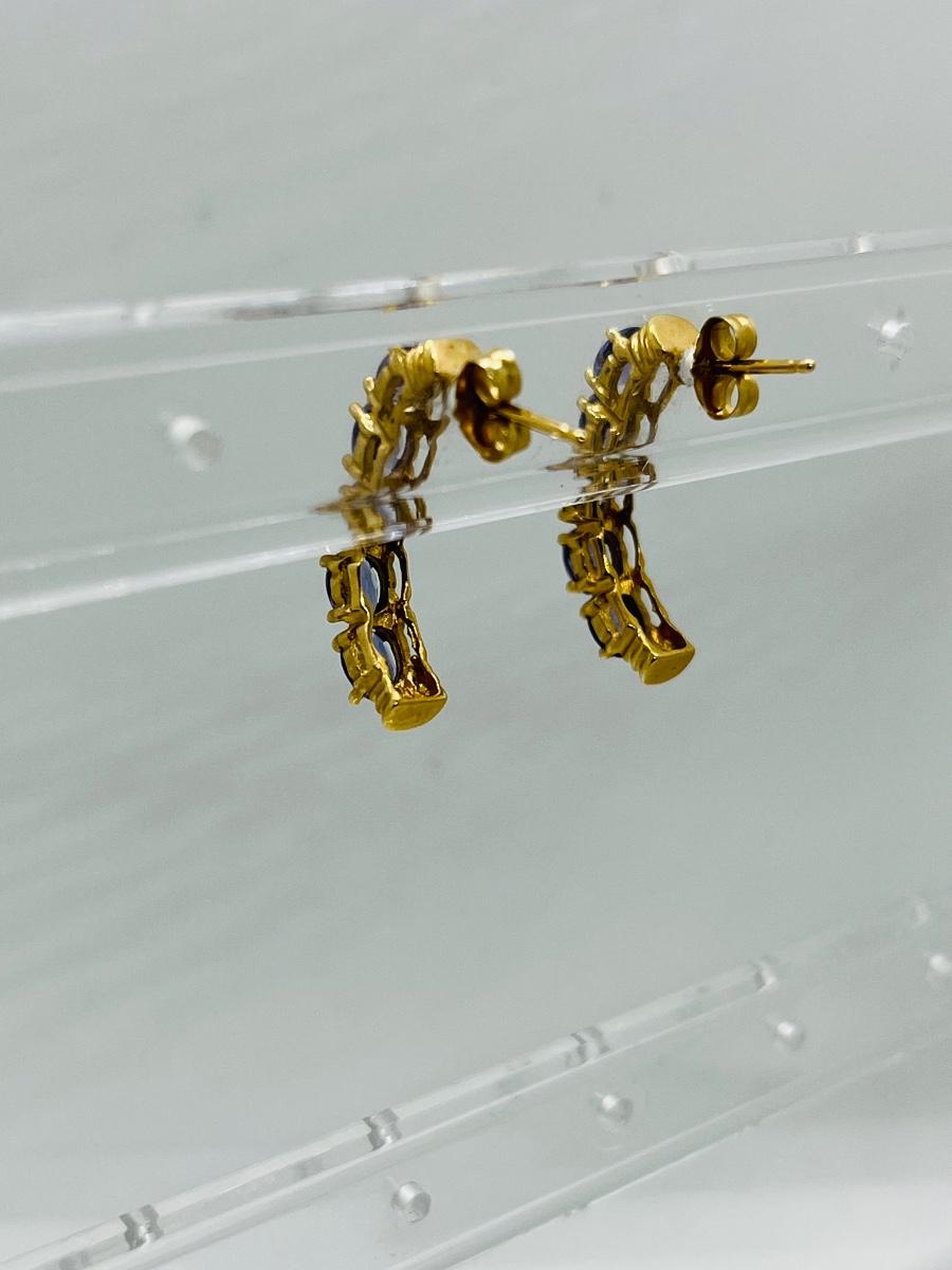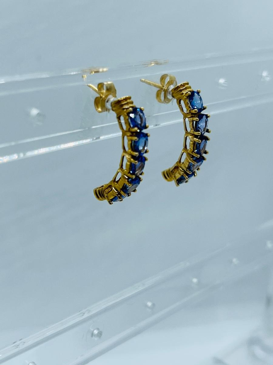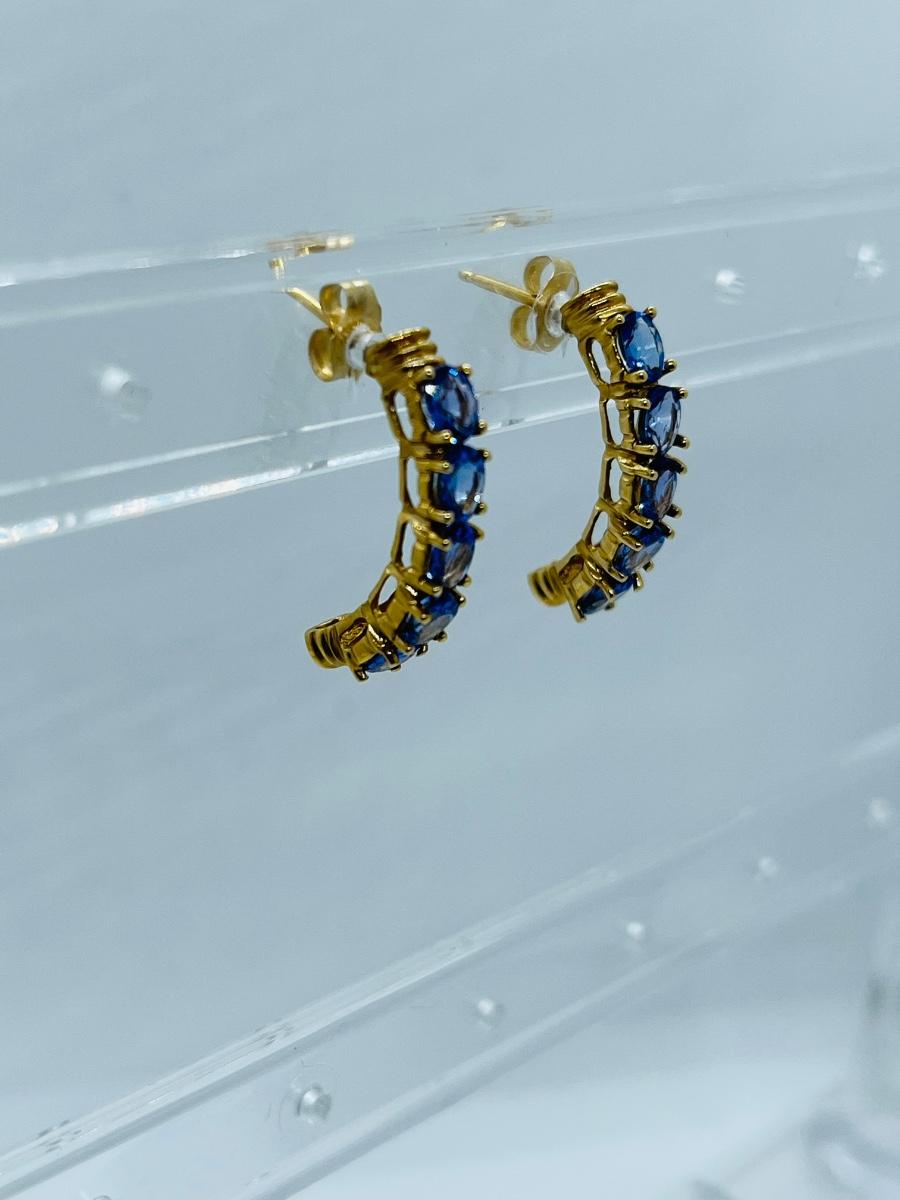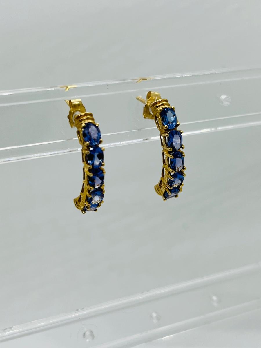 Lot 101: 14k half hoop tanzanite pierced earrings