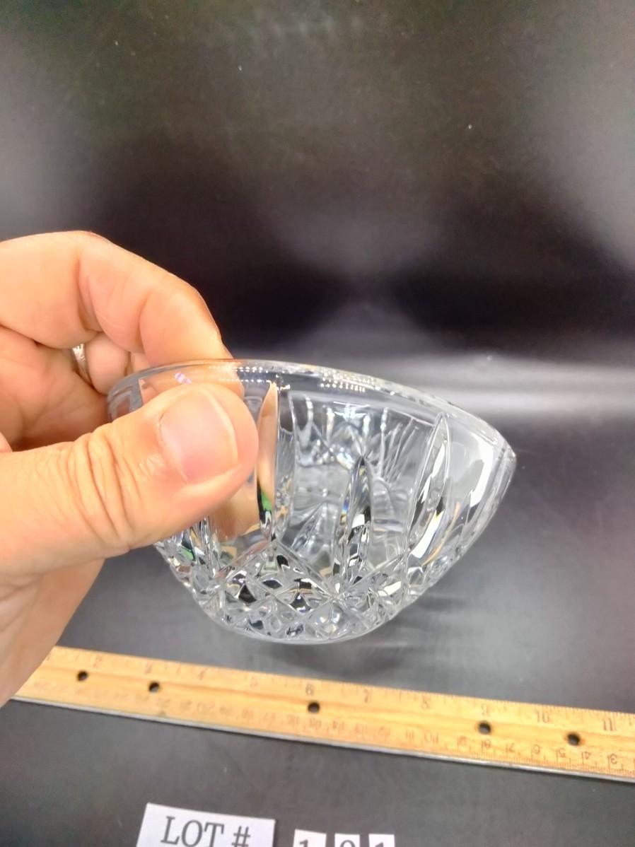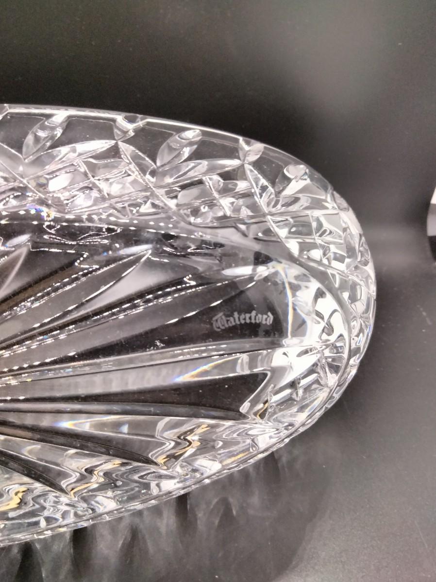 signed waterford. tiny chip on rim, not noticeable or sharp when you run your fingers over.
