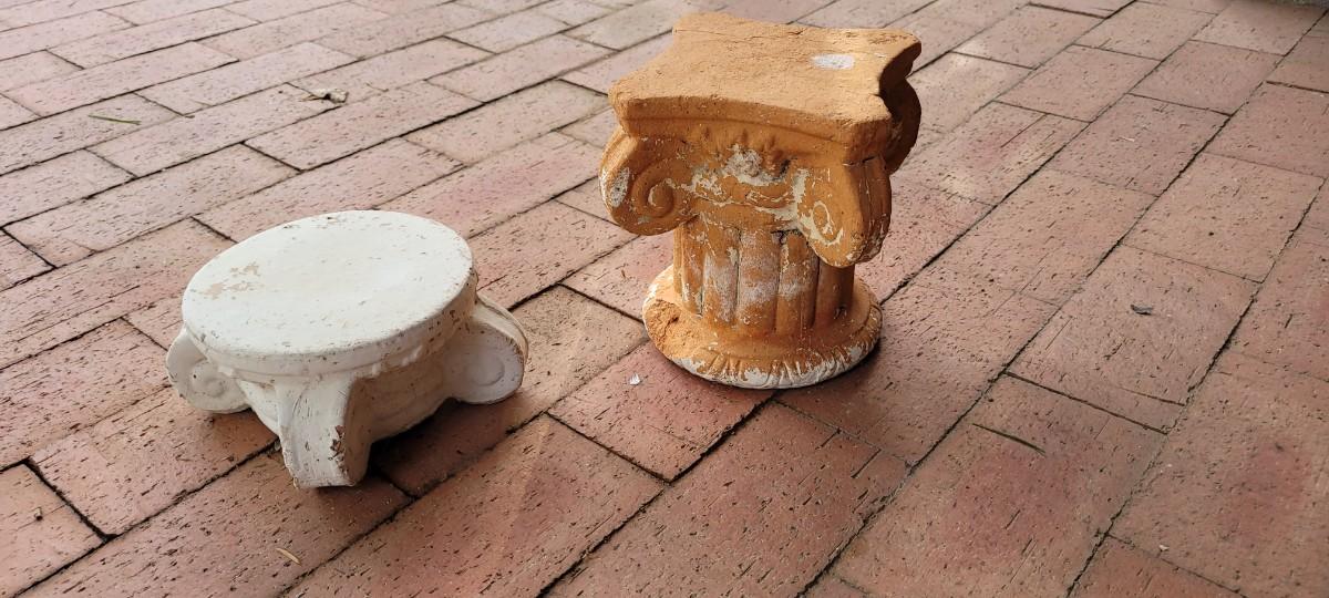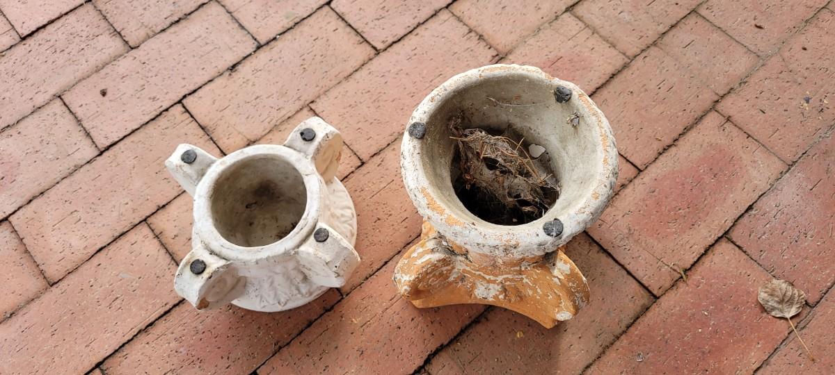 Lot 101: (2) Vintage Clay Composition Flower Garden Stands