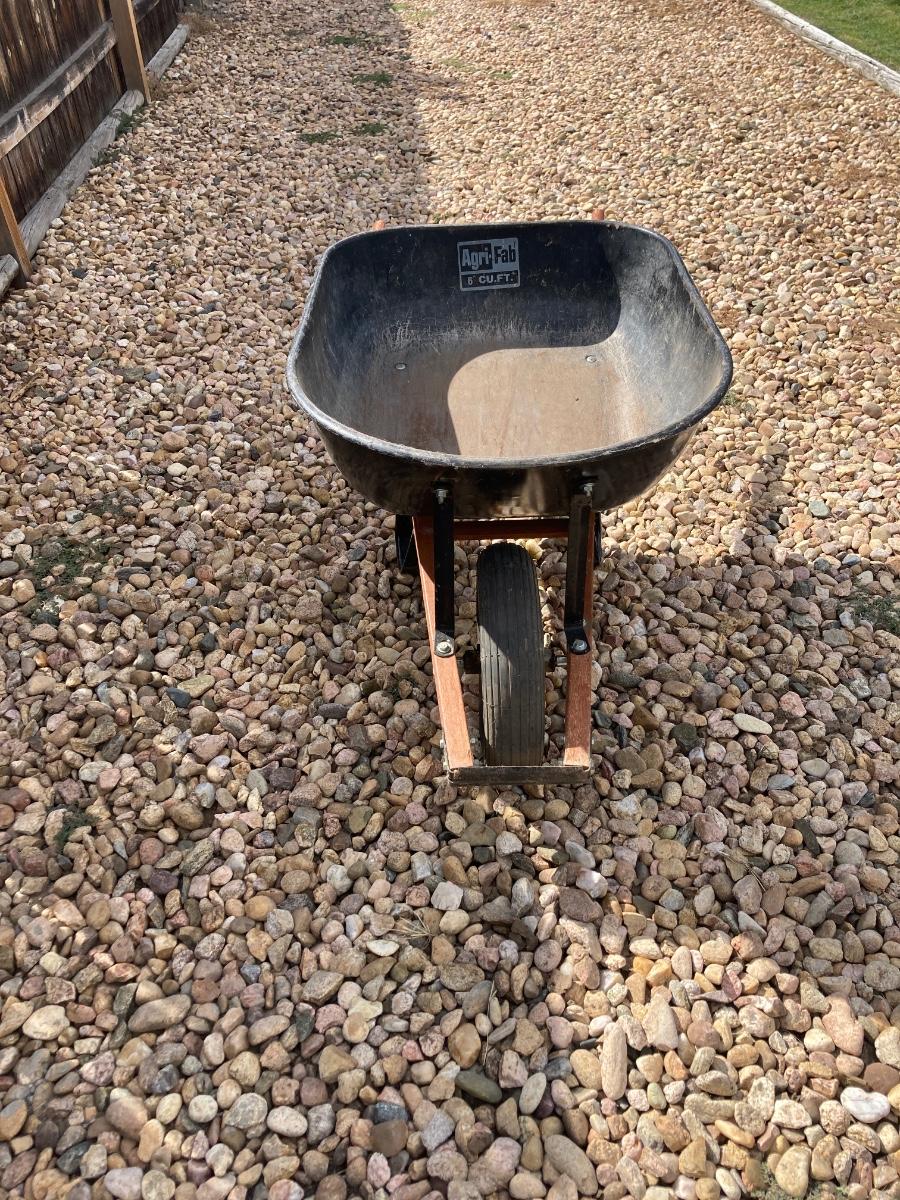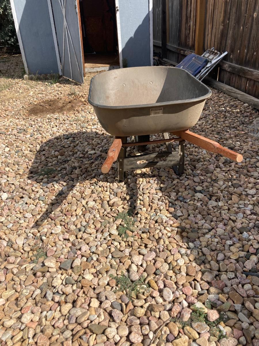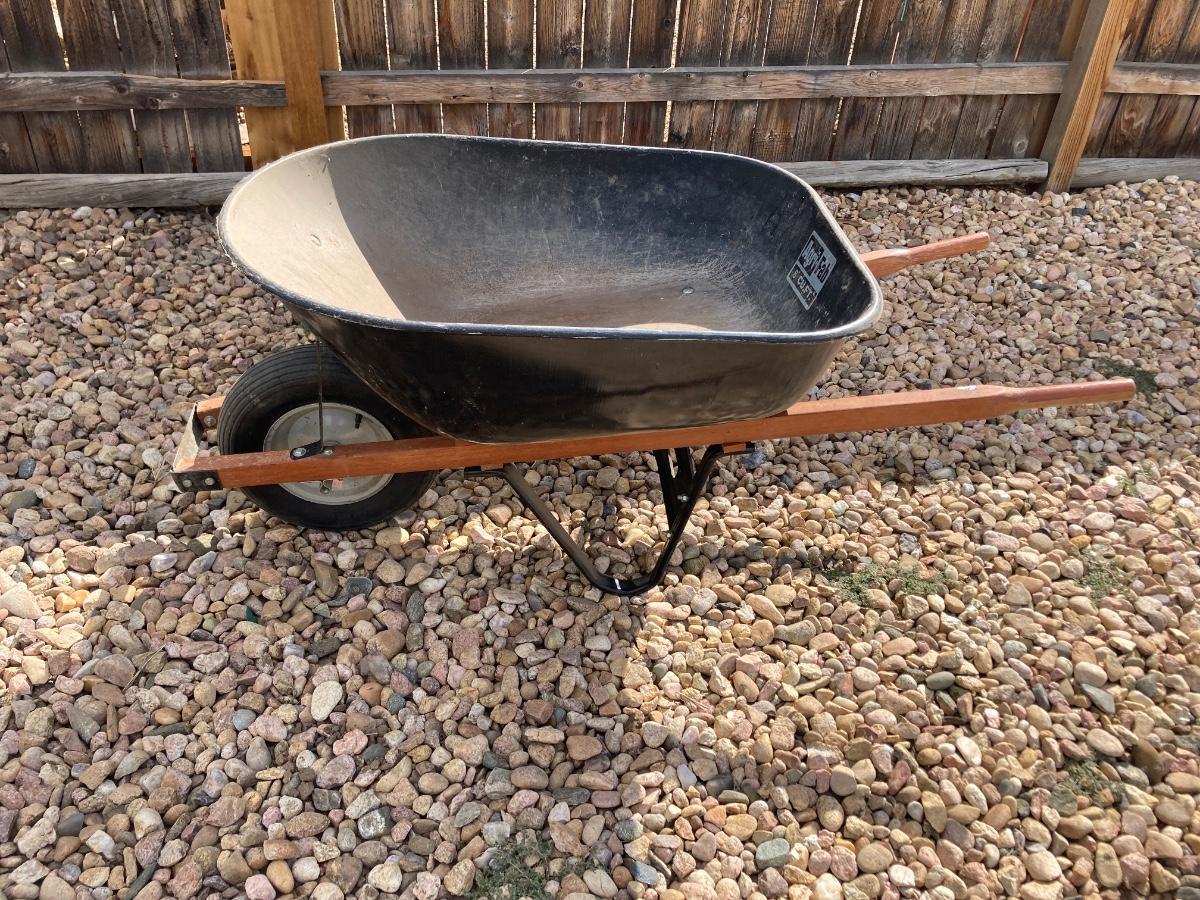 THIS WHEELBARROW DOES HAVE A FLAT TIRE BUT PROBABLY JUST NEEDS SOME AIR