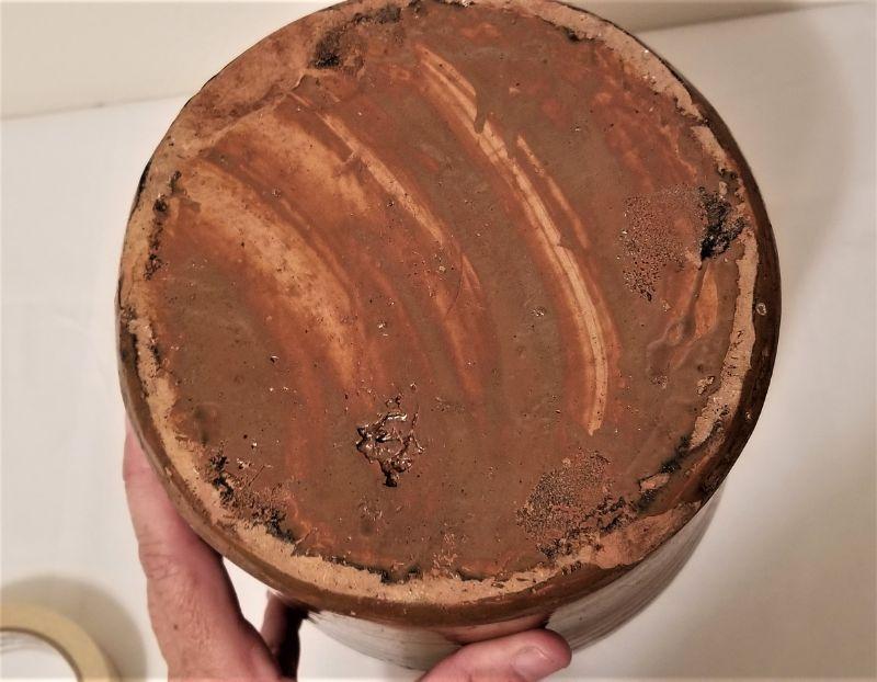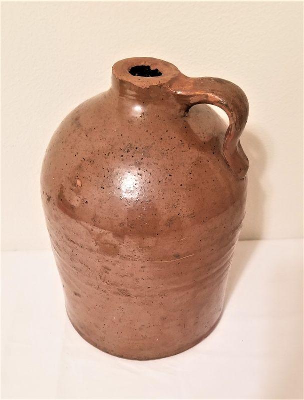 Good old antique pottery jug stands 11" tall. What you see is what you get.