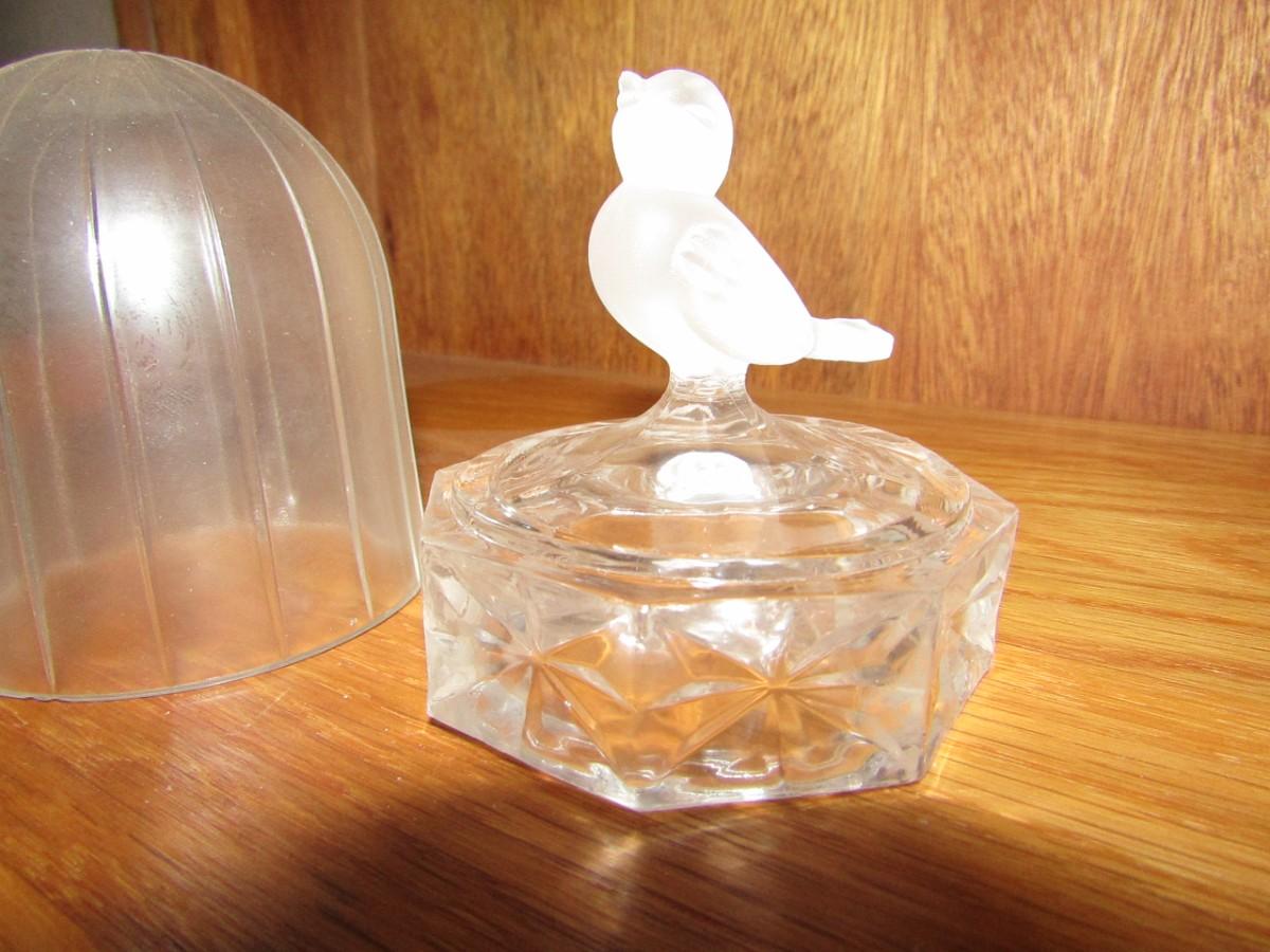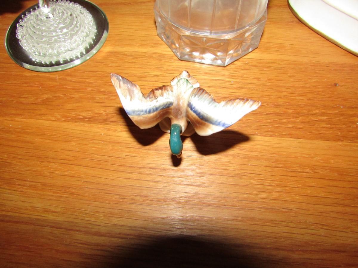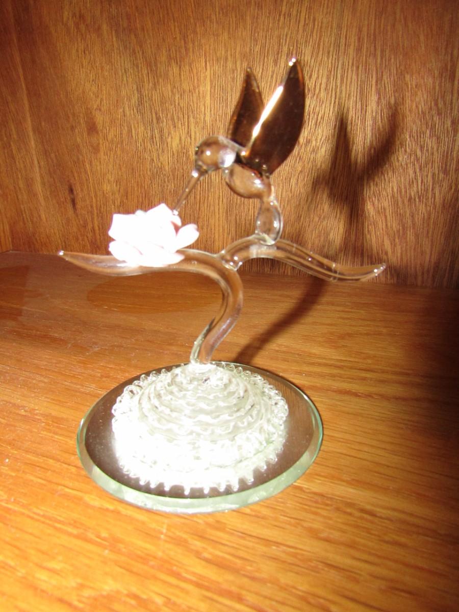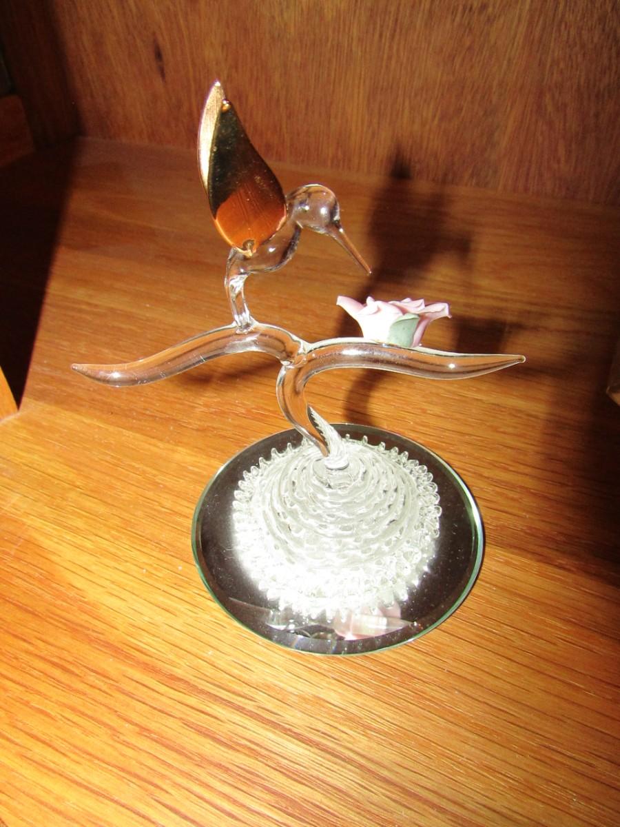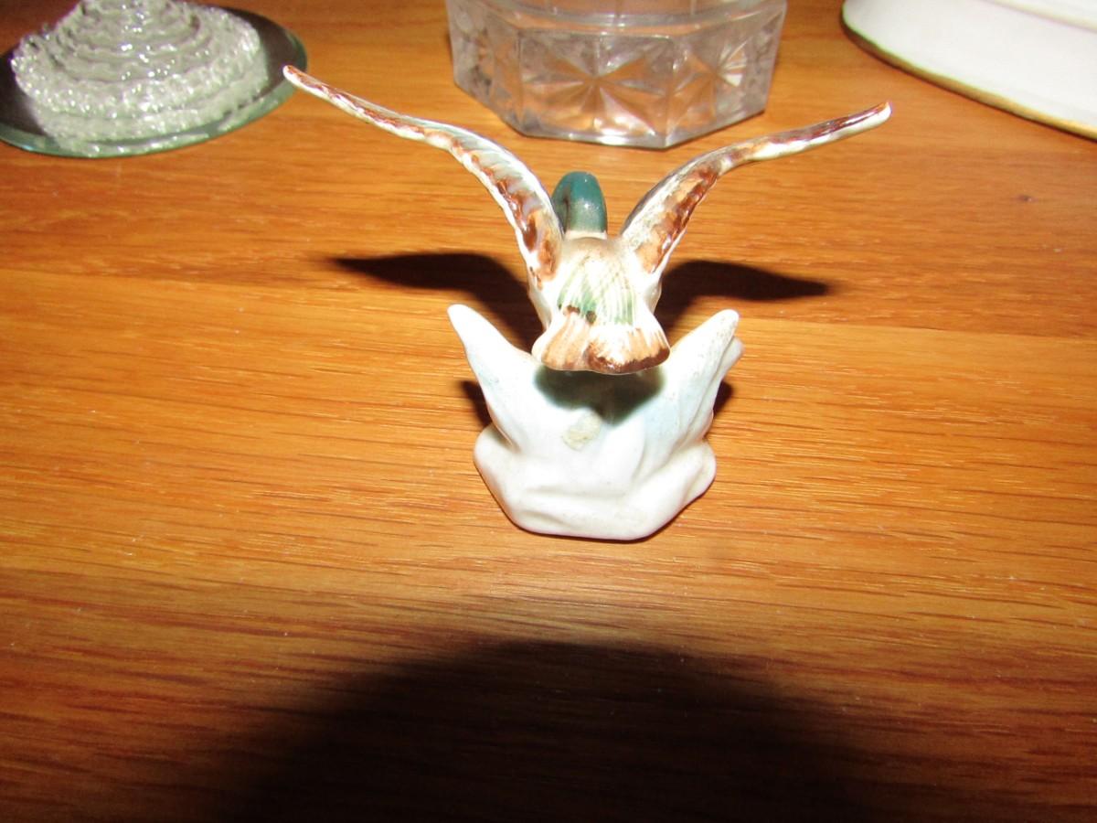 GLASS BIRD IN A GLASS BIRDCAGE, PORCELAIN DUCK AND GLASS HUMMING BIRD